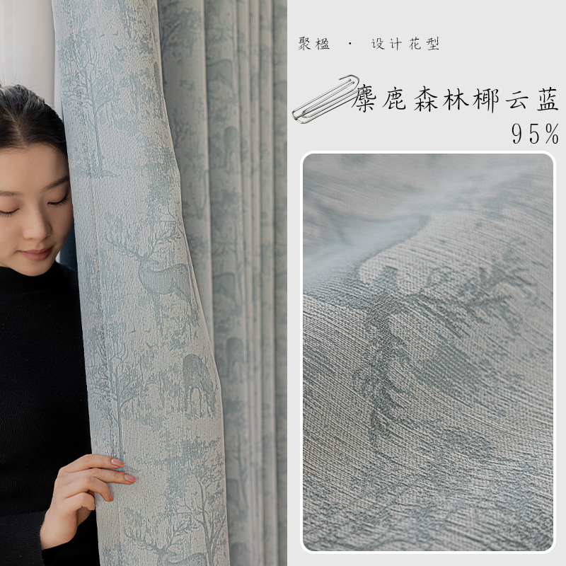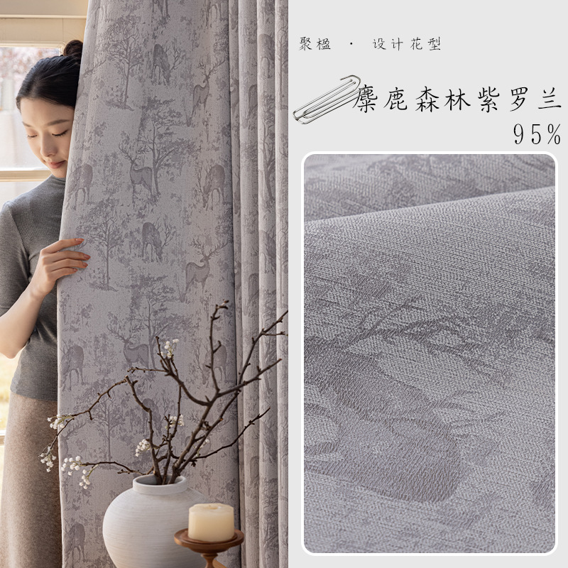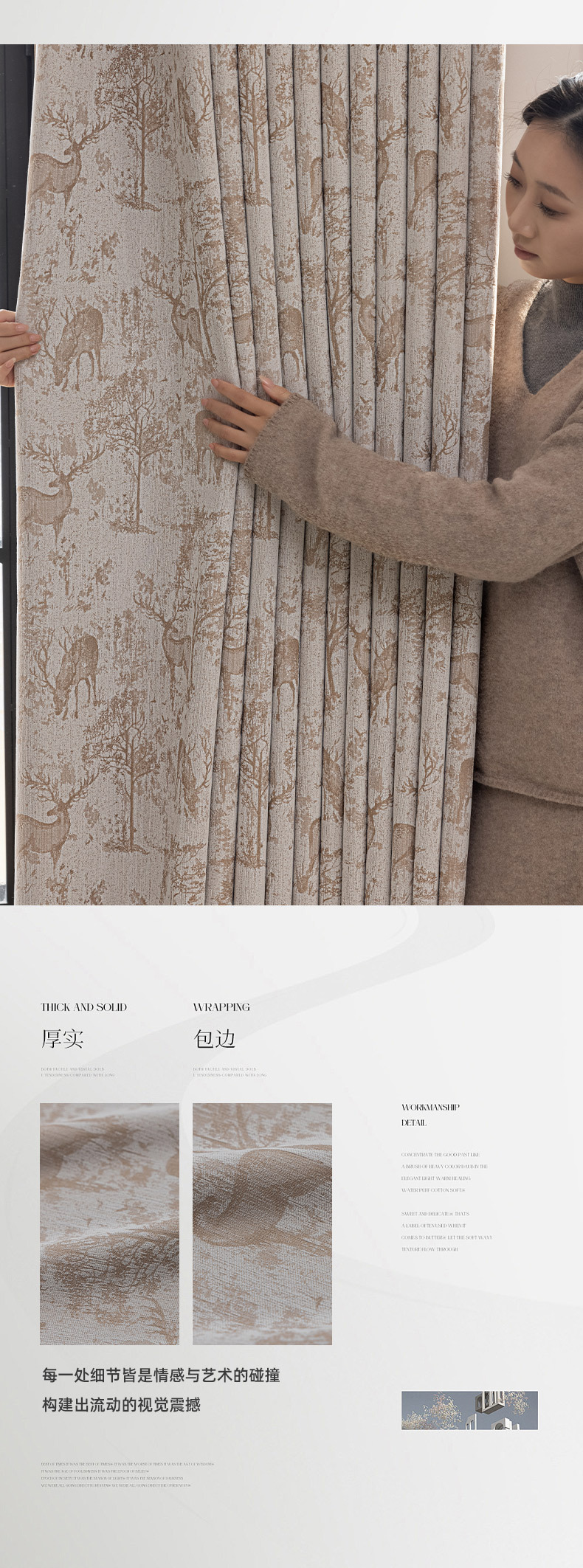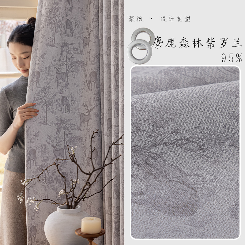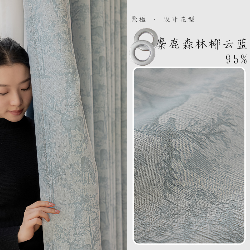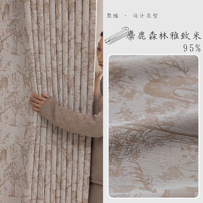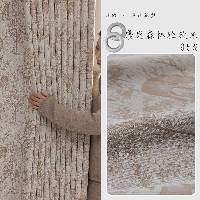 블랙 실크 셔닐 완전 암막 커튼 도매 빛 차단 마스터 침실 Shaoxing Keqiao 집 전체 완제품 커튼 사슴