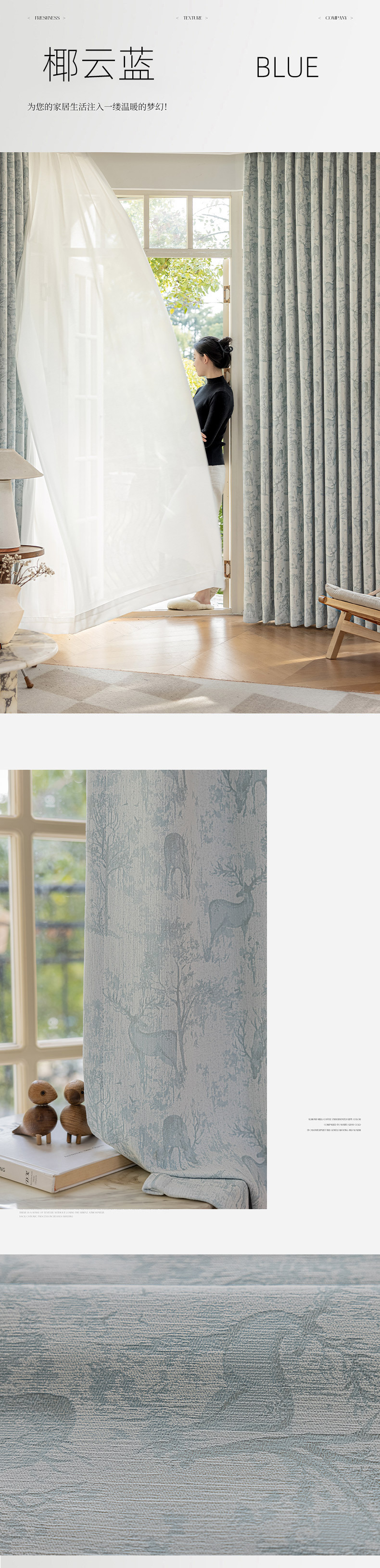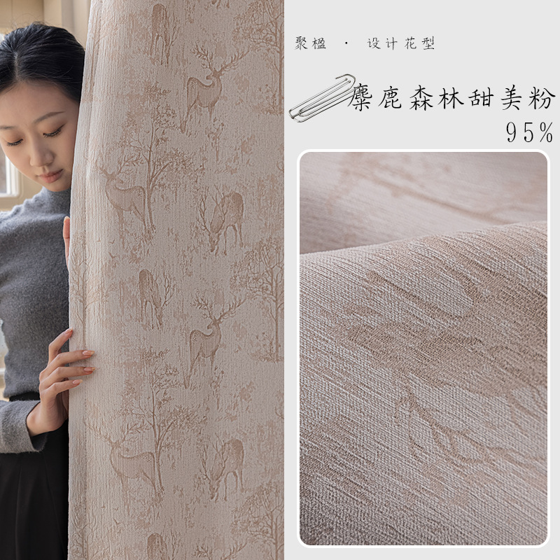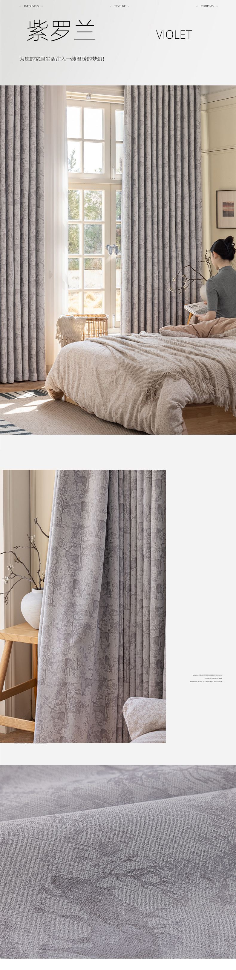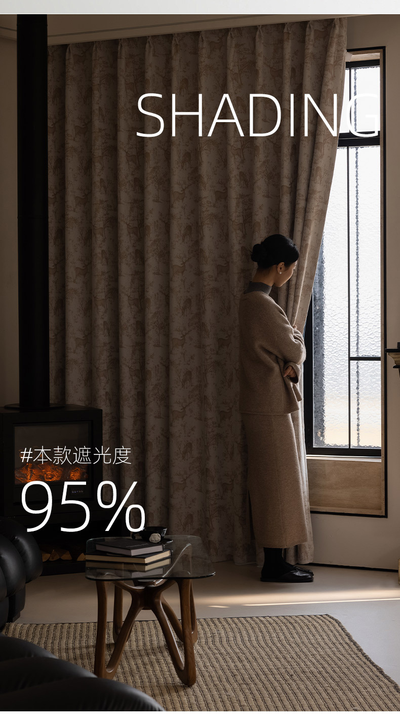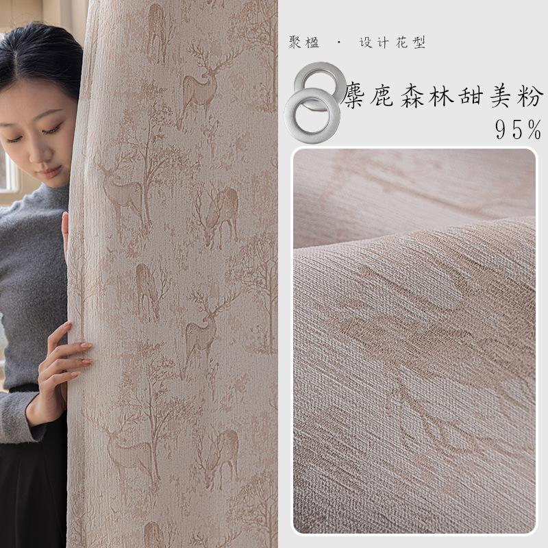블랙 실크 셔닐 완전 암막 커튼 도매 빛 차단 마스터 침실 Shaoxing Keqiao 집 전체 완제품 커튼 사슴