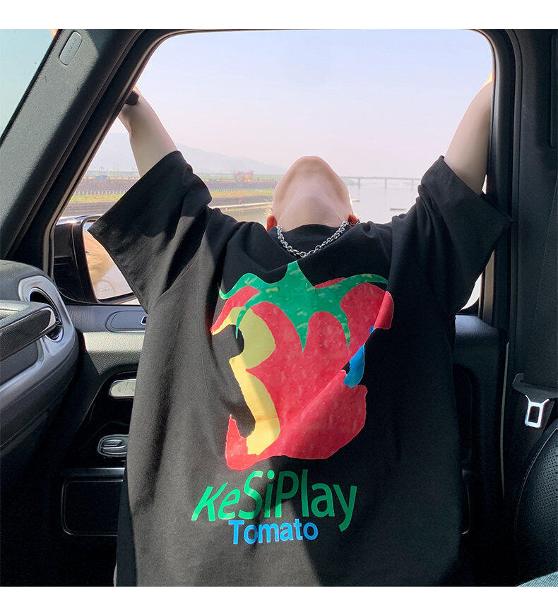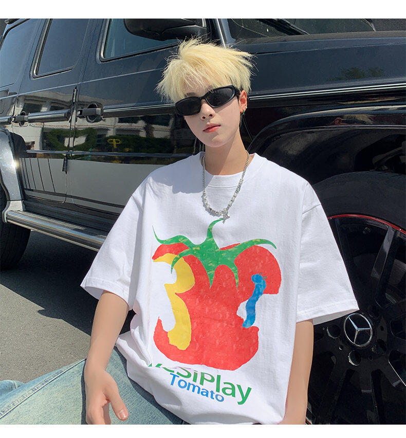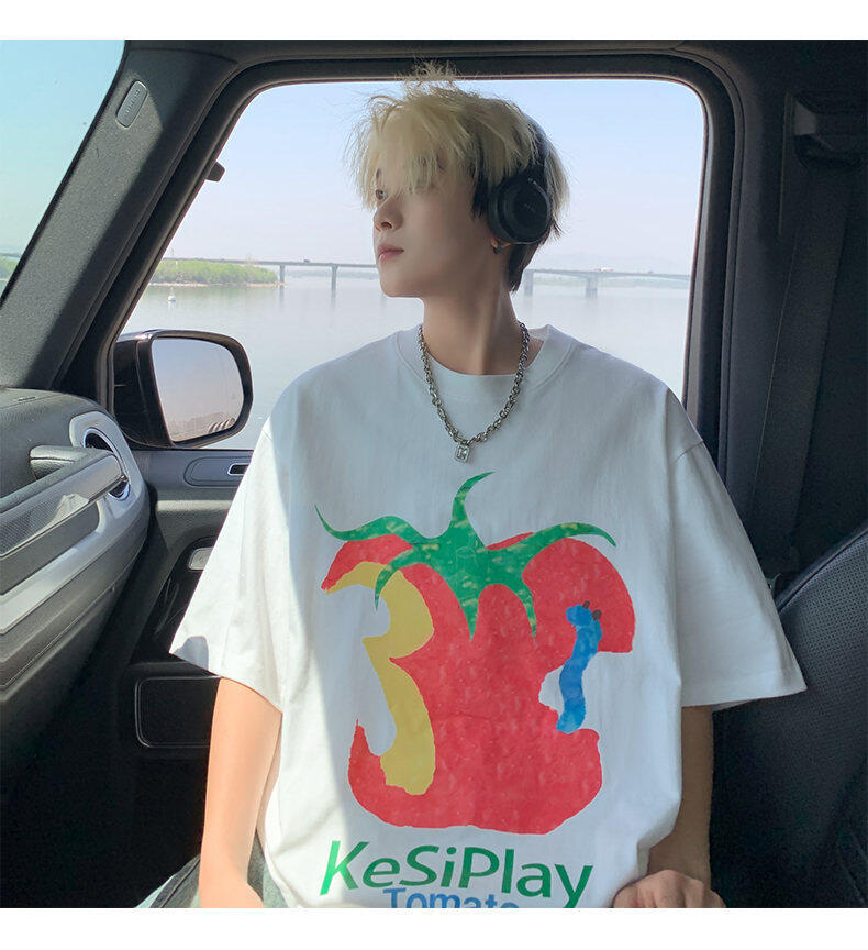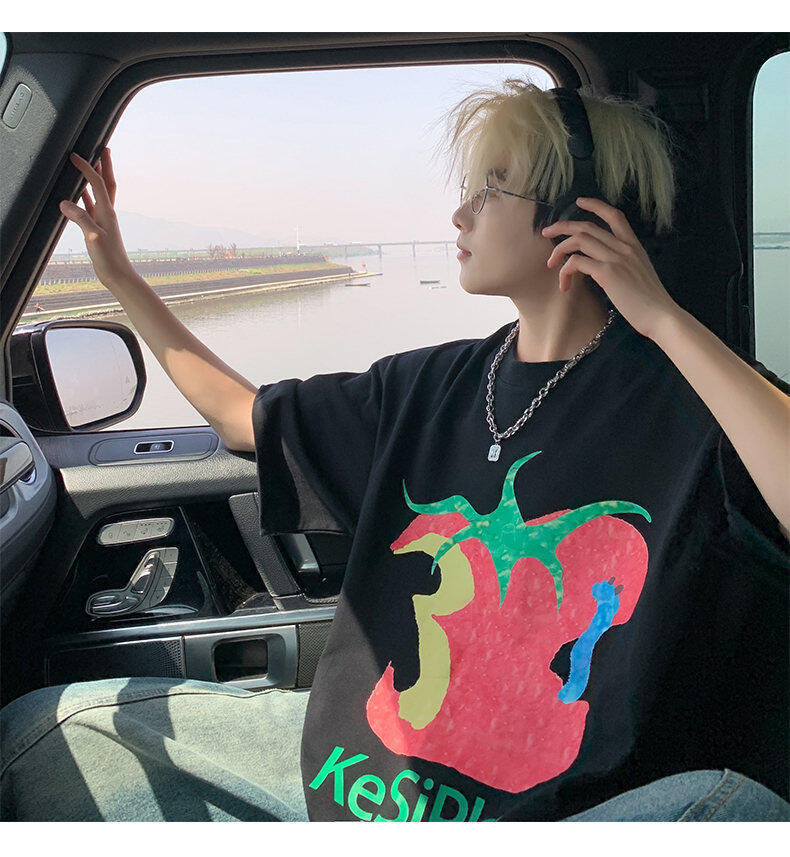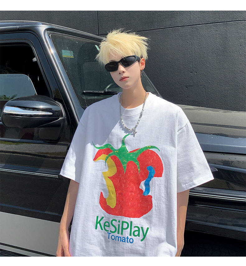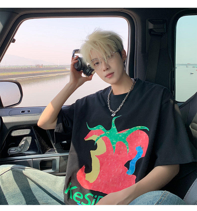2025년 여름 남성용 아메리칸 하이 스트리트 반팔 티셔츠 새로운 루즈한 헤비웨이트 캐주얼 라운드 넥 5부 소매 의류스토어 가기