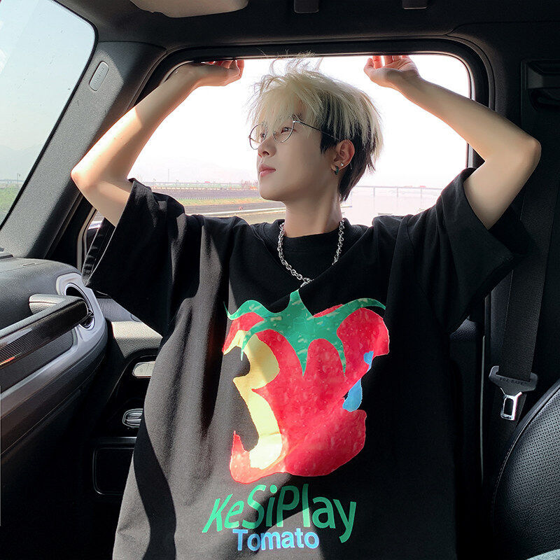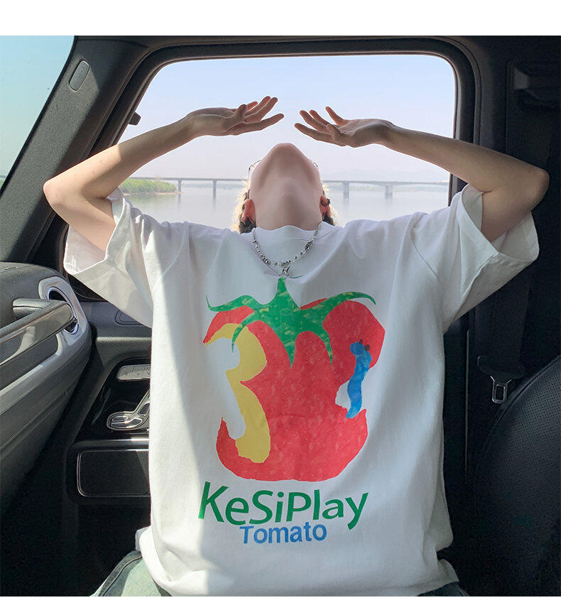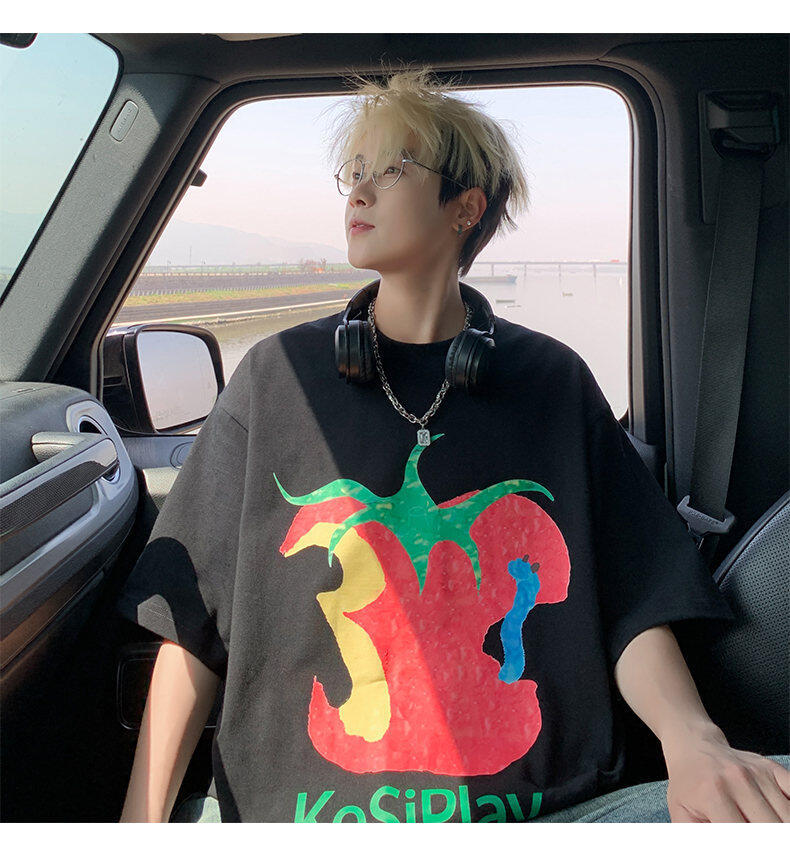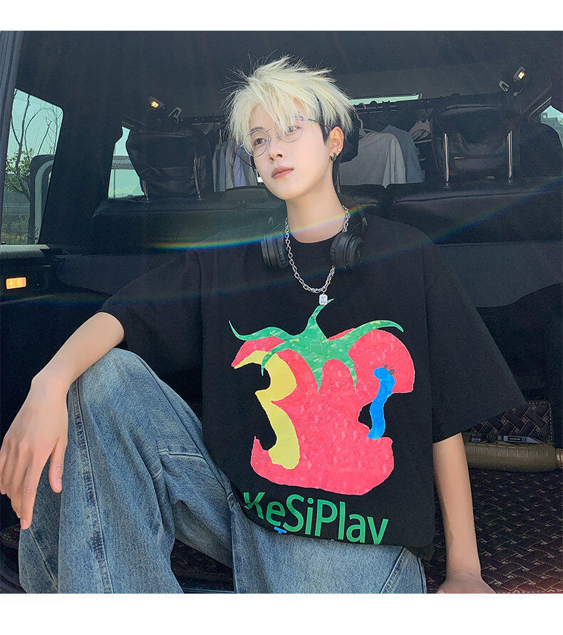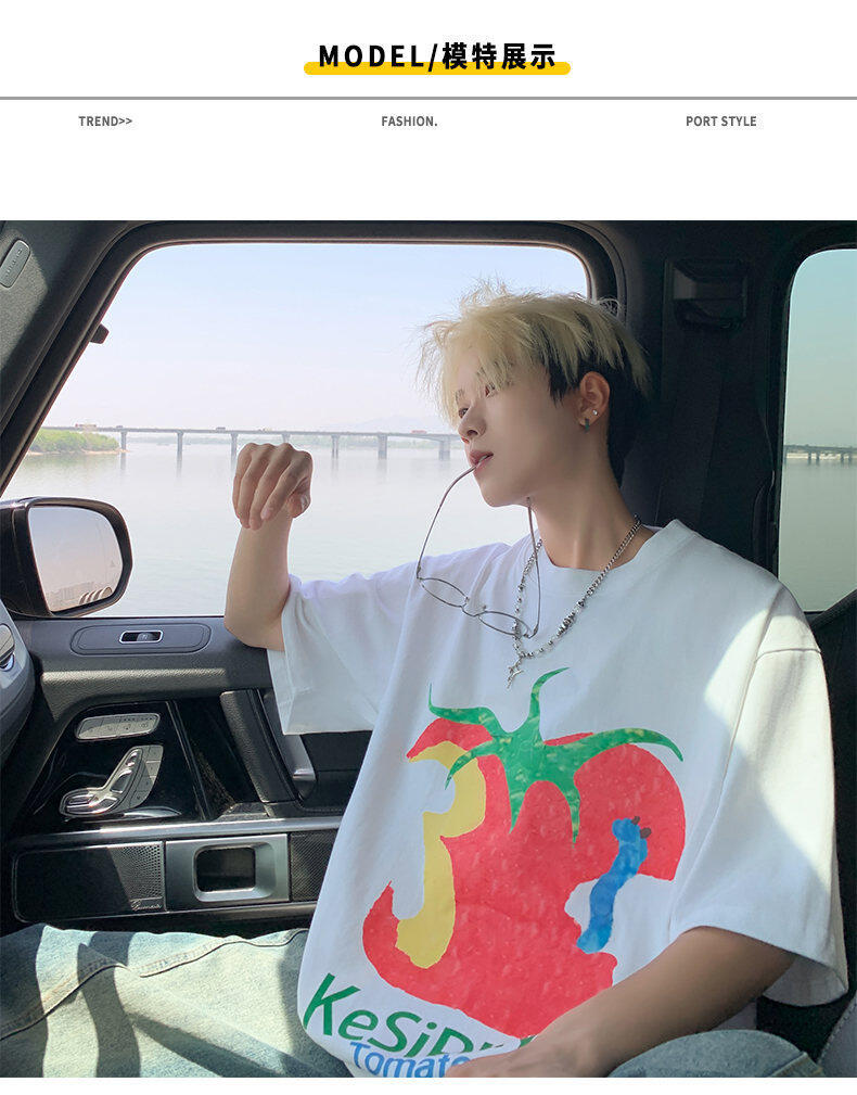 2025년 여름 남성용 아메리칸 하이 스트리트 반팔 티셔츠 새로운 루즈한 헤비웨이트 캐주얼 라운드 넥 5부 소매 의류스토어 가기