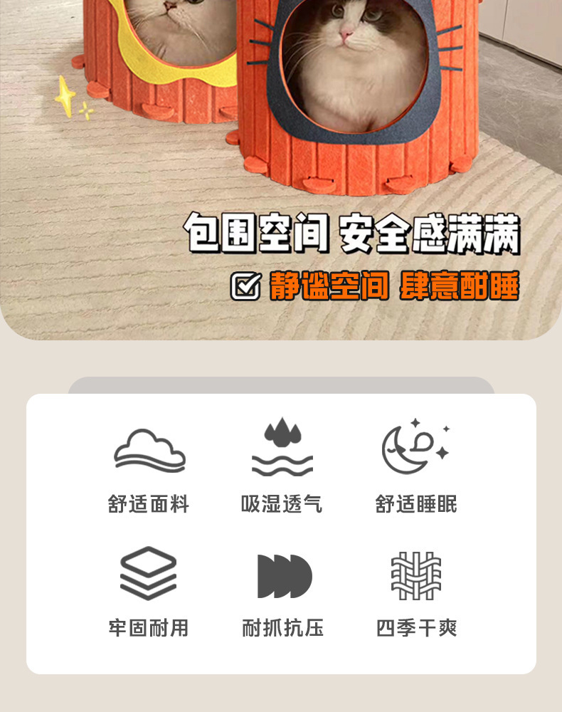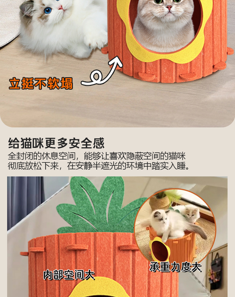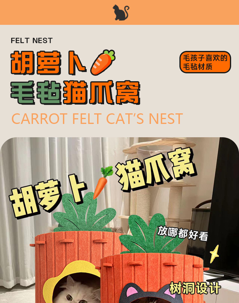 당근 고양이 둥지, 여름 시원한 둥지, 고양이 스크래치 보드, 일체형 내마모성 및 비떨어짐 방지 고양이 집, 빌라 애완 동물 둥지