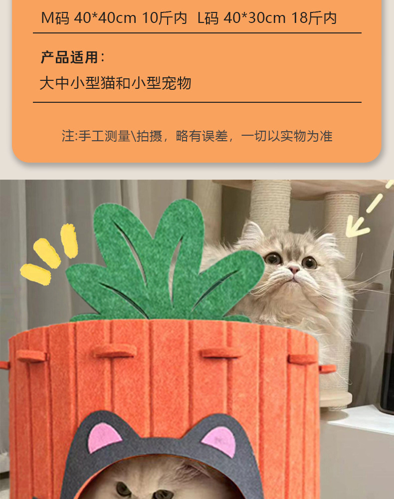 당근 고양이 둥지, 여름 시원한 둥지, 고양이 스크래치 보드, 일체형 내마모성 및 비떨어짐 방지 고양이 집, 빌라 애완 동물 둥지스토어 가기