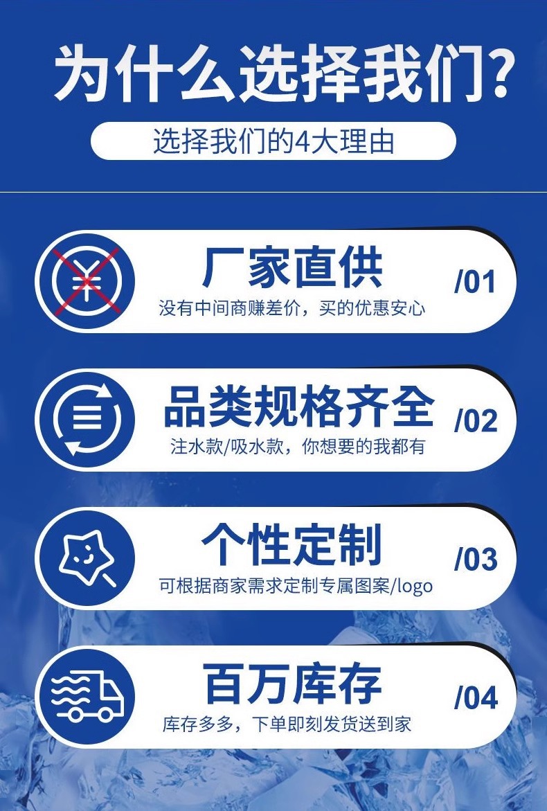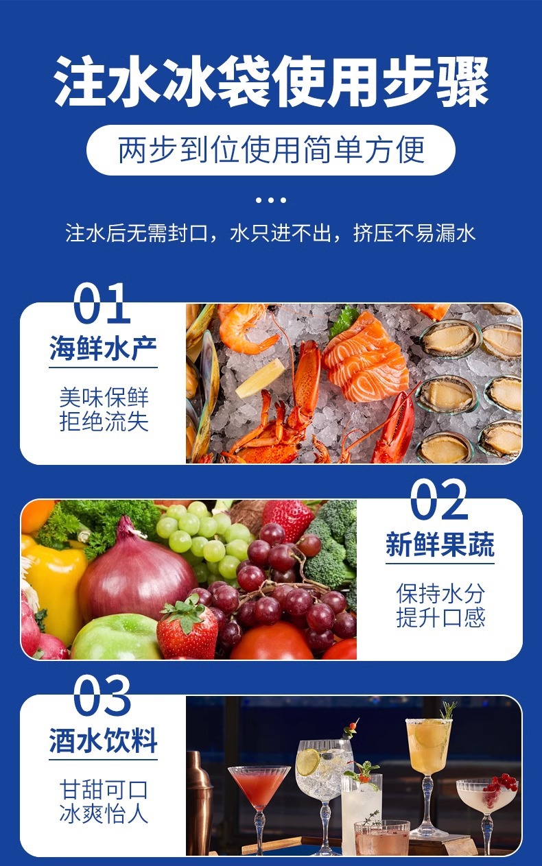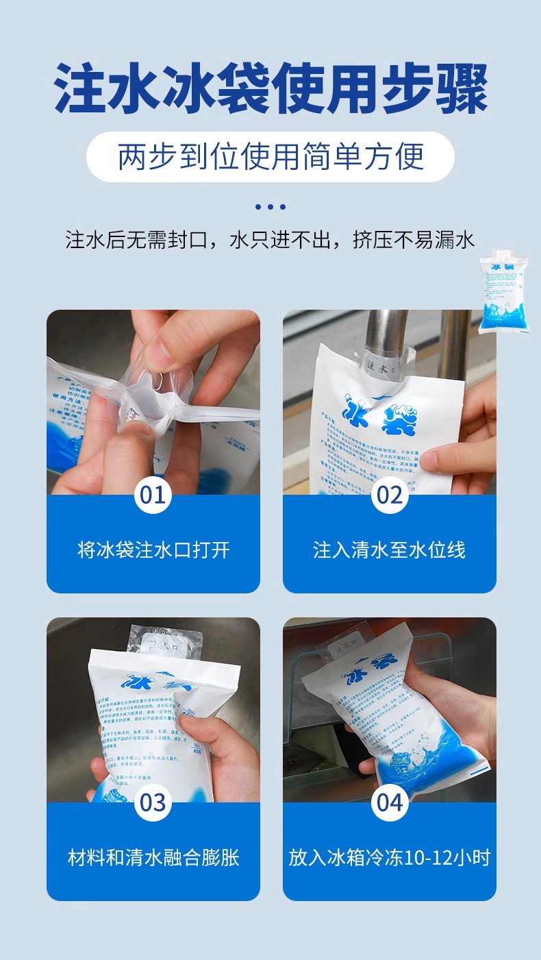 익스프레스용 물이 채워진 아이스백, 냉동 일회용 재사용 식품 냉장 및 보존, 상업용 매점 소형 아이스백스토어 가기