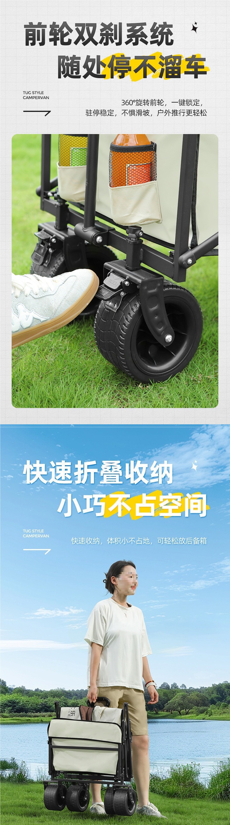 새로운 캠핑 카트 접이식 야외 핸드 푸시 피크닉 카트 휴대용 캠프 트레일러 트롤리 다기능 스톨
