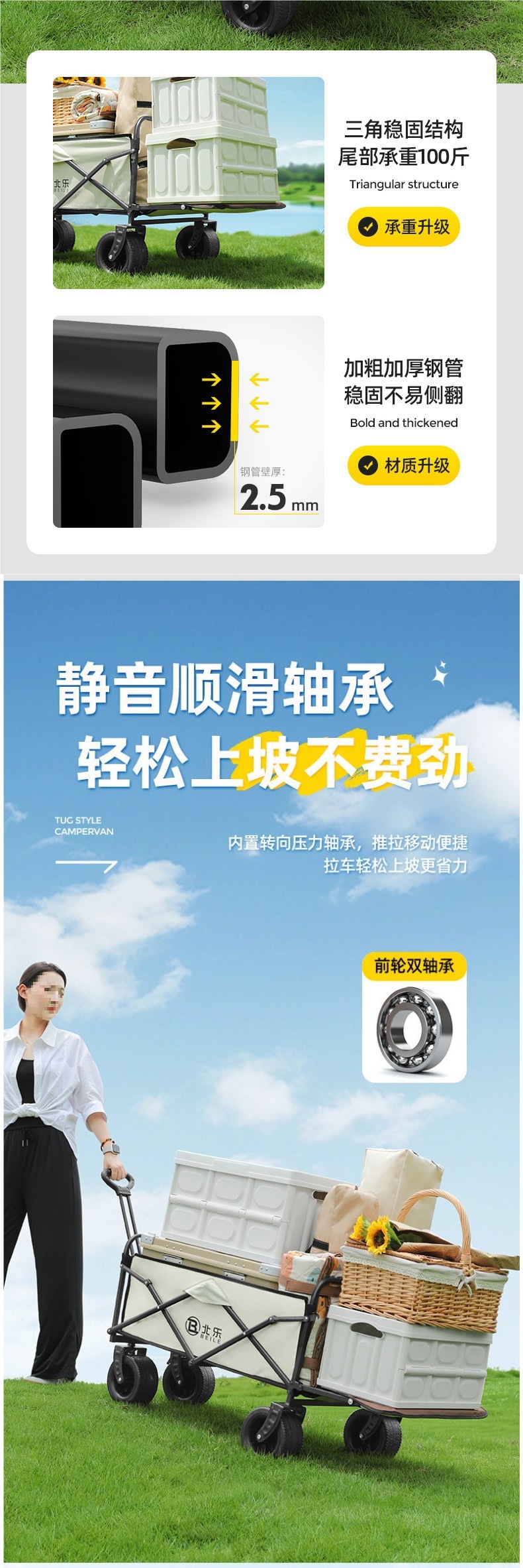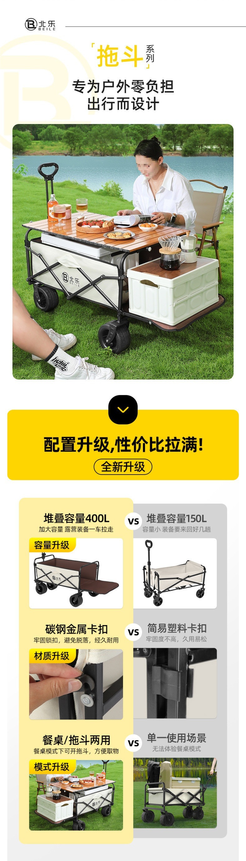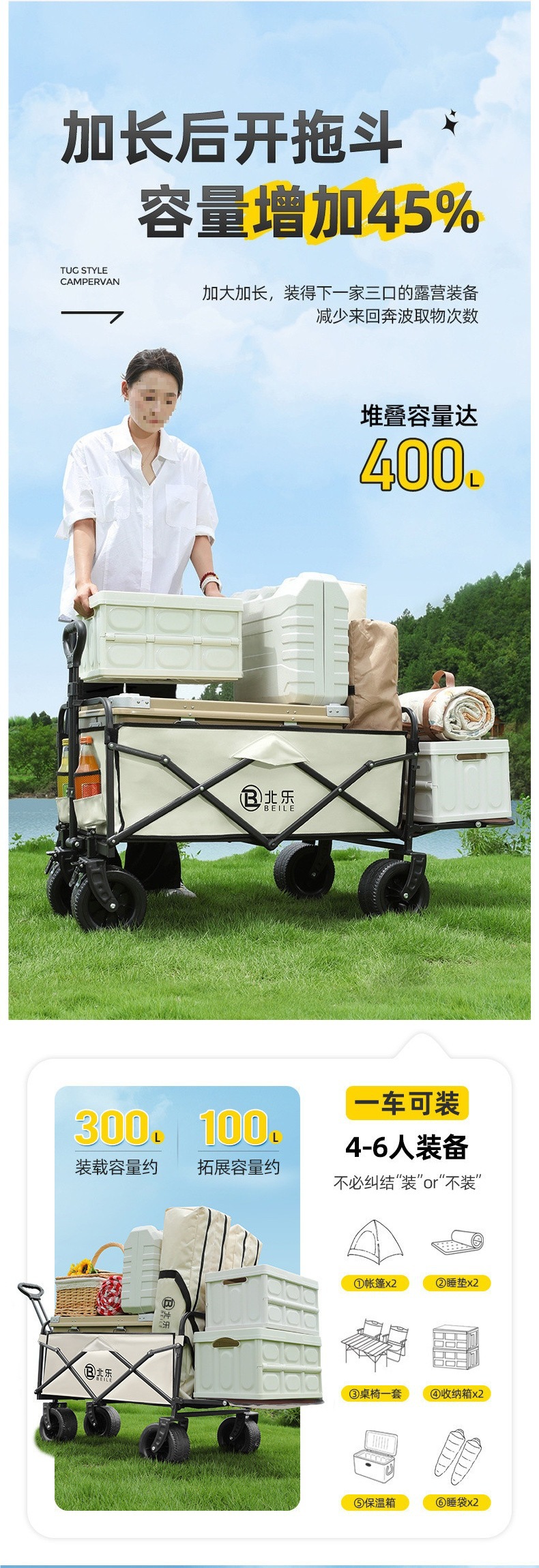 새로운 캠핑 카트 접이식 야외 핸드 푸시 피크닉 카트 휴대용 캠프 트레일러 트롤리 다기능 스톨스토어 가기