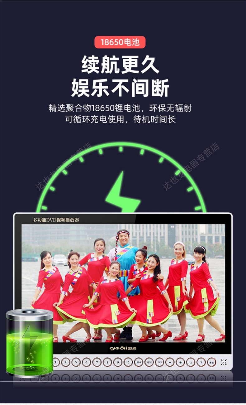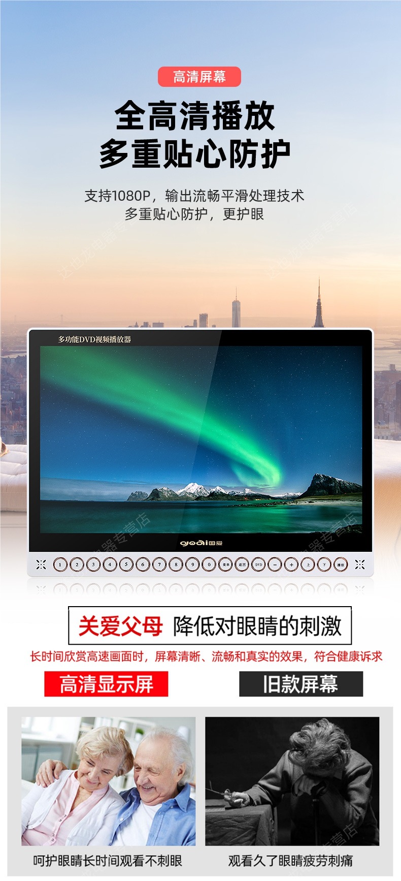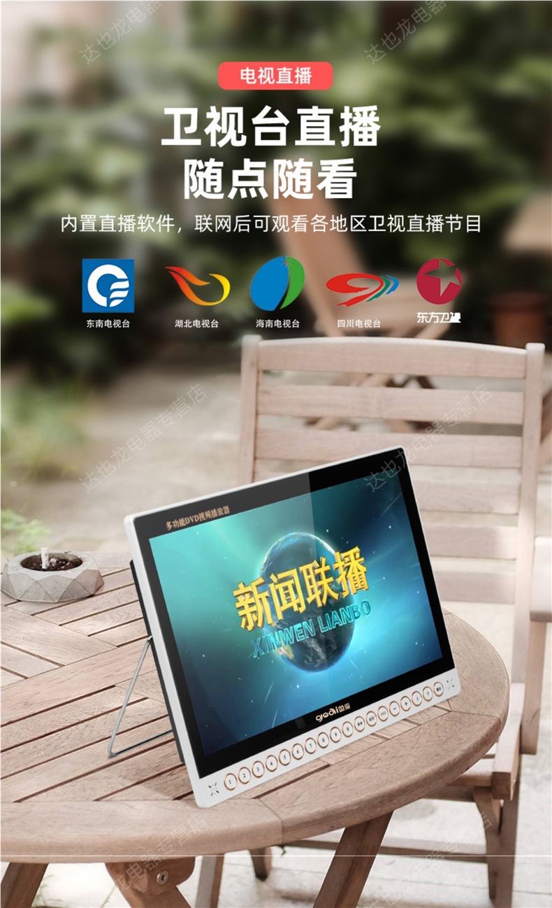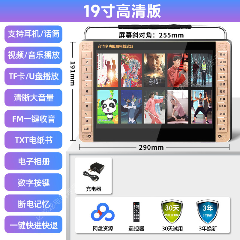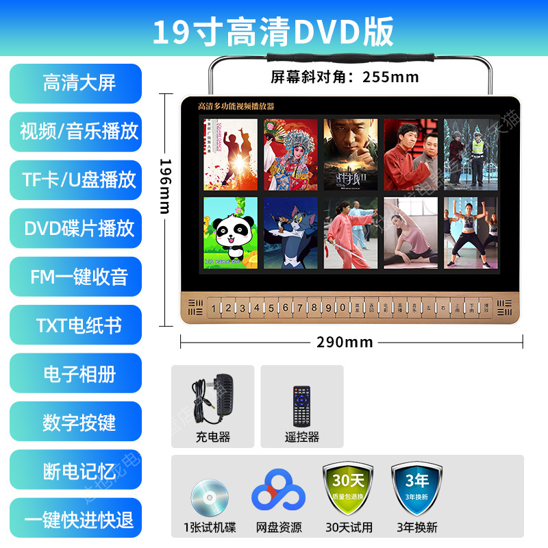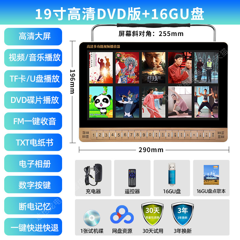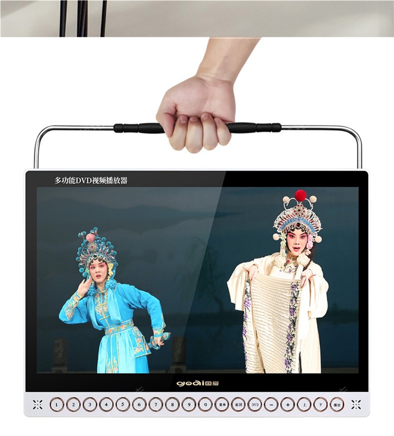 노인들이 연극을보고, 노래하고, 연극을 듣고, 작은 화면이있는 모바일 DVD 플레이어, 휴대용 TV를 볼 수있는 특수 라디오