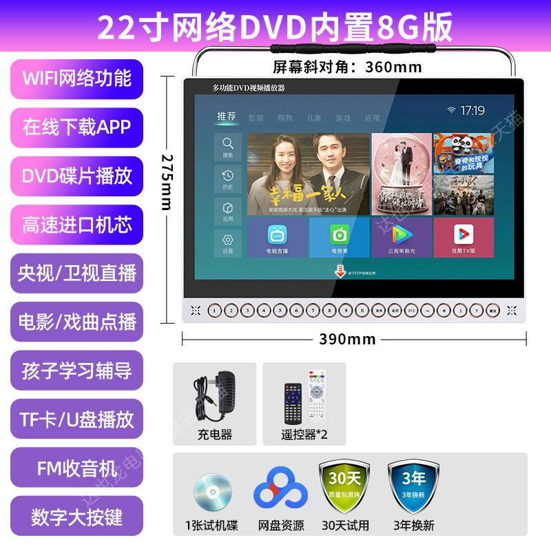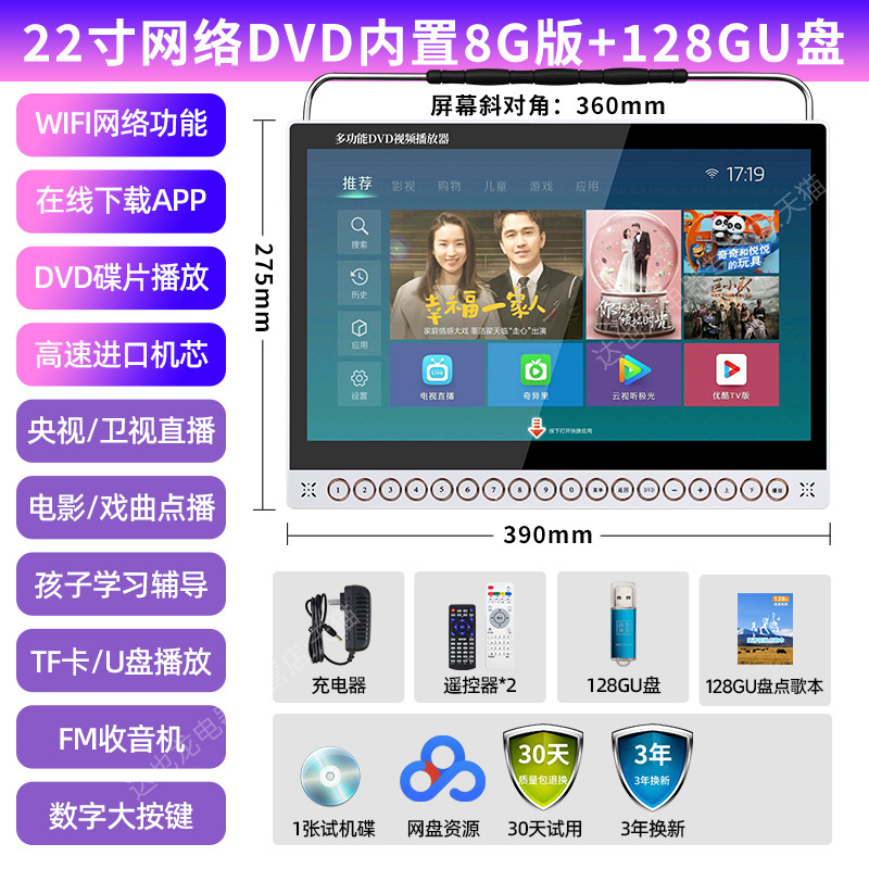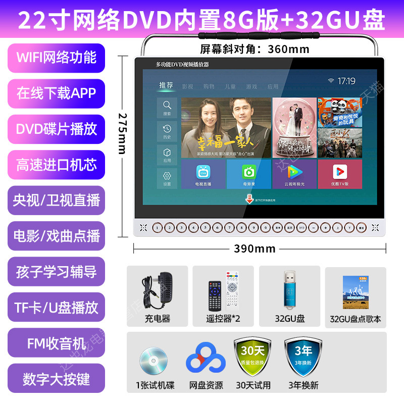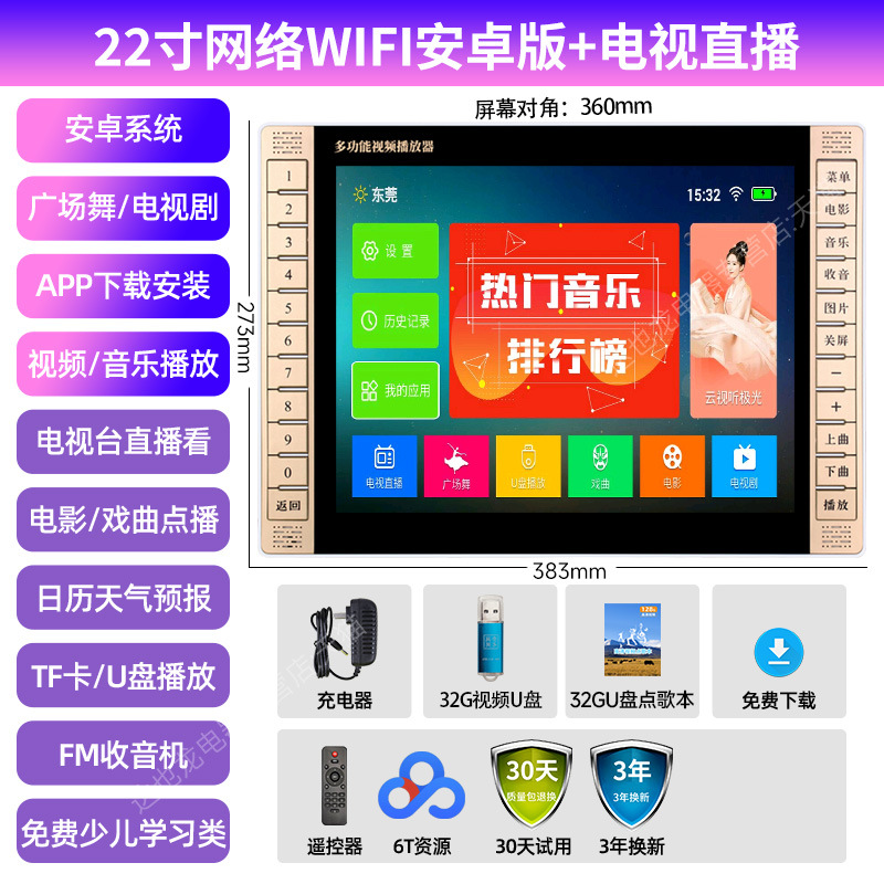 • 22inch 인터넷 TV 버전 + [2,000개 이상의 TV 방송국] 32GU 디스크에 1003개 파일 내장