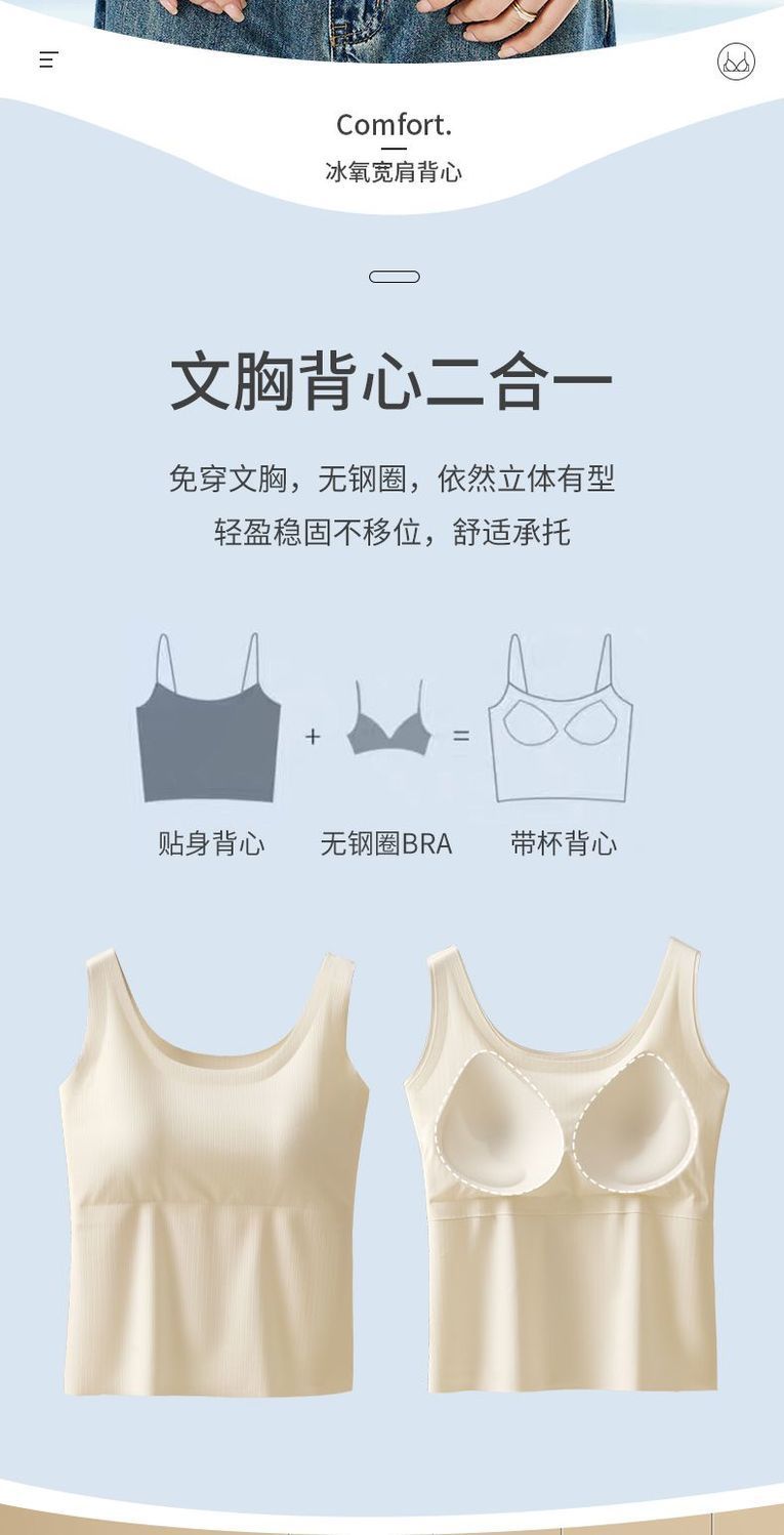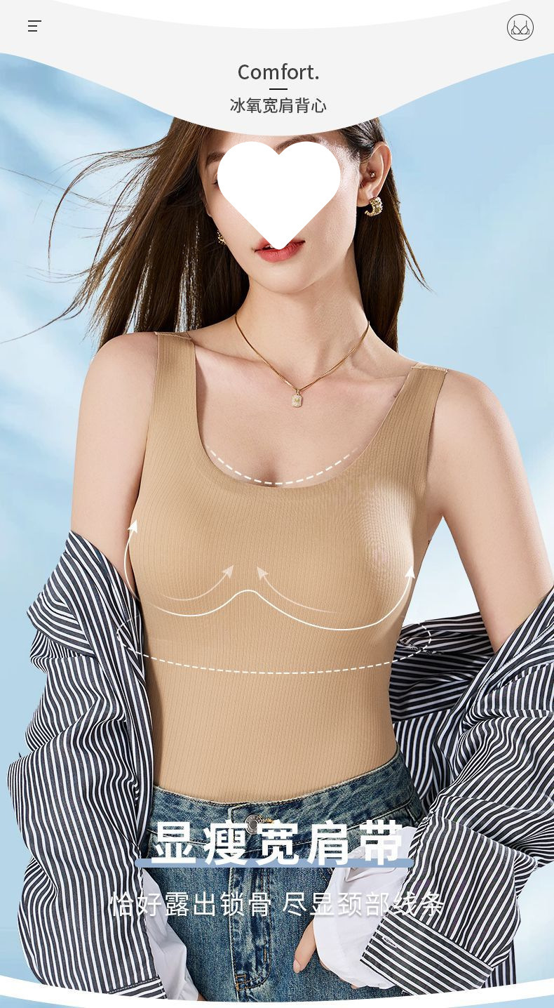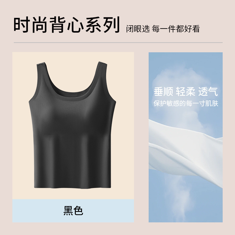 아이스 실크 Traceless Camisole 여자 원피스 브래지어 탑-가슴 패드스토어 가기