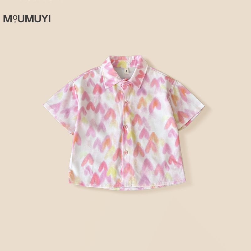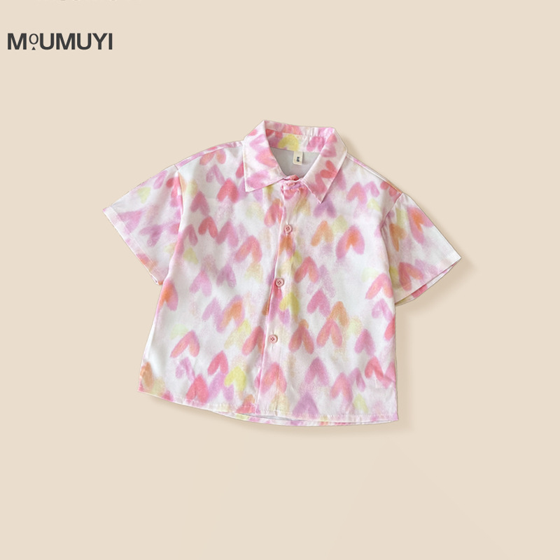 어린이 사랑 반팔 셔츠 2025 여름 새로운 한국 스타일 캐주얼 어린이 셔츠 스타일릭 귀여운 최고 트렌디