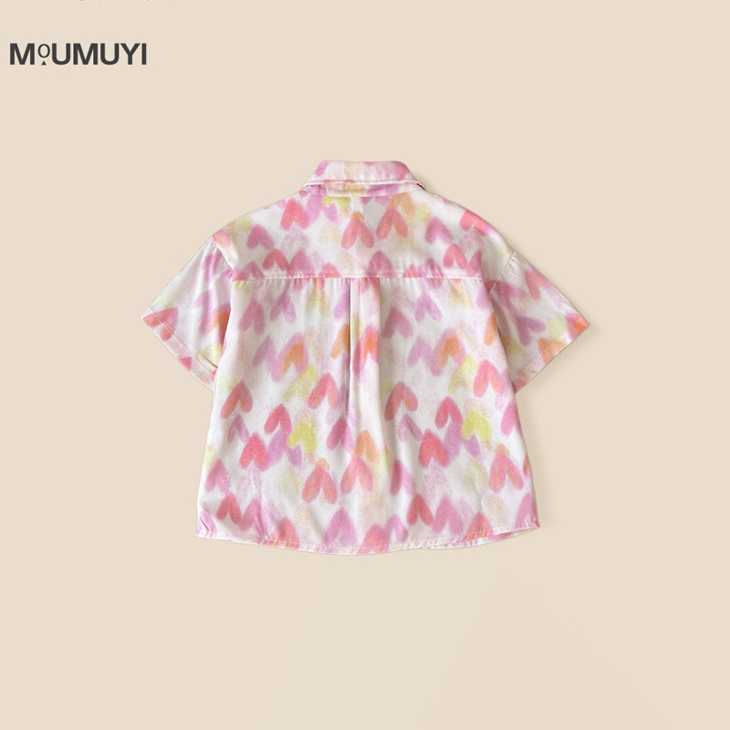 어린이 사랑 반팔 셔츠 2025 여름 새로운 한국 스타일 캐주얼 어린이 셔츠 스타일릭 귀여운 최고 트렌디스토어 가기