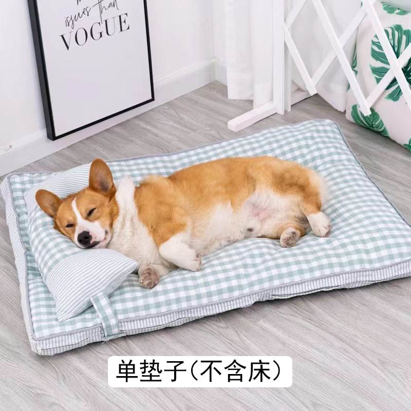 • 녹색 체크무늬 강아지 매트(베개 포함, 약간 작은 크기)