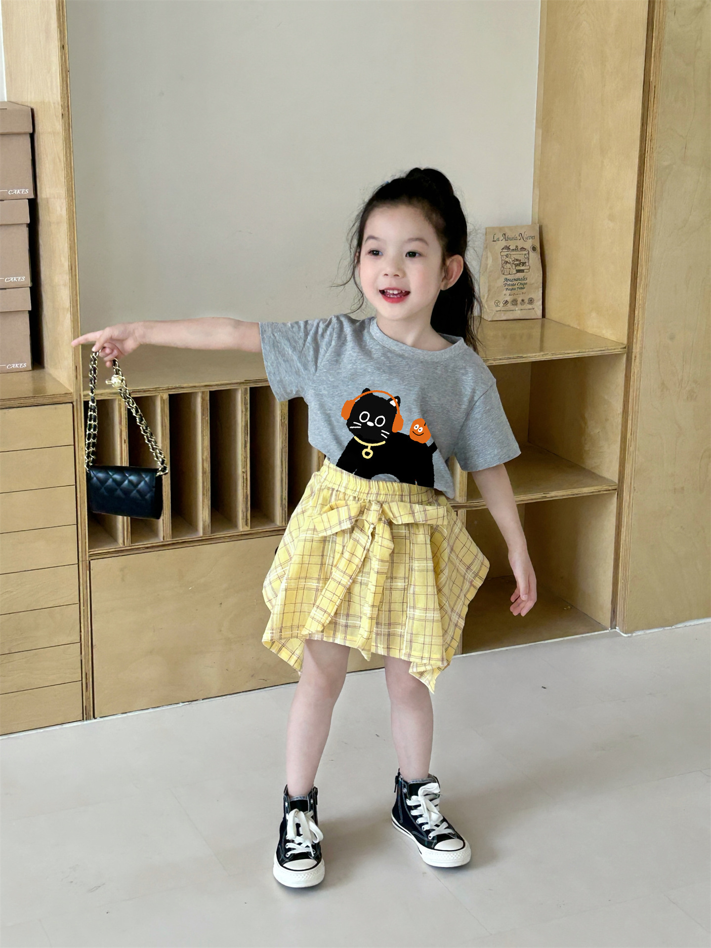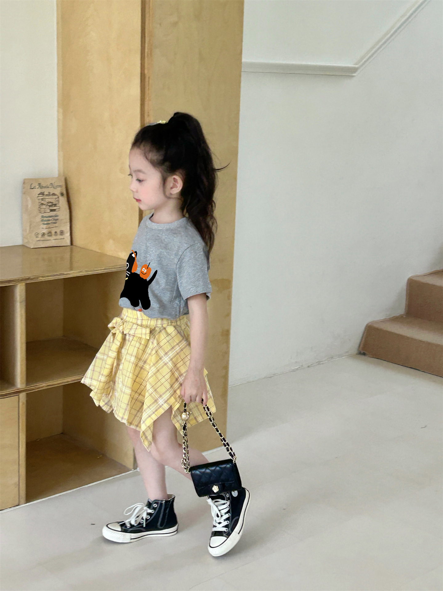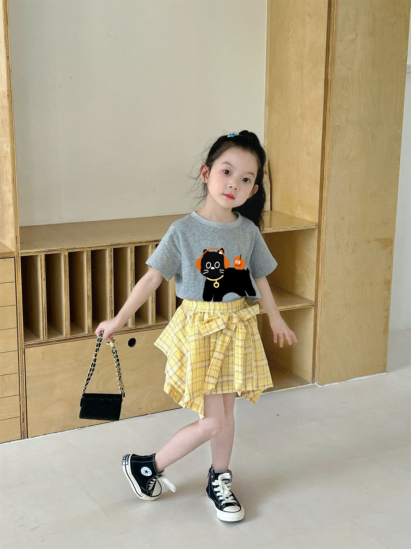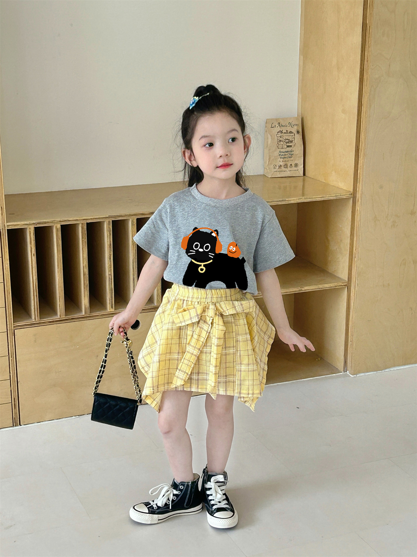 여자 격자 무늬 불규칙한 치마 활 2025 여름 새로운 한국 스타일 서양식 아기 소녀 치마스토어 가기