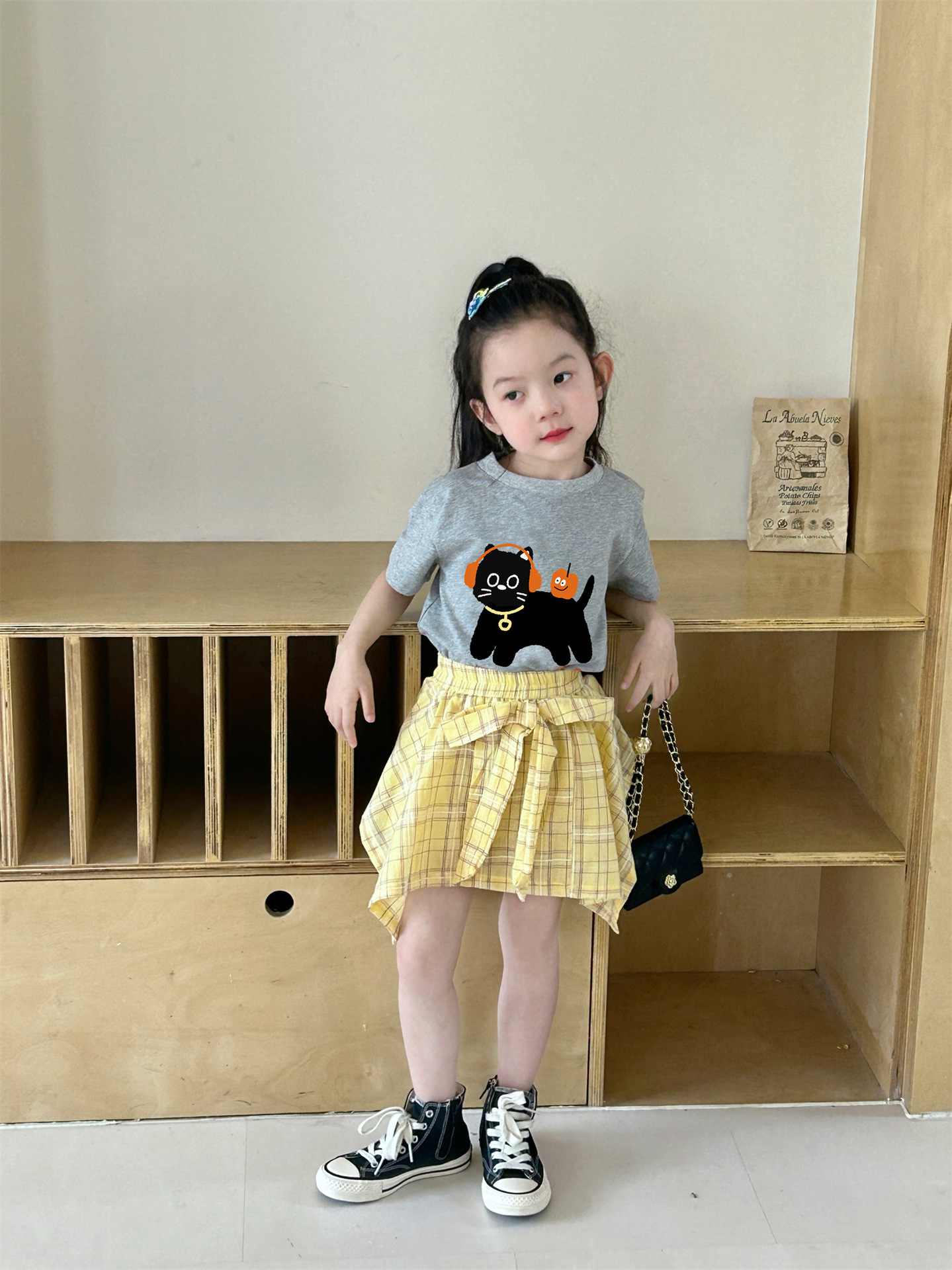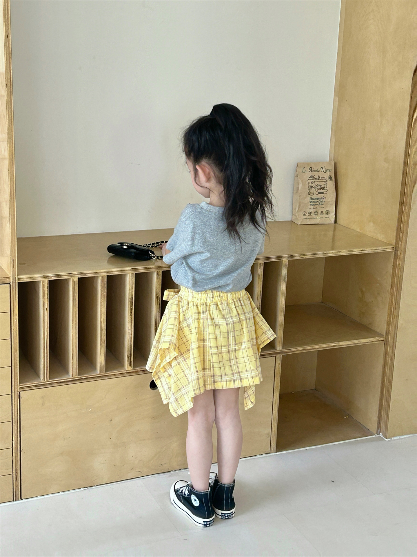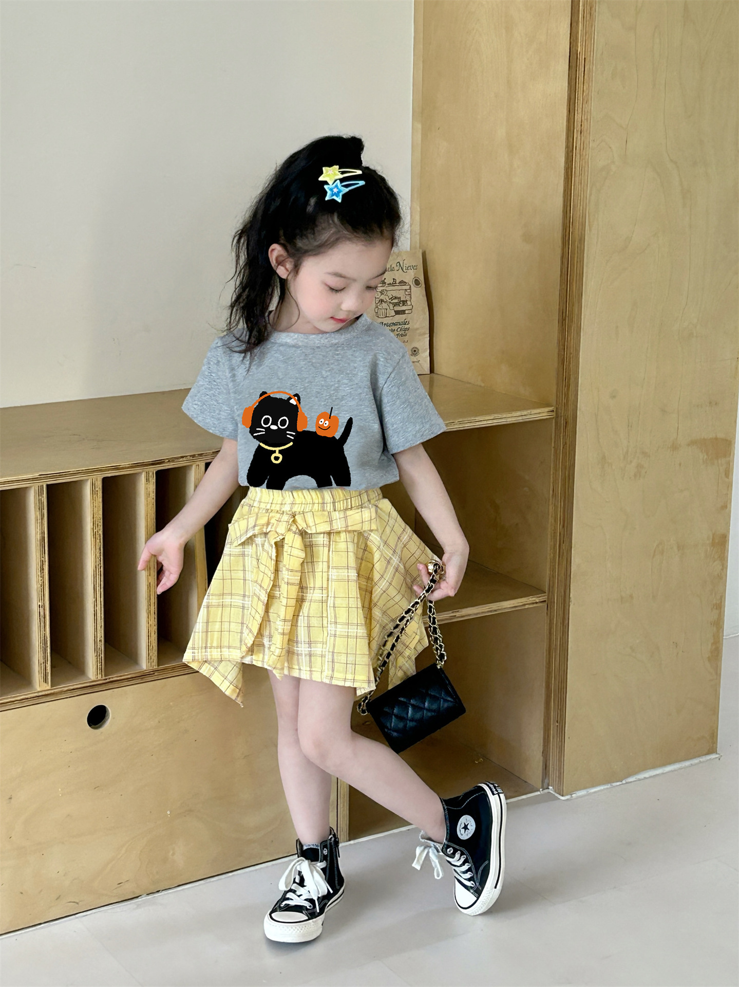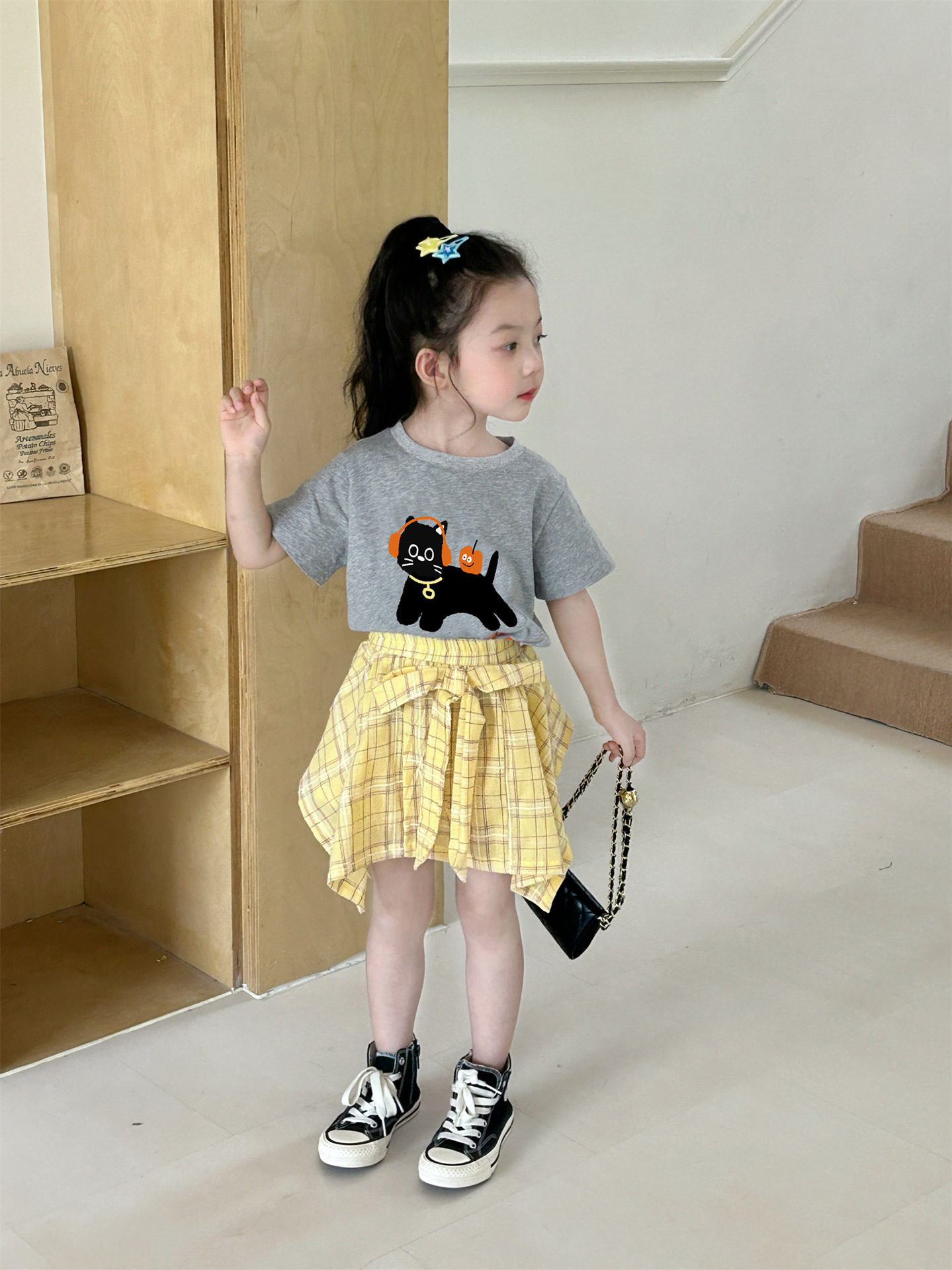 여자 격자 무늬 불규칙한 치마 활 2025 여름 새로운 한국 스타일 서양식 아기 소녀 치마스토어 가기
