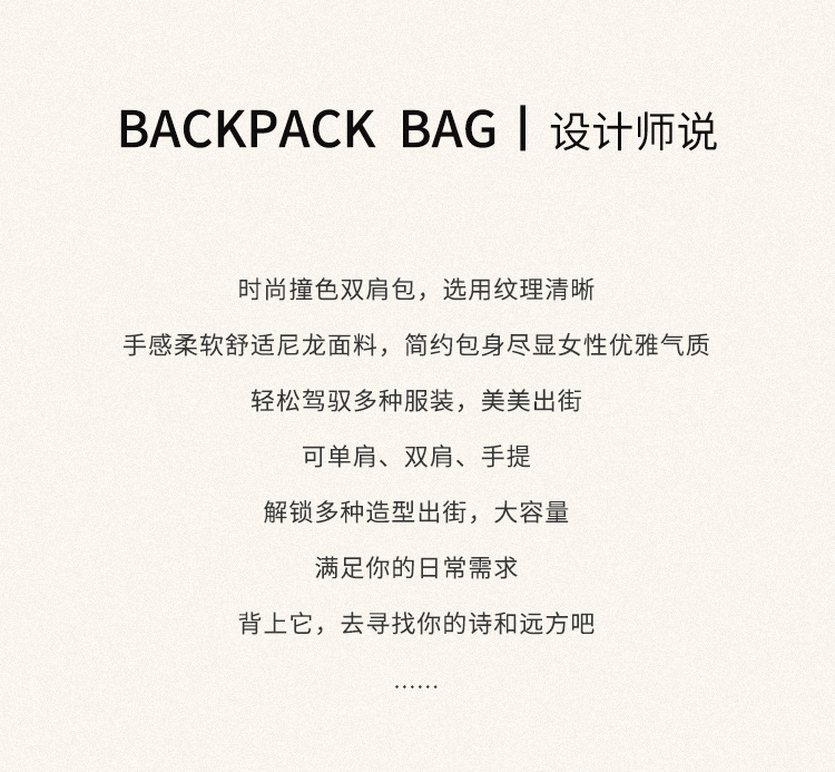 Each product will be paired with a small handbag in the same color, which can hold small items such as a phone, key, wallet, lipstick, etc; Improve product storage capacity;
