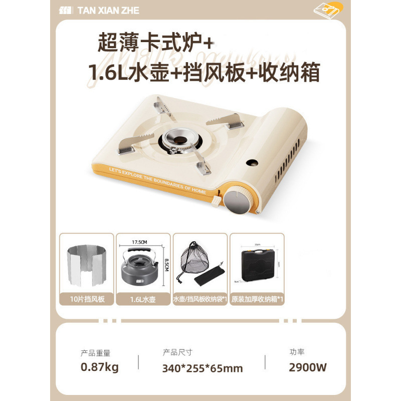 • 초박형 카세트 스토브 + 1.6L 주전자 + 앞유리 + 보관함