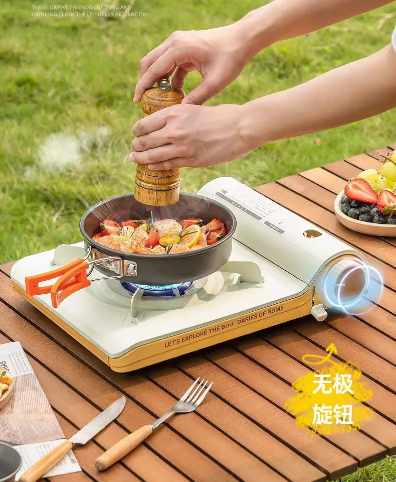 • 초박형 카세트 스토브 + 나무 손잡이 베이킹 팬 + 윈드 디플렉터 + 보관함