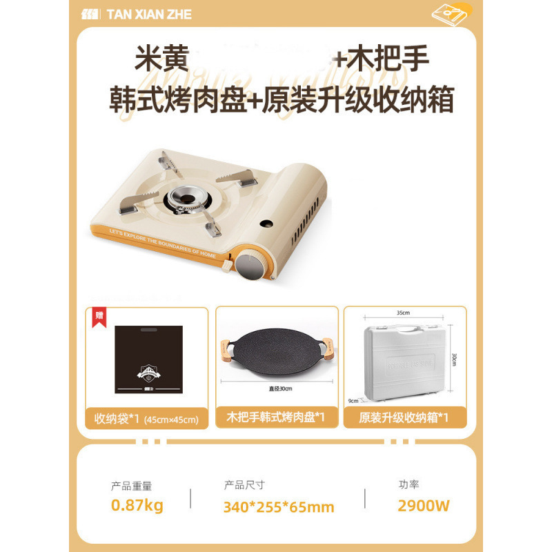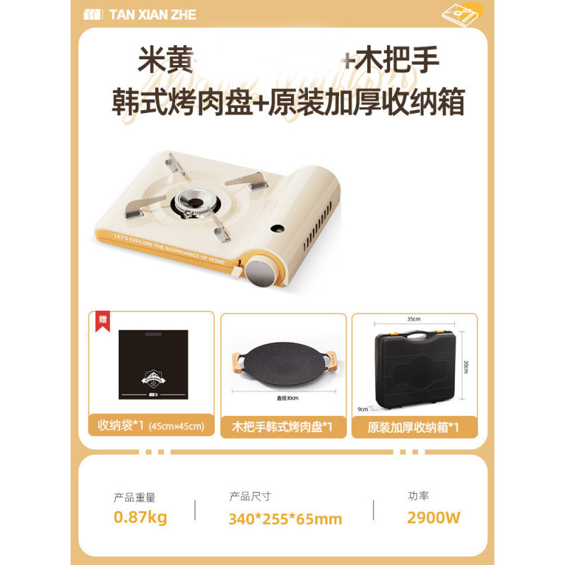 • 초박형 카세트 스토브 + 나무 손잡이 한국식 바베큐 플레이트 + 흰색 두꺼운 보관 상자