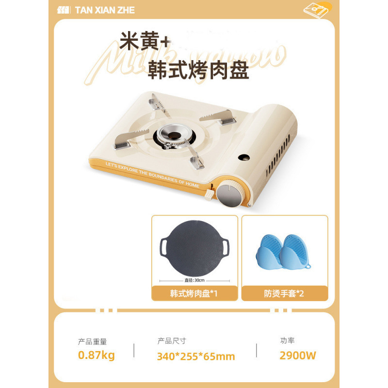 • 초박형 카세트 스토브 + 나무 손잡이 한국식 바베큐 플레이트 + 보관함