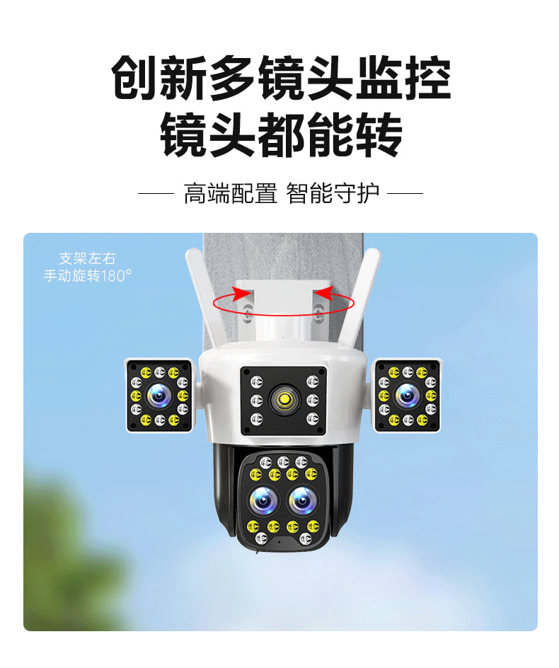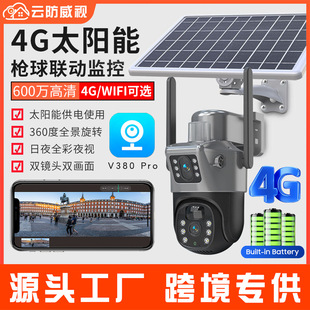真三镜头三画面太阳能监控器防水摄像头语音对讲家用夜视高清球机