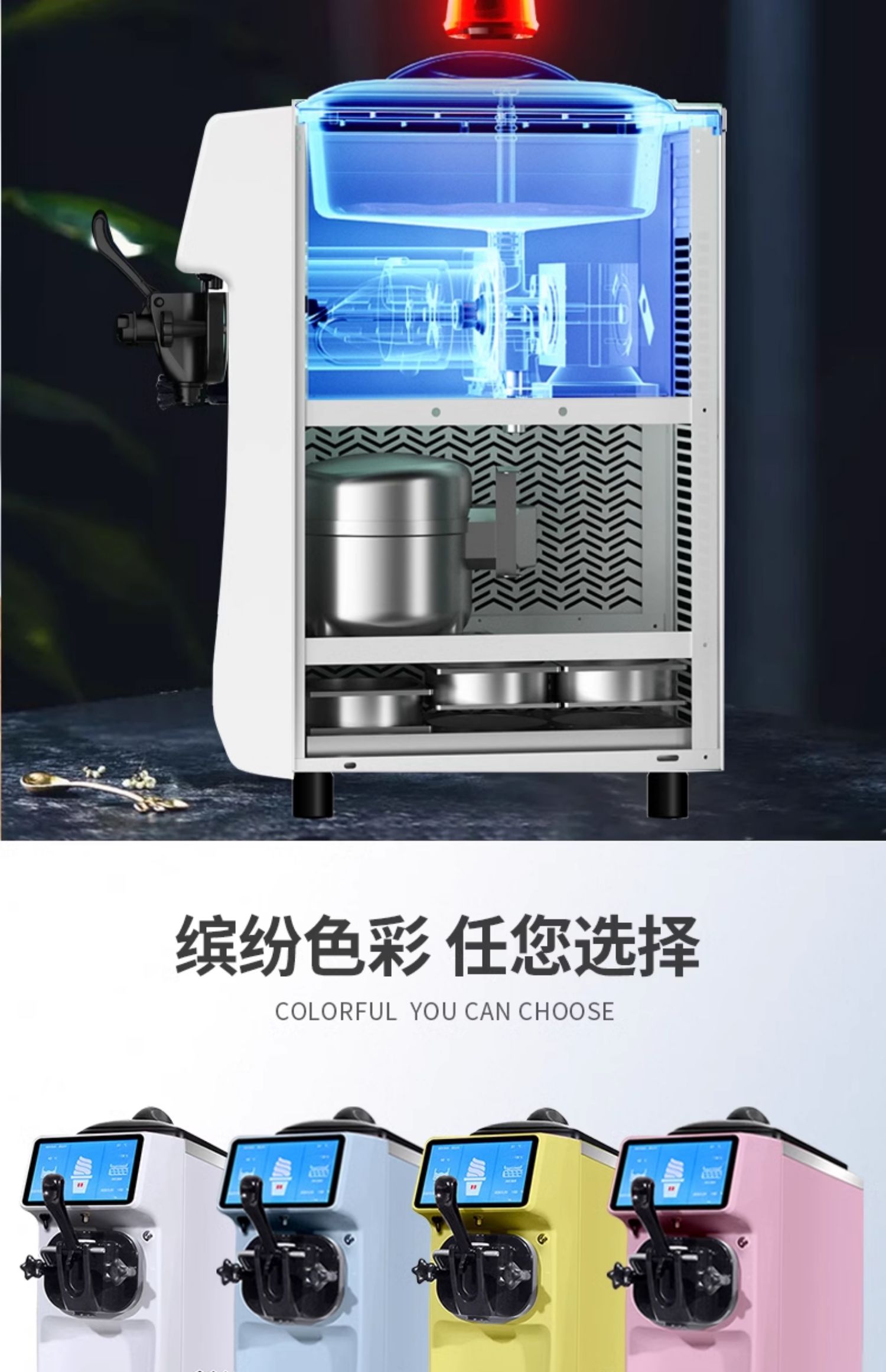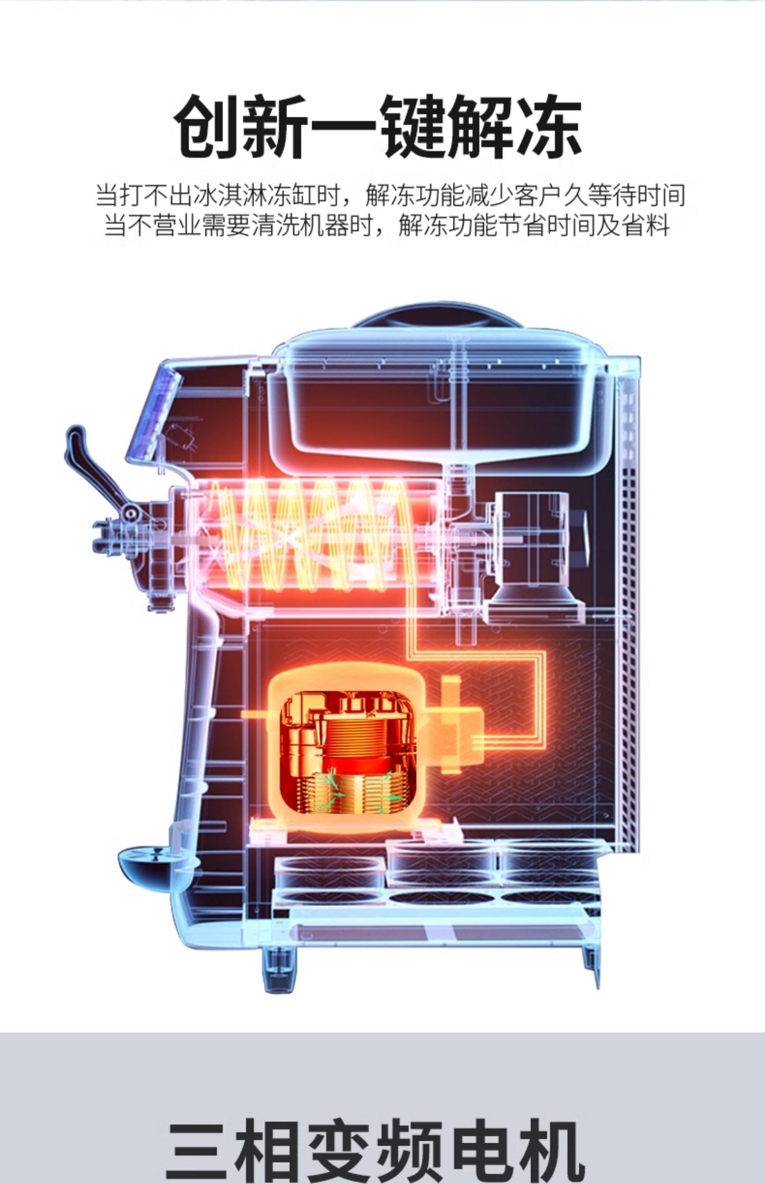 • 싱글 헤드 구성(수입 압축기 - 완전 밀폐형 본체) + 주파수 변환 에너지 절약 및 소음 감소 + 신선도 유지