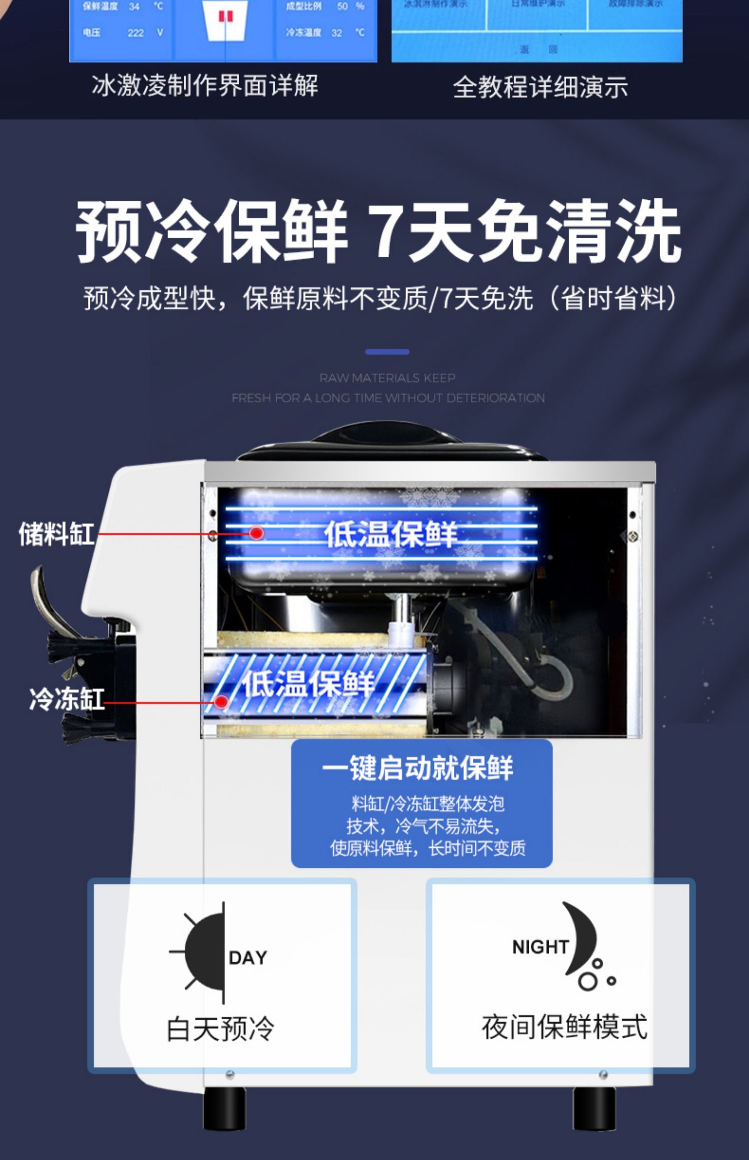 • 업그레이드된 듀얼 시스템 - 7일 동안 사전 냉각 및 세척 없이 신선함 유지 + 단일 실린더 작동 가능 + 청소 버튼 + 내부