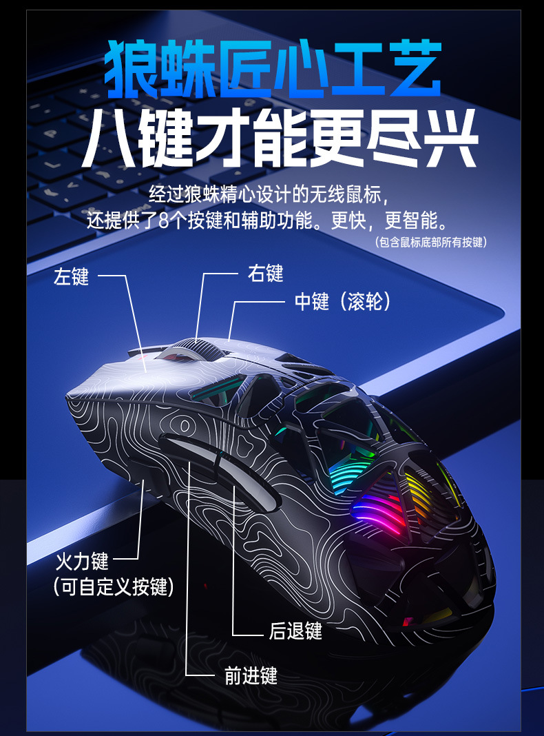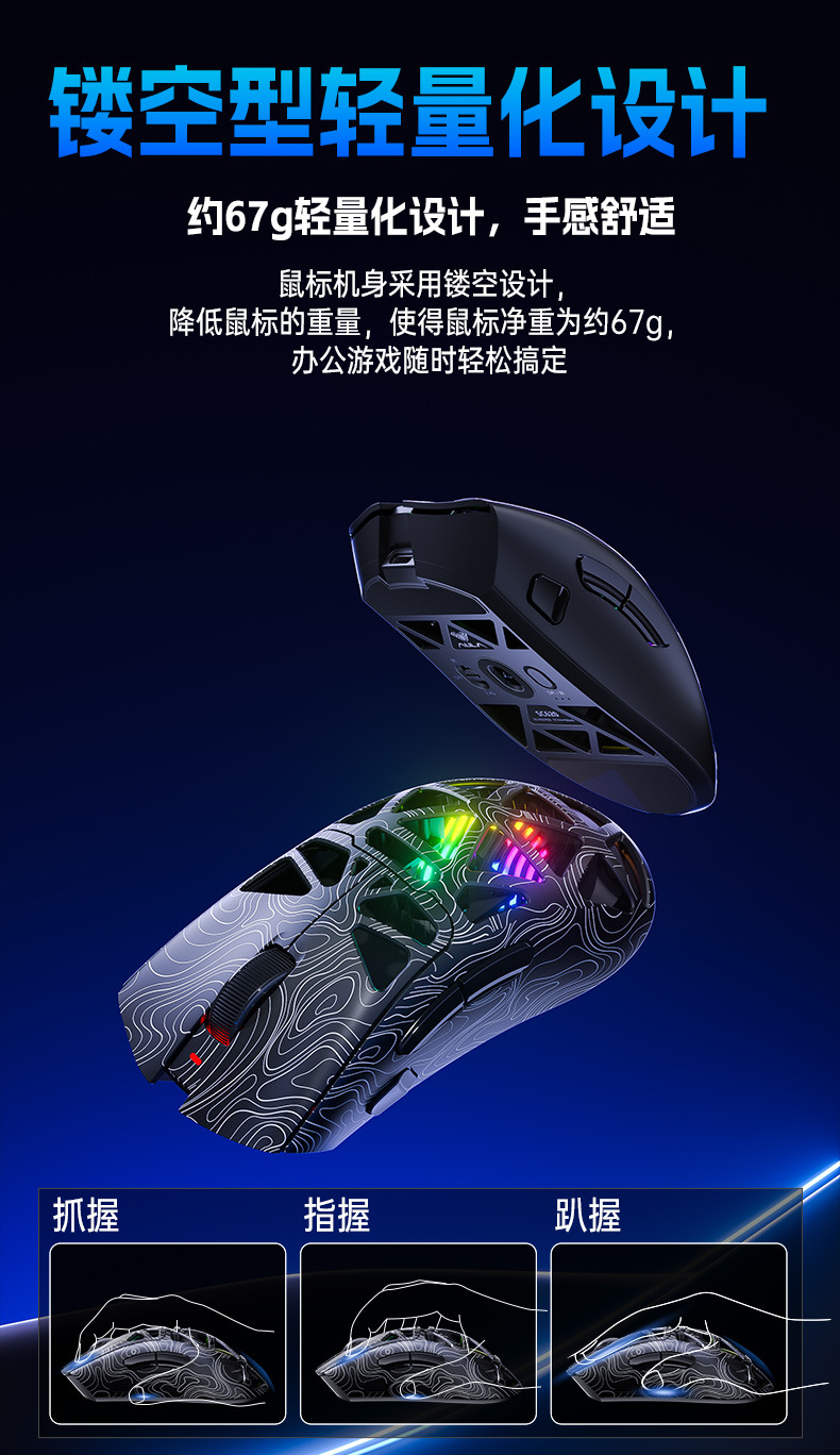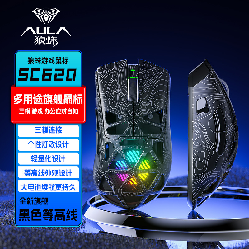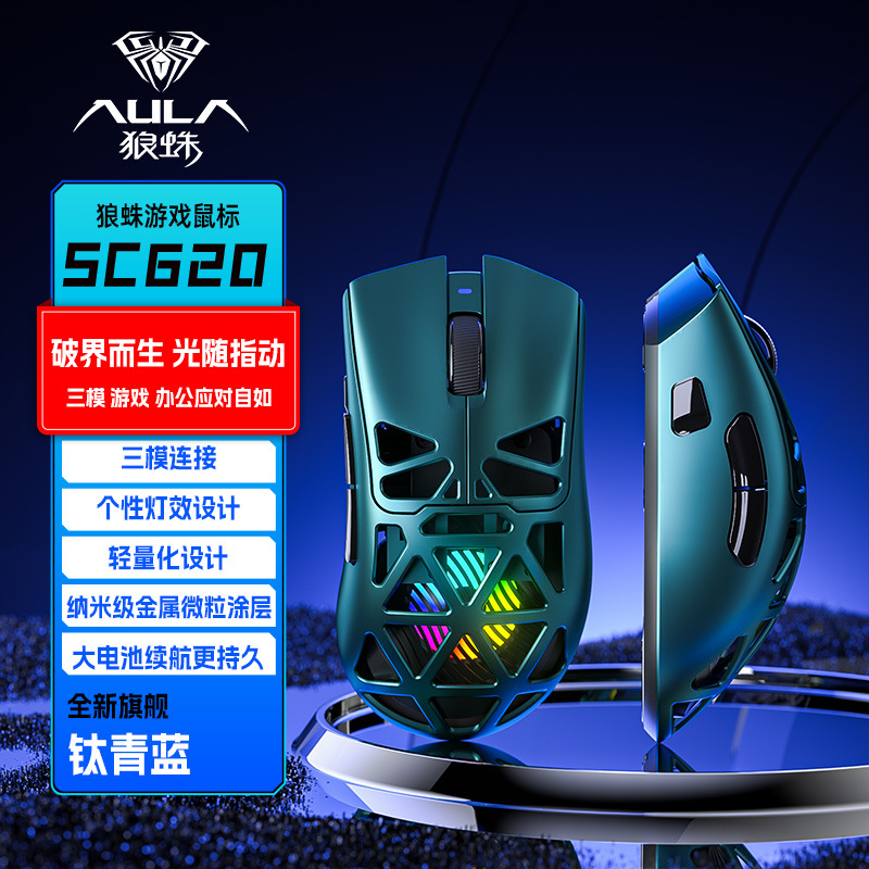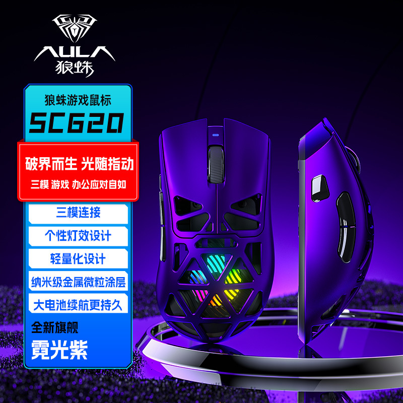 AULA/울프스파이더 SC620 경량 홀형 마우스 블루투스 무선 3모드 게이밍 e스포츠 RGB 아마존 해외배송