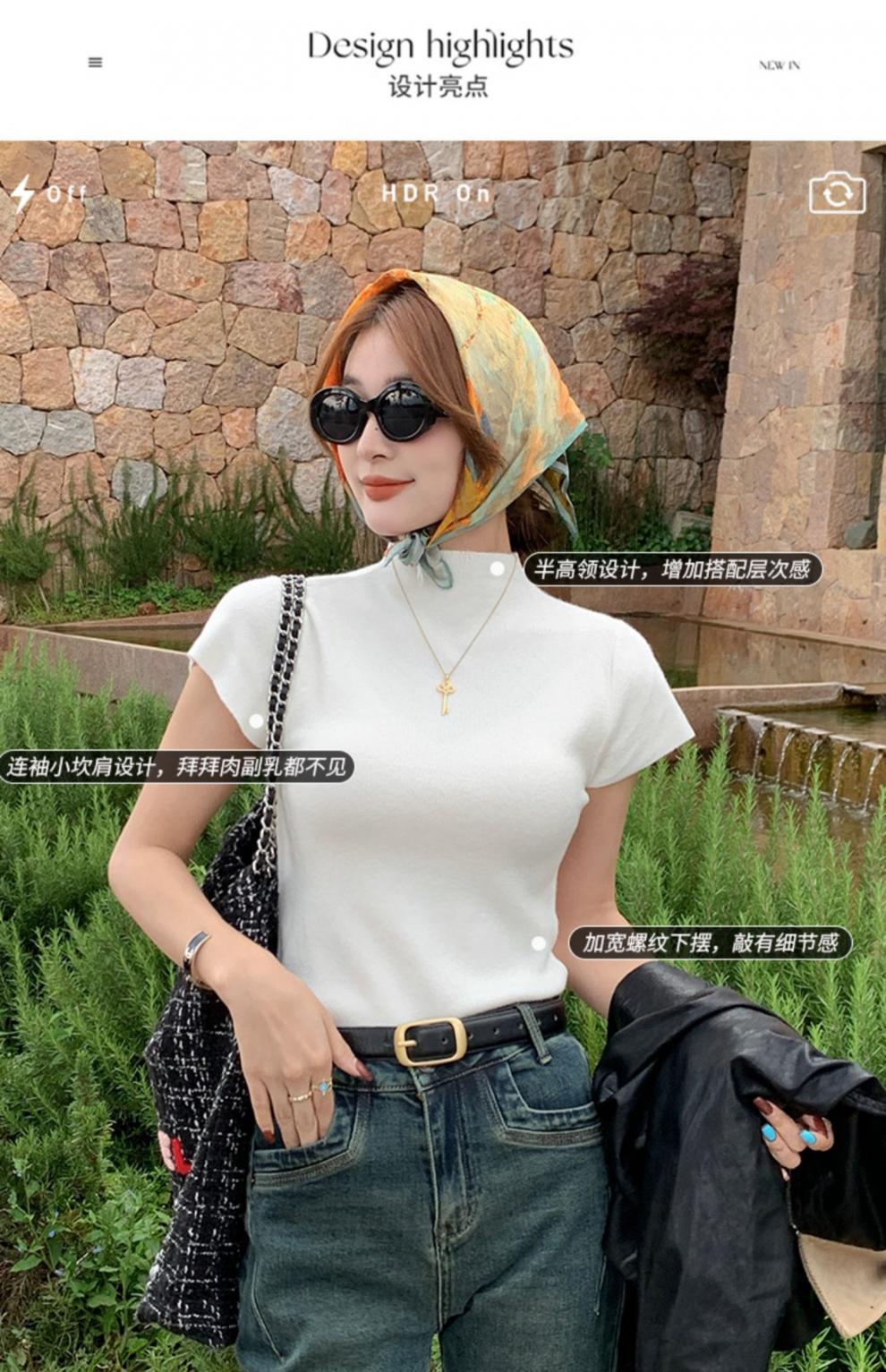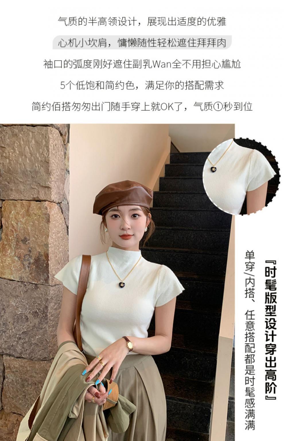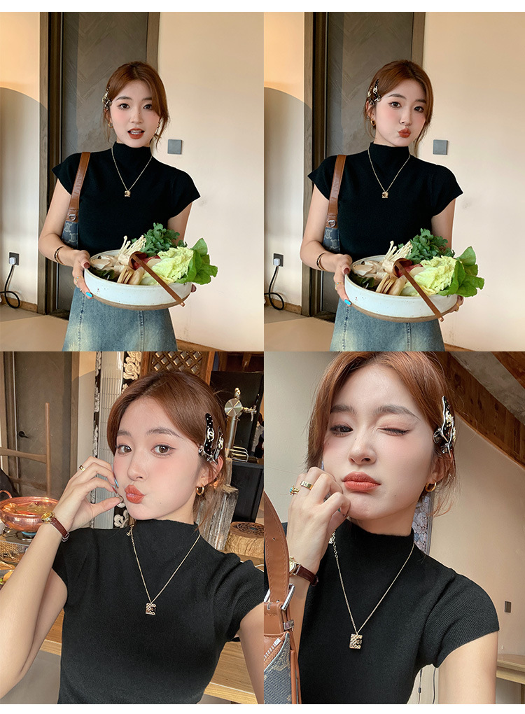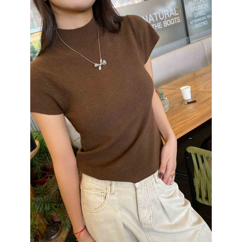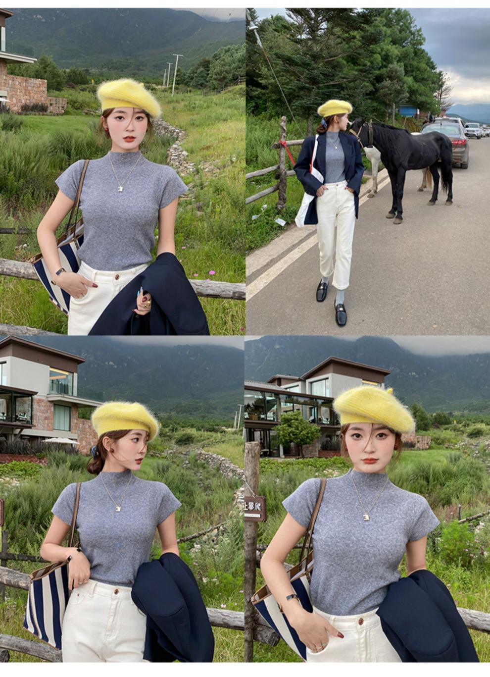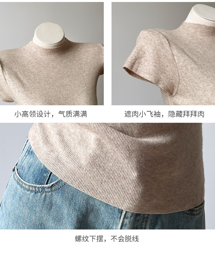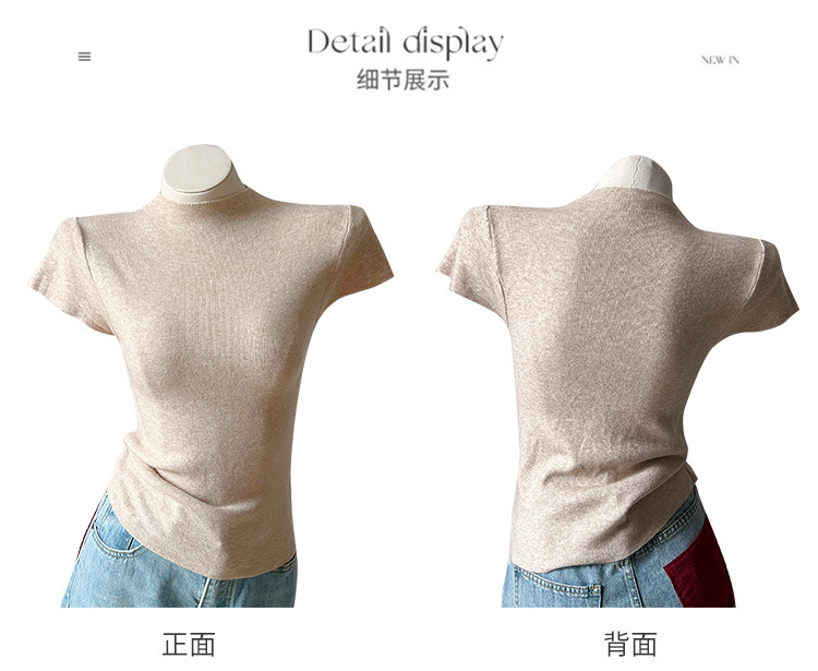 그레이 하프 하이 넥 반팔 티셔츠 여성용 2025 년 여름 새로운 슬림 핏 하이 엔드 니티드베이스 탑스토어 가기
