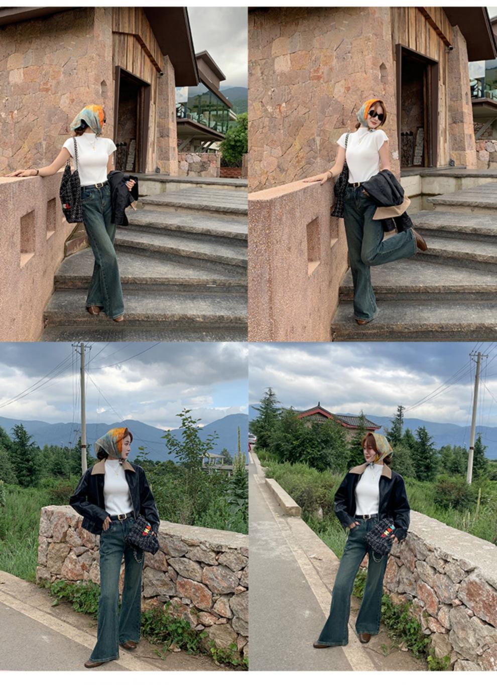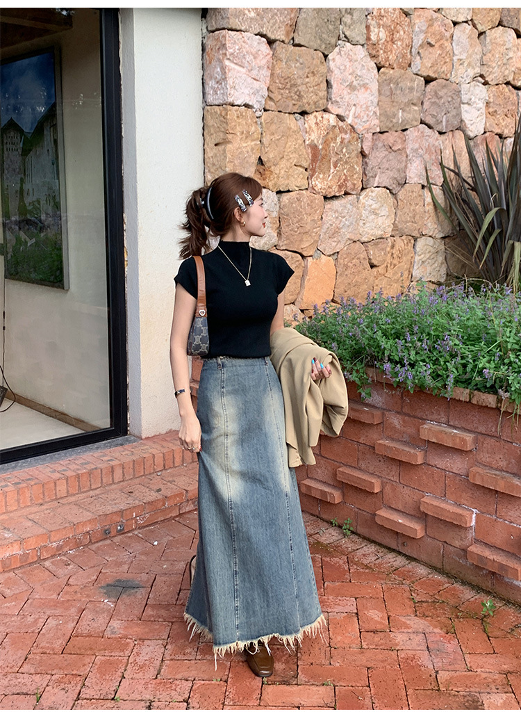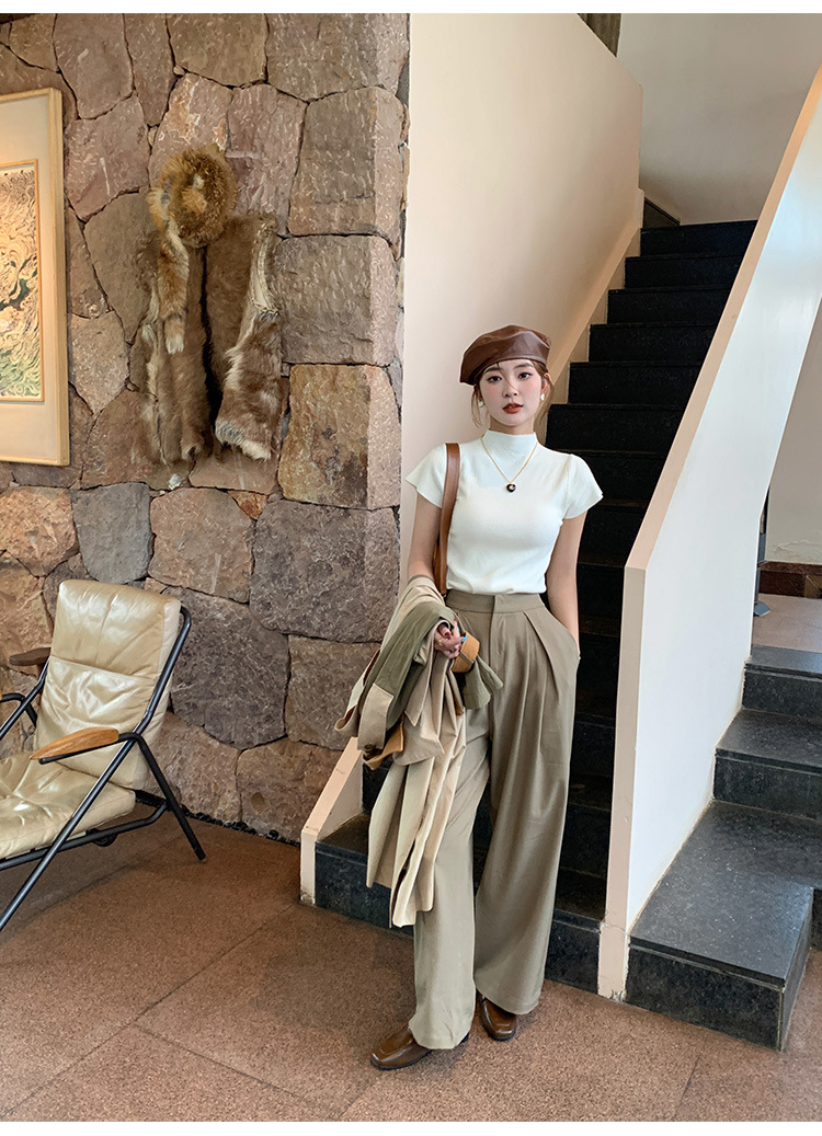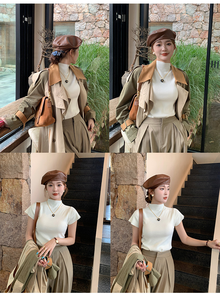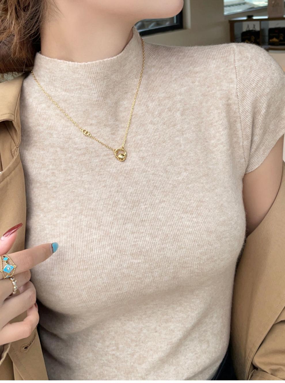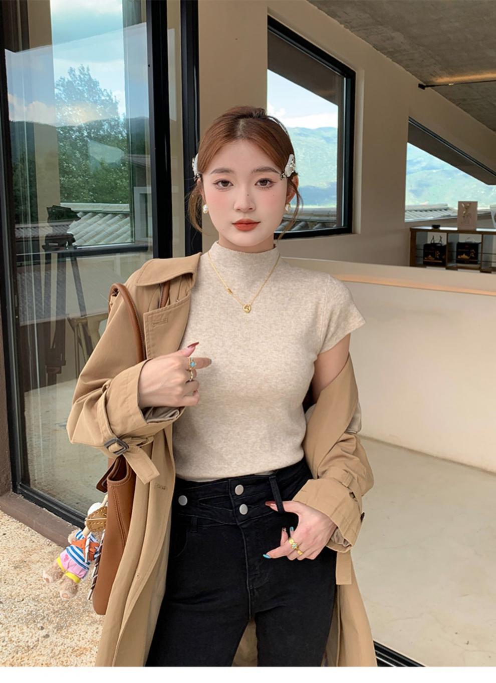 그레이 하프 하이 넥 반팔 티셔츠 여성용 2025 년 여름 새로운 슬림 핏 하이 엔드 니티드베이스 탑스토어 가기
