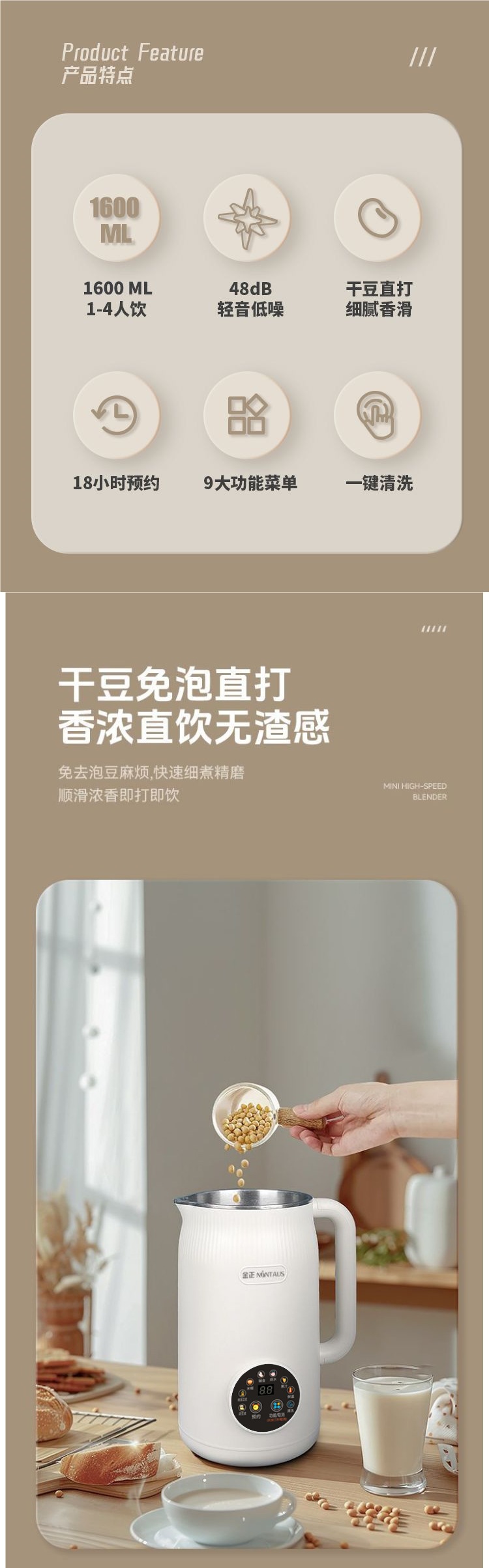 • 1600ML-48 리프나이프 [식품등급 304 내부탱크] 필터링 없이 건조콩을 직접 분쇄