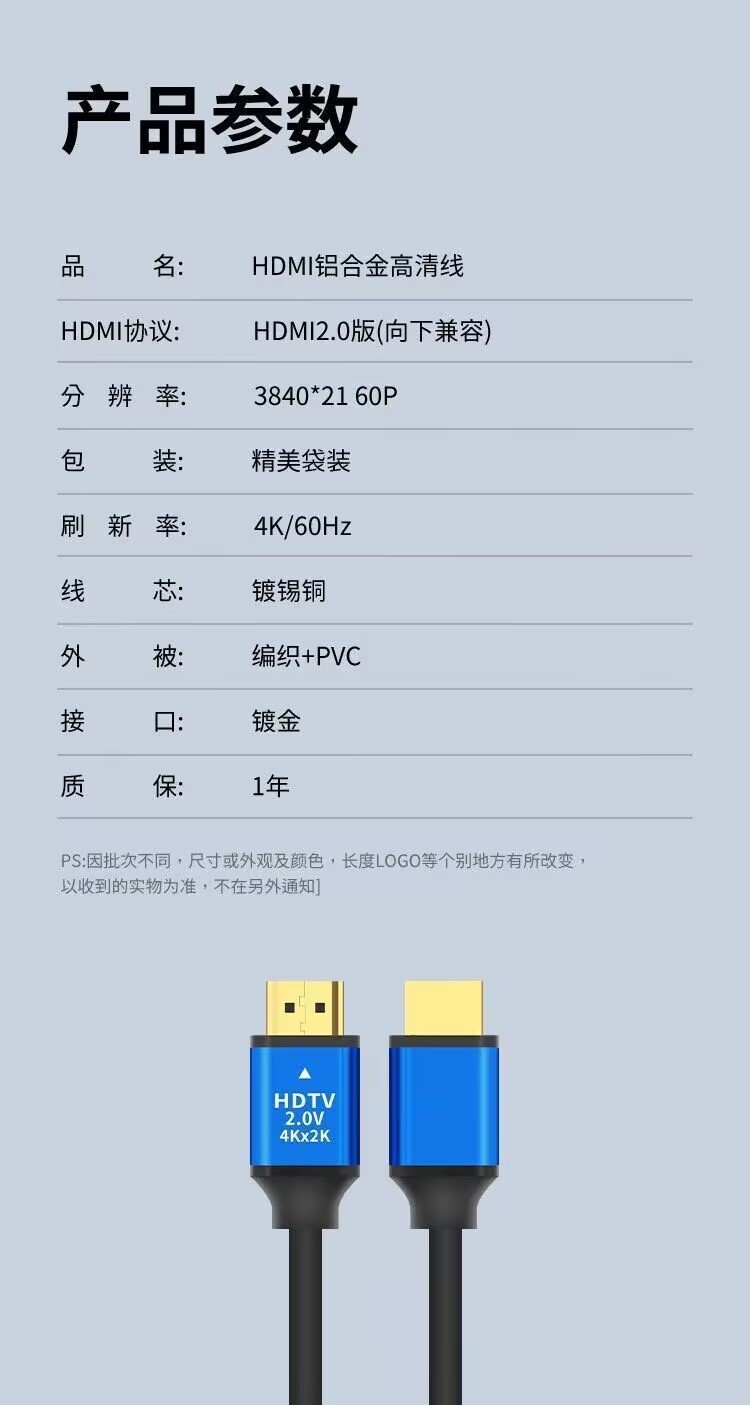 HDMI 케이블 2.0 고화질 케이블 4k 초고화질 컴퓨터 TV 프로젝터 셋톱박스 신호 데이터 케이블
