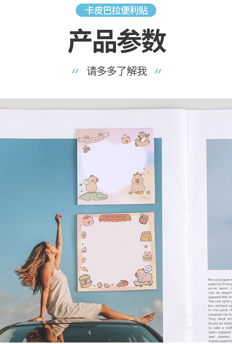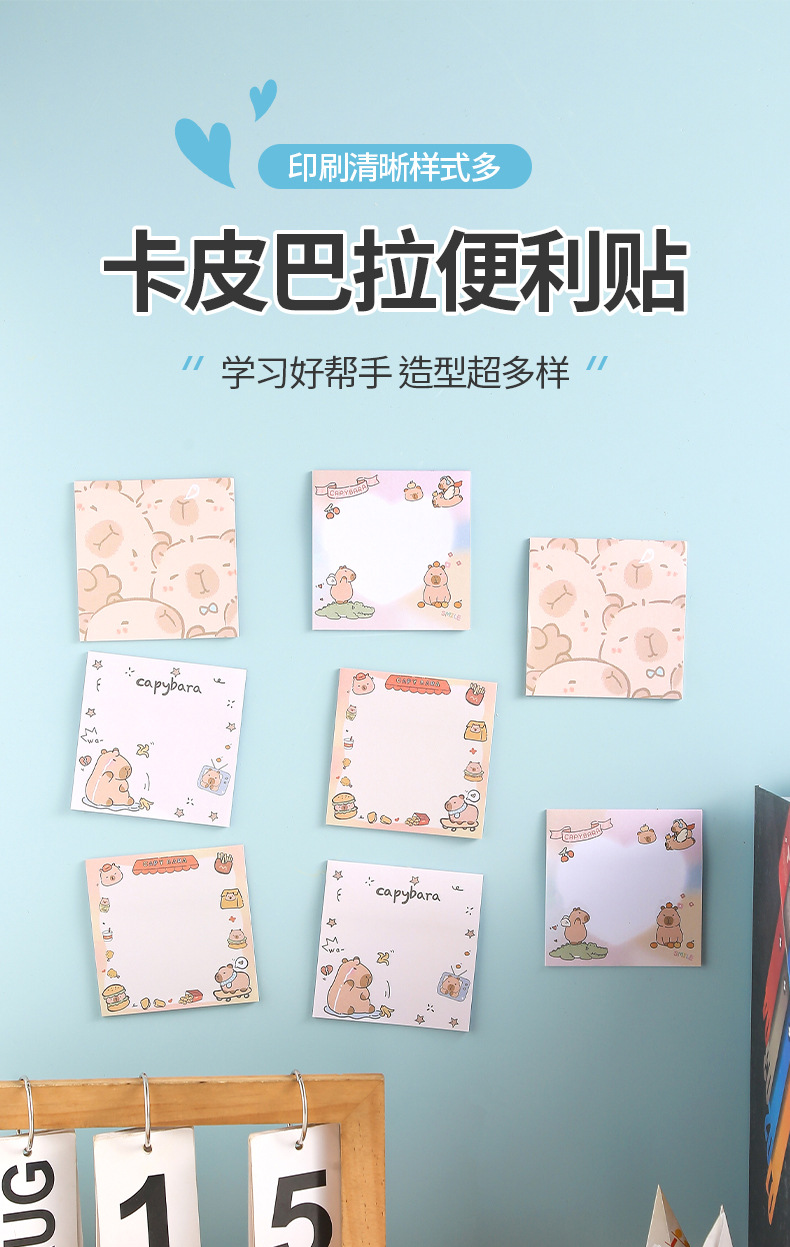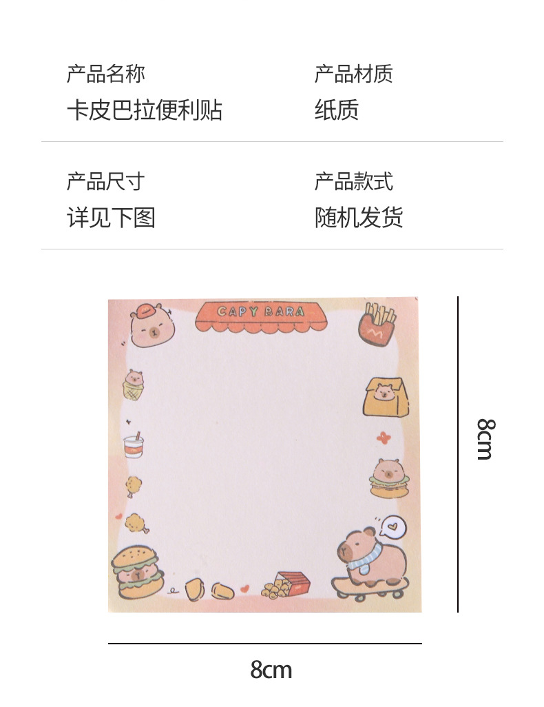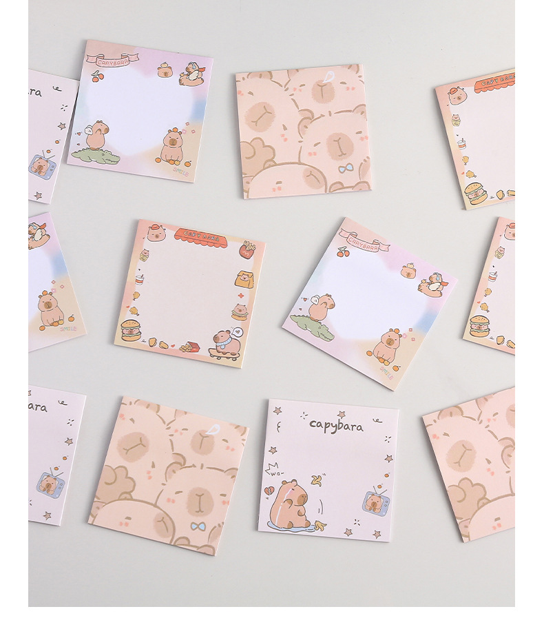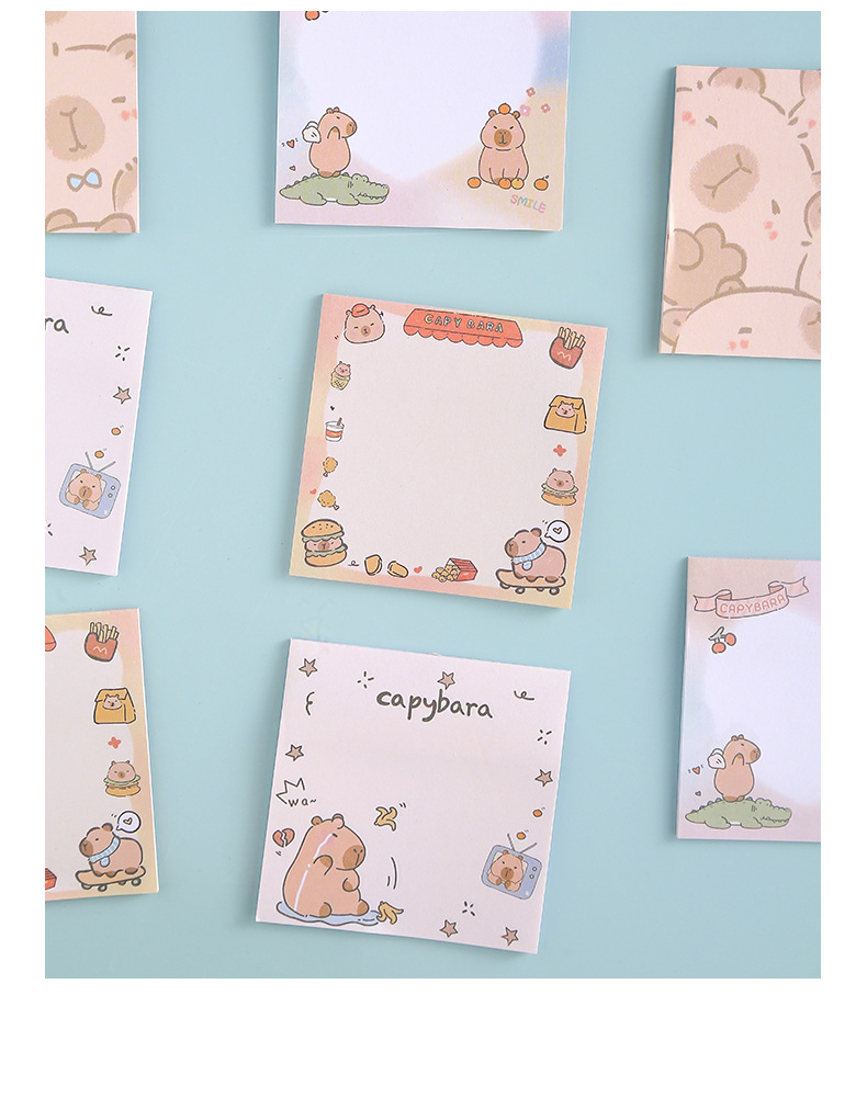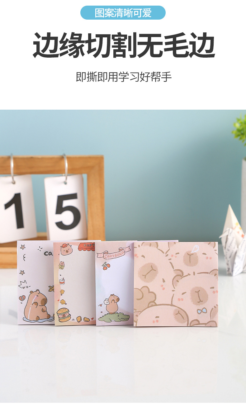 학생들을위한 Capibala 포스트잇 노트 귀여운 끈끈한 강한 메시지 노트 Ins 만화 Capybara 포스트잇 노트스토어 가기