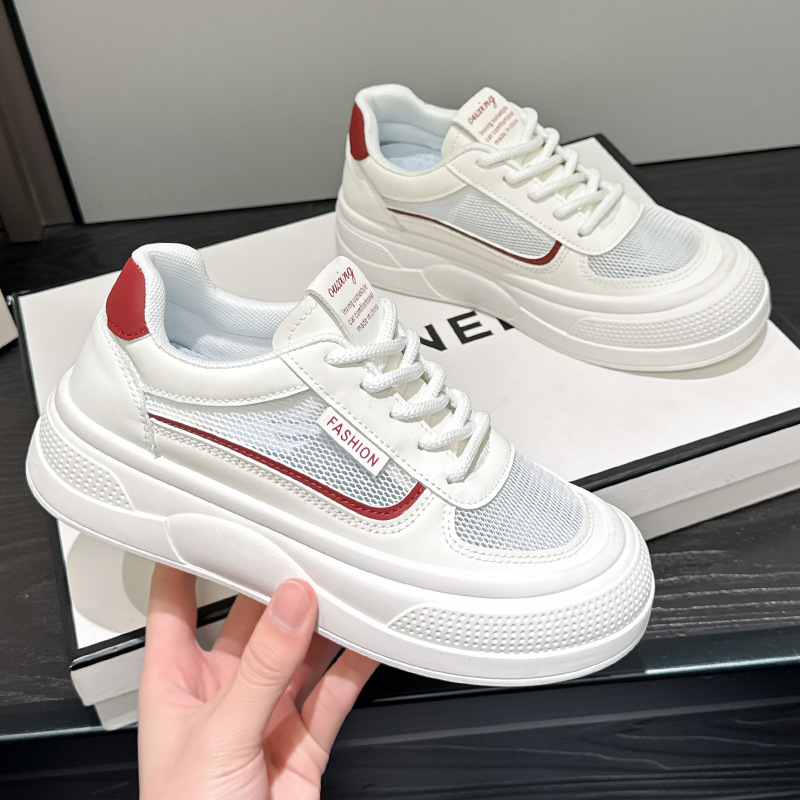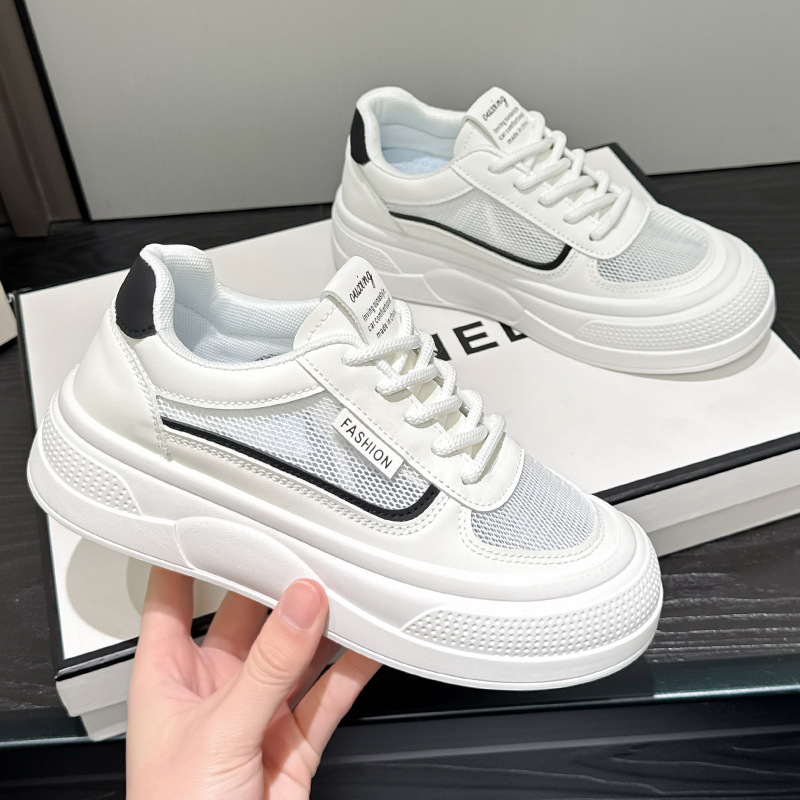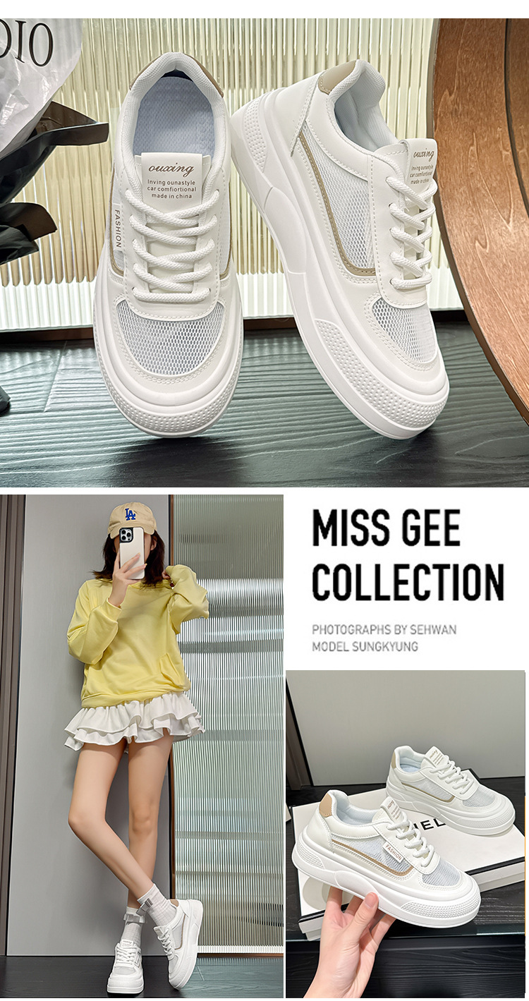 2025년 여름 신상 스포츠 및 레저 여성용 흰색 신발 한국식 두꺼운 밑창 가죽 다용도 신발 트렌디 스니커즈스토어 가기