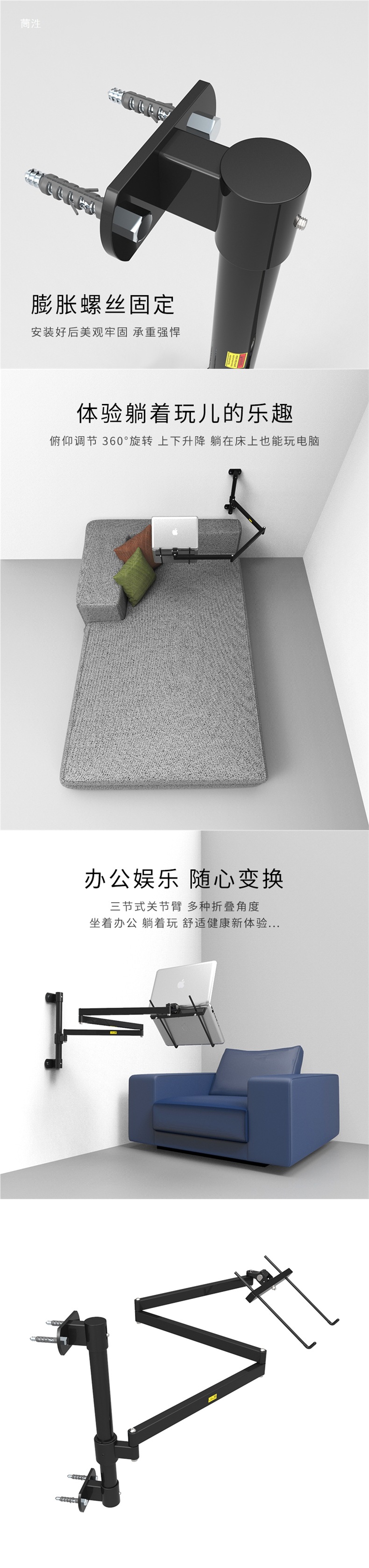 게으른 사람들을 위한 접이식 노트북 벽걸이 스탠드, 누워서 TV 시청, 침대 접이식 리프팅 스탠드스토어 가기