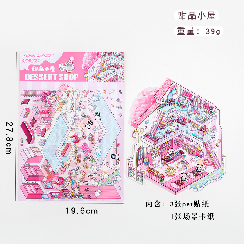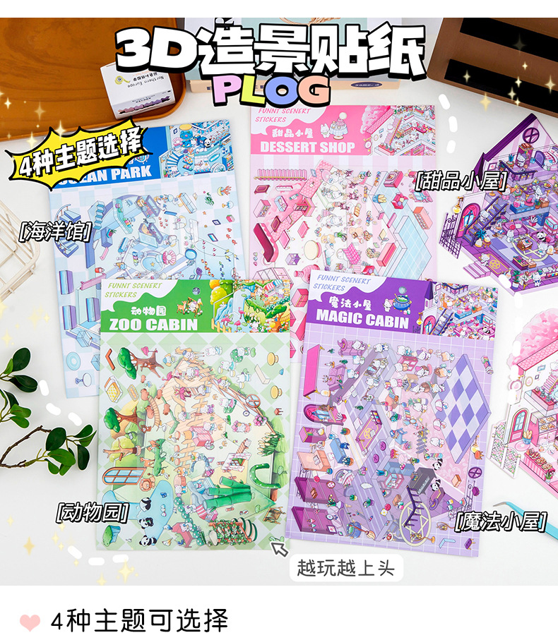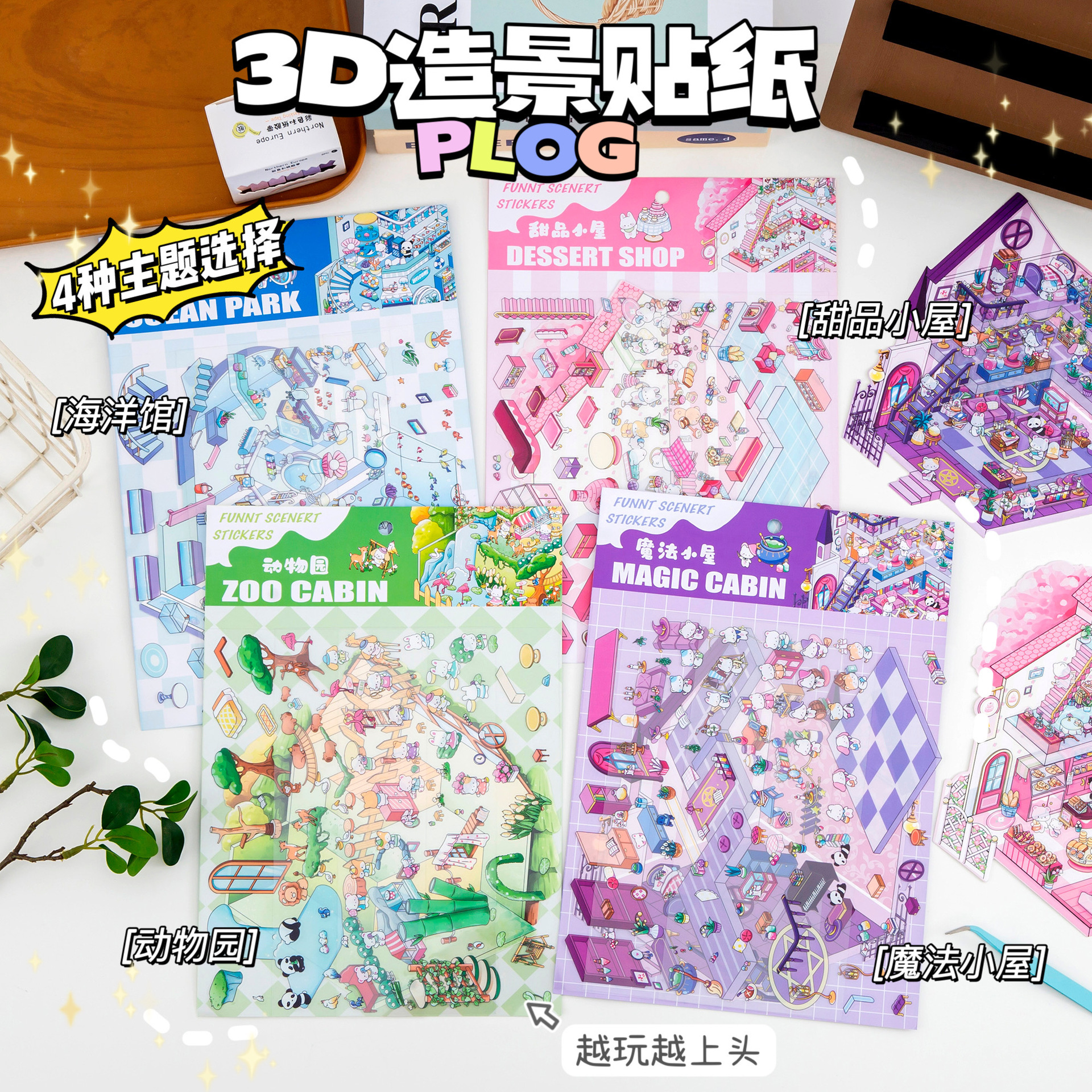 3D 입체 조경 스티커 도매 어린이 DIY 핸드북 감압 장난감 무료 절단 미니어처 장면 비주얼 캐빈스토어 가기