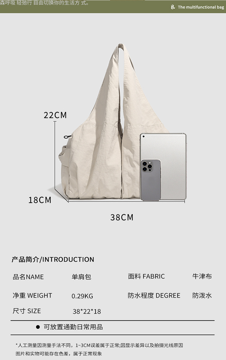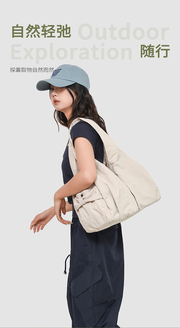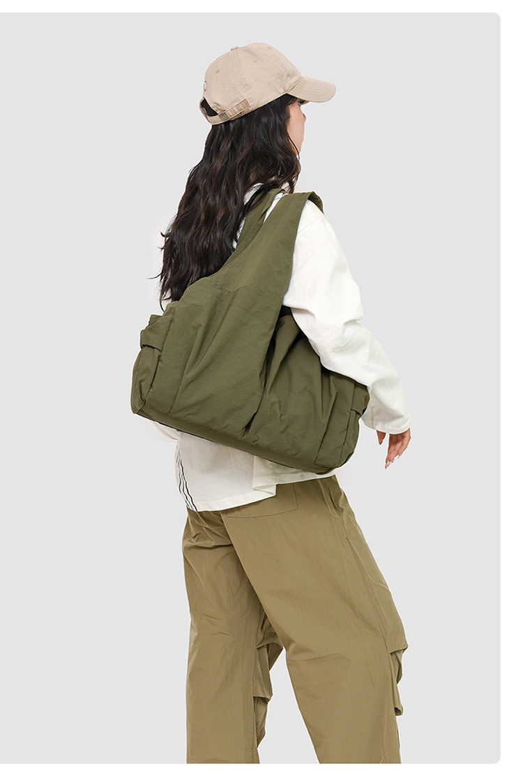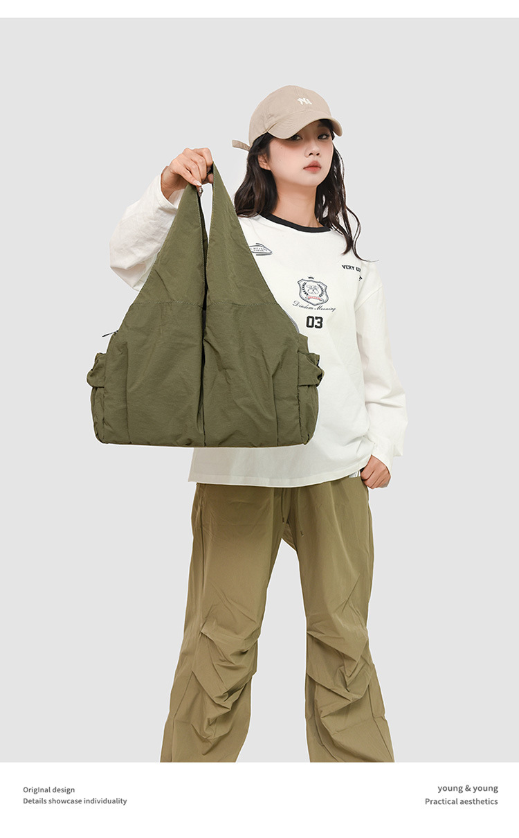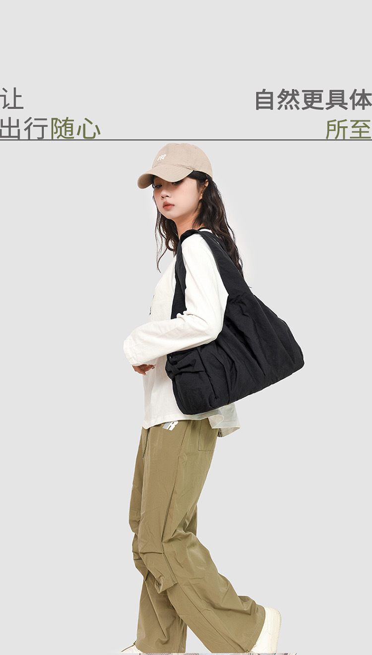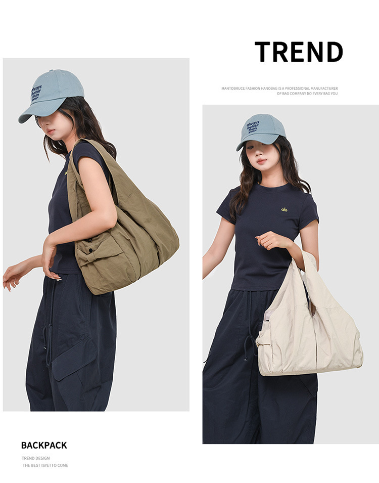 게으른 스타일 나일론 토트 백 2025 새로운 스타일 대용량 캐주얼 어깨 가방 모든 경기 간단한 야외 경량 여성용 가방스토어 가기