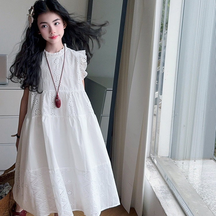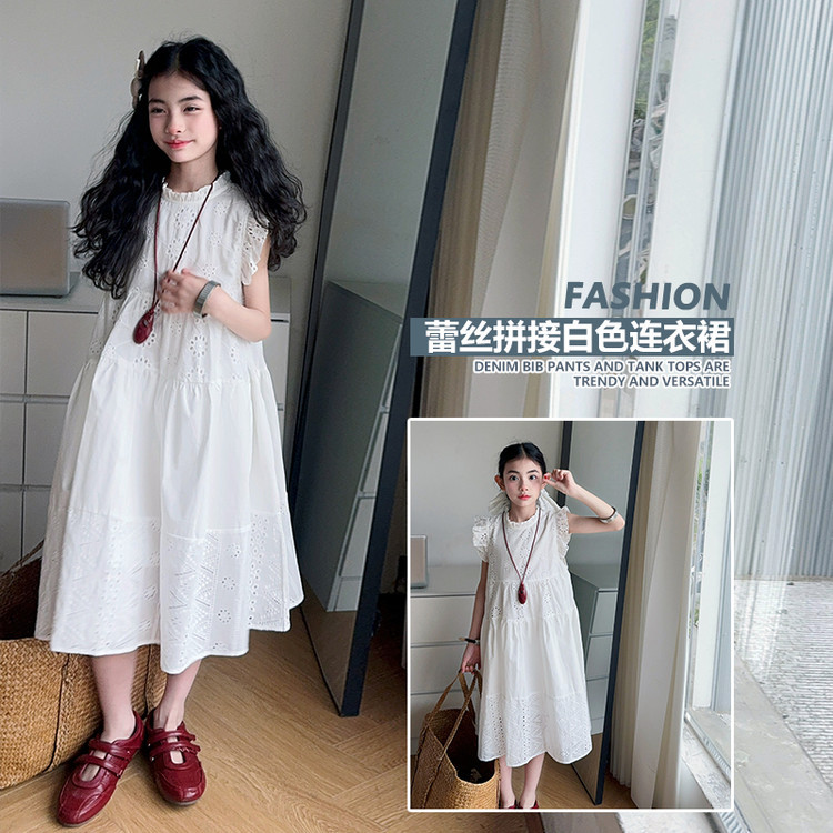 여자 여름 드레스 여름 2025 새로운 스타일 중대형 어린이 레이스 롱 스커트 어린이 스커트 공주 스커트 유행스토어 가기