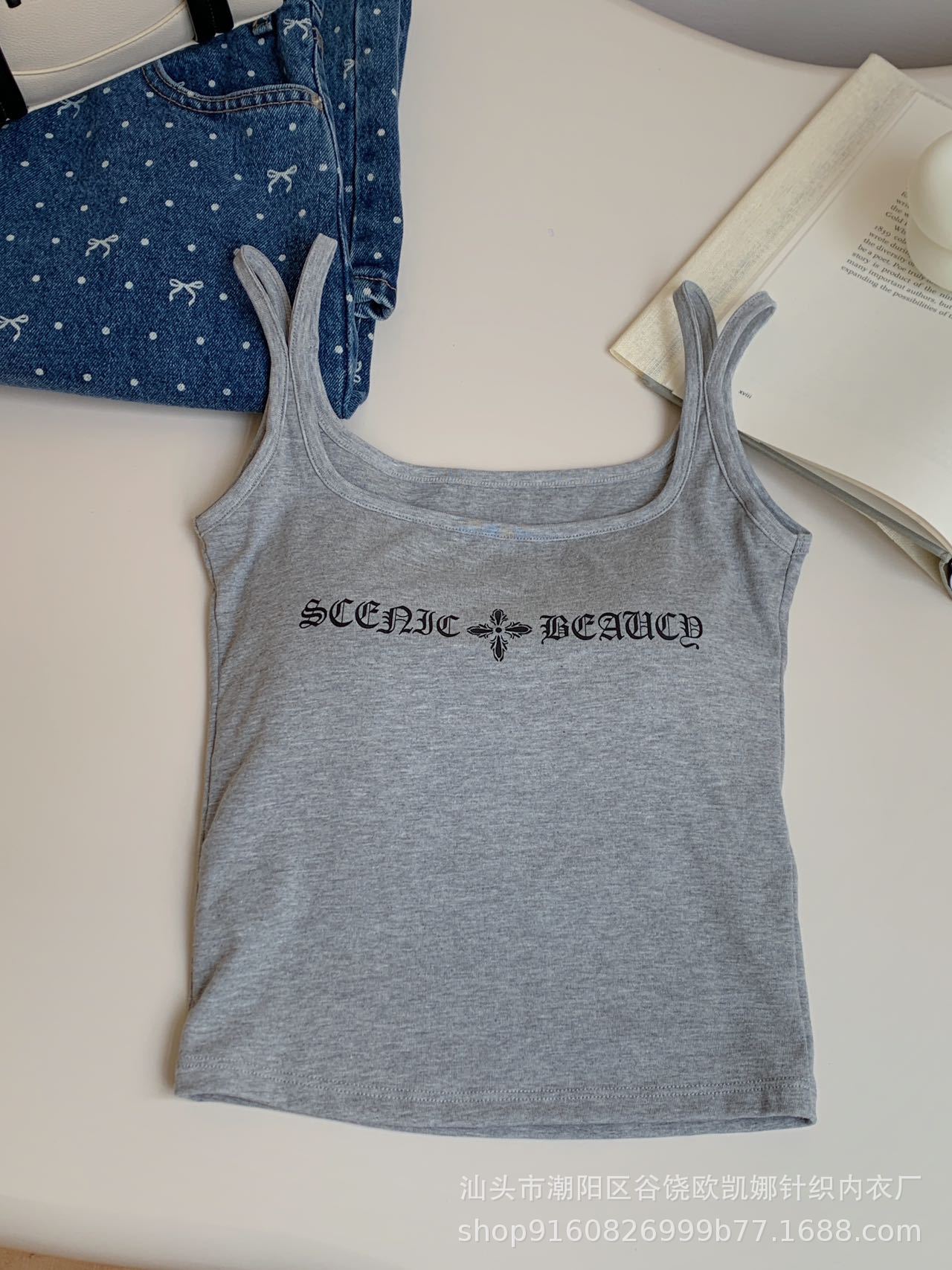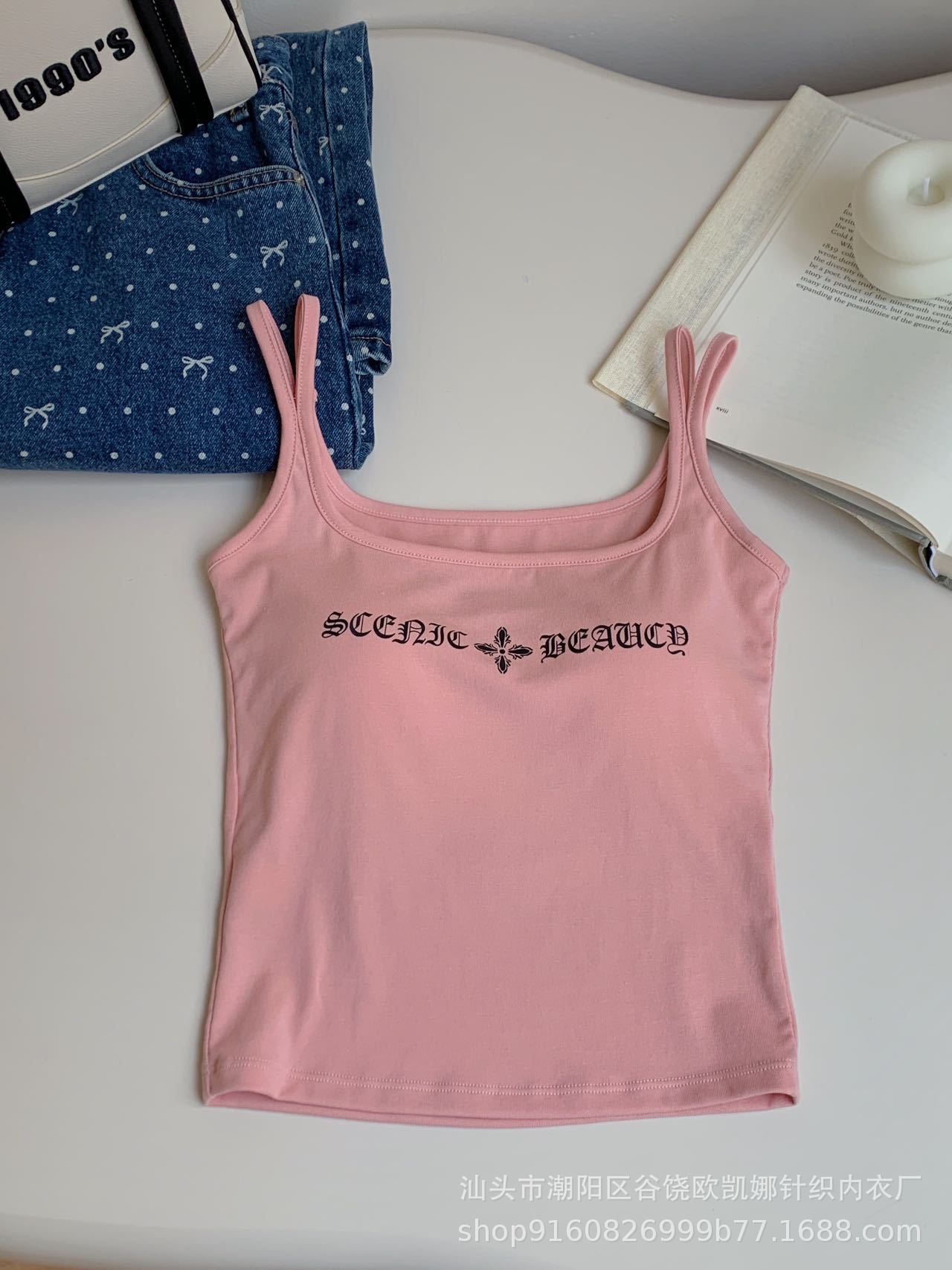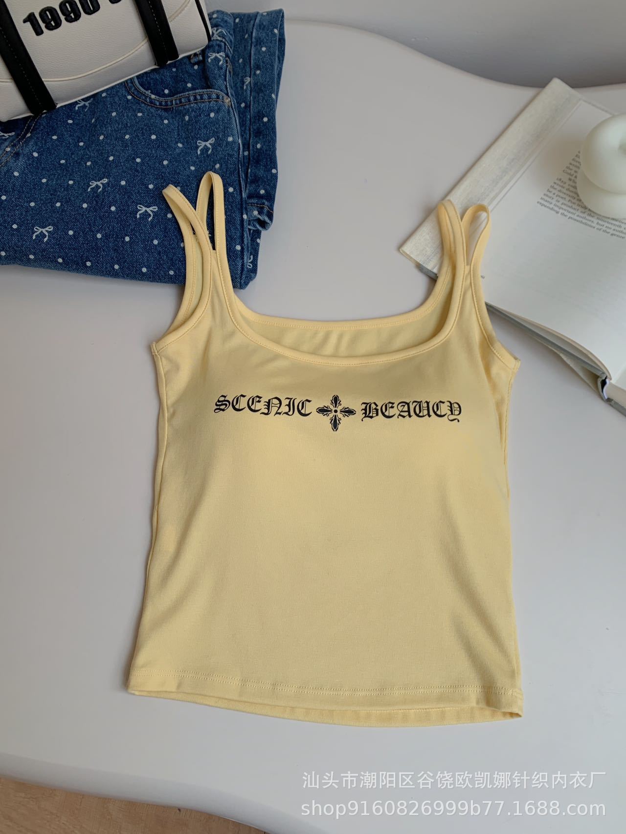 2025 새로운 미국식 도파민 편지 인쇄 카미 솔 스파이스 소녀 내부 슬림-여성용 민소매 짧은 탑
