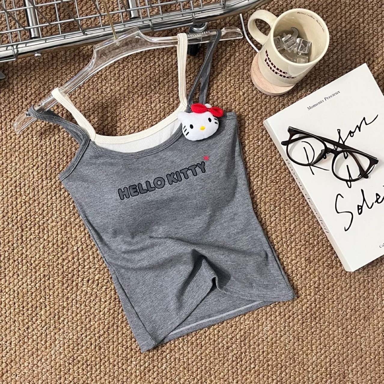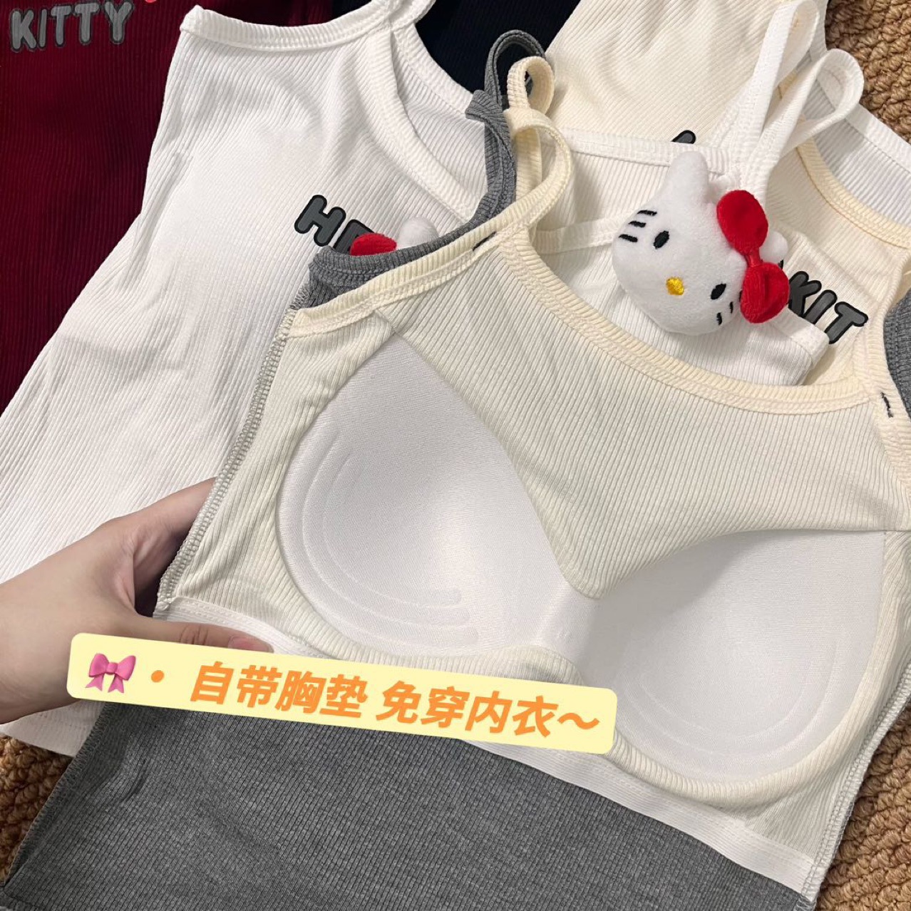 2025 새로운 슬링 아름다운 봄과 여름 키티 새로운 가짜 투피스 여성 내부 조끼 가슴 패드