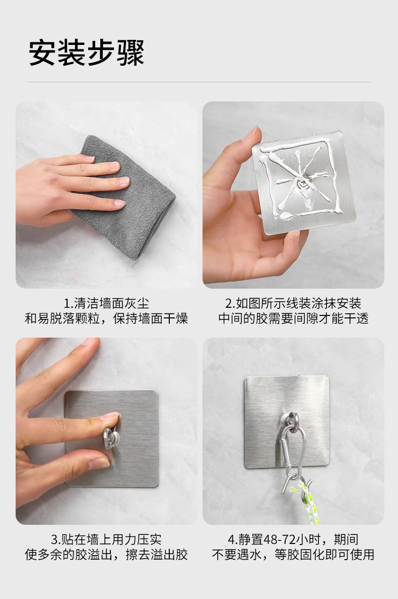 후크, 빨랫줄 고정 장치, 야외 시멘트 벽 펀치 없는 내하중 접착 후크, 링 버클 후크스토어 가기