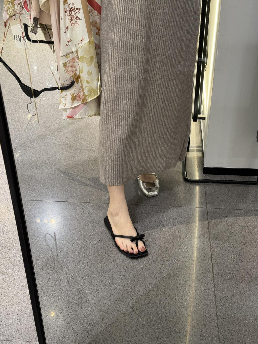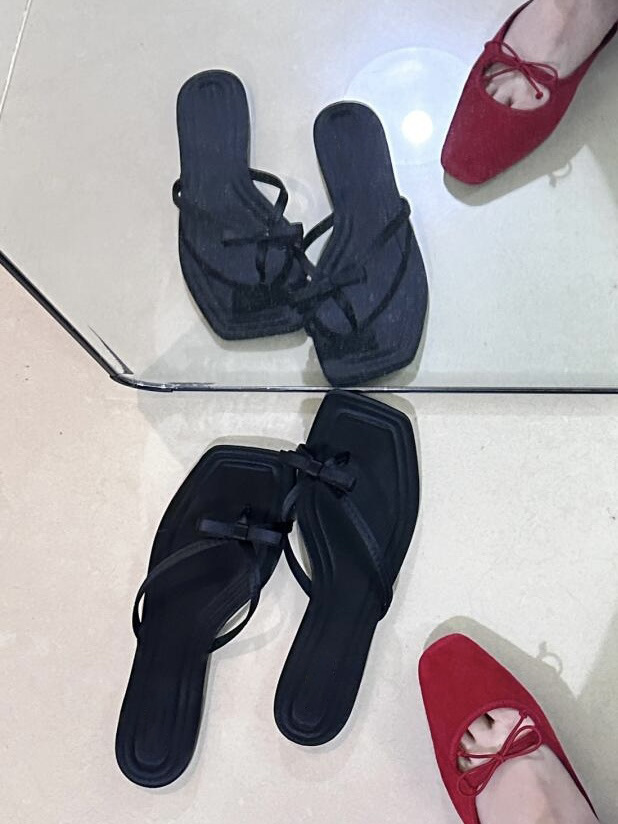 양가죽 버전 ~ 여성용 정품 가죽 보우 플랫 플립플롭 여름 프렌치 슬리퍼 아우터웨어 소프트솔 하프 슬리퍼 하프 슬리퍼스토어 가기