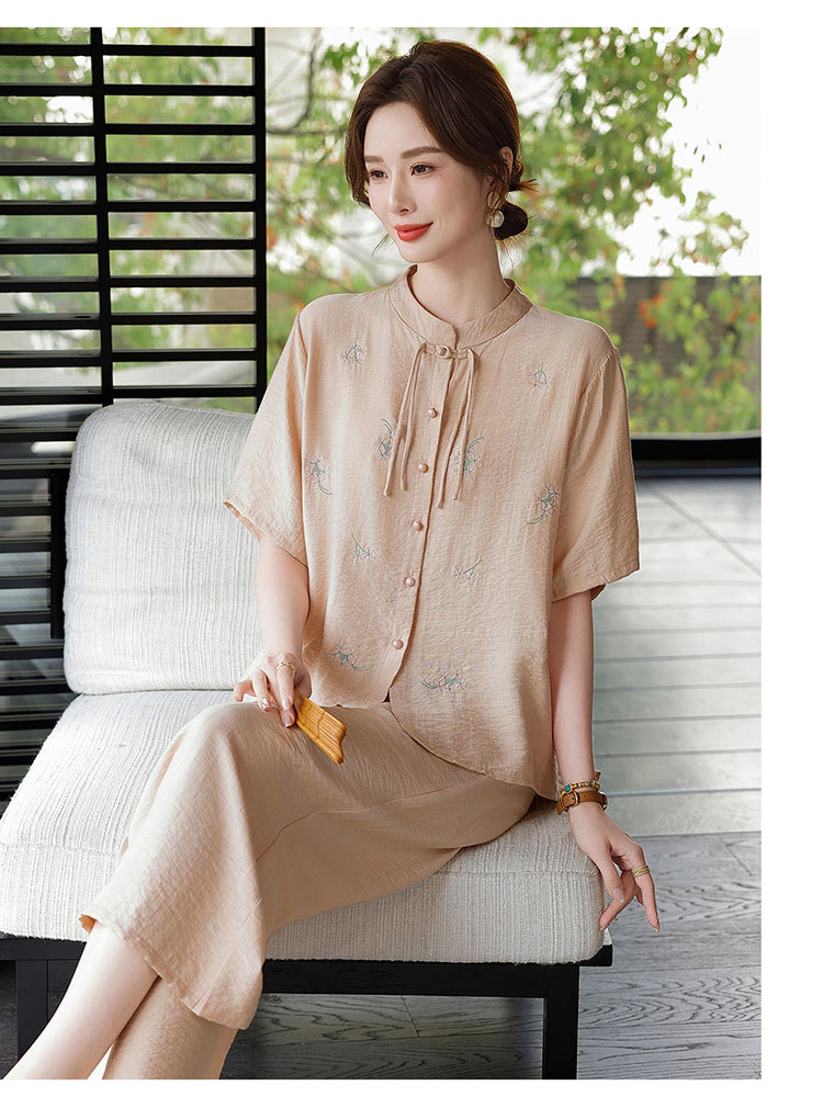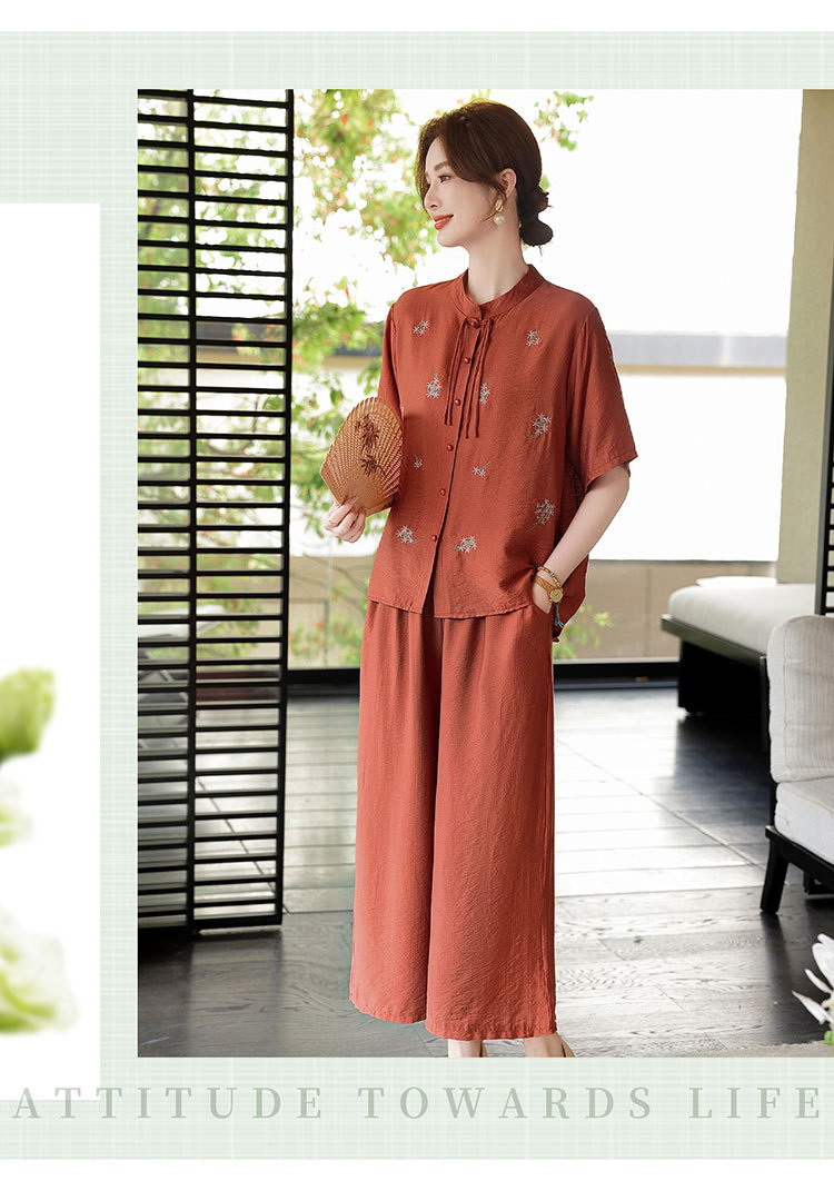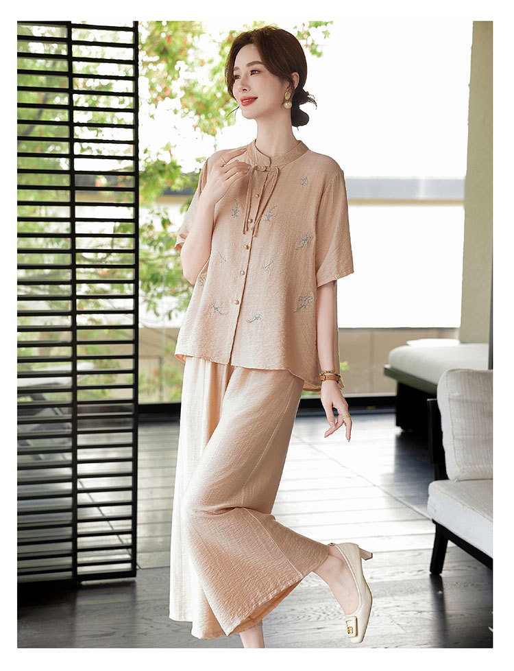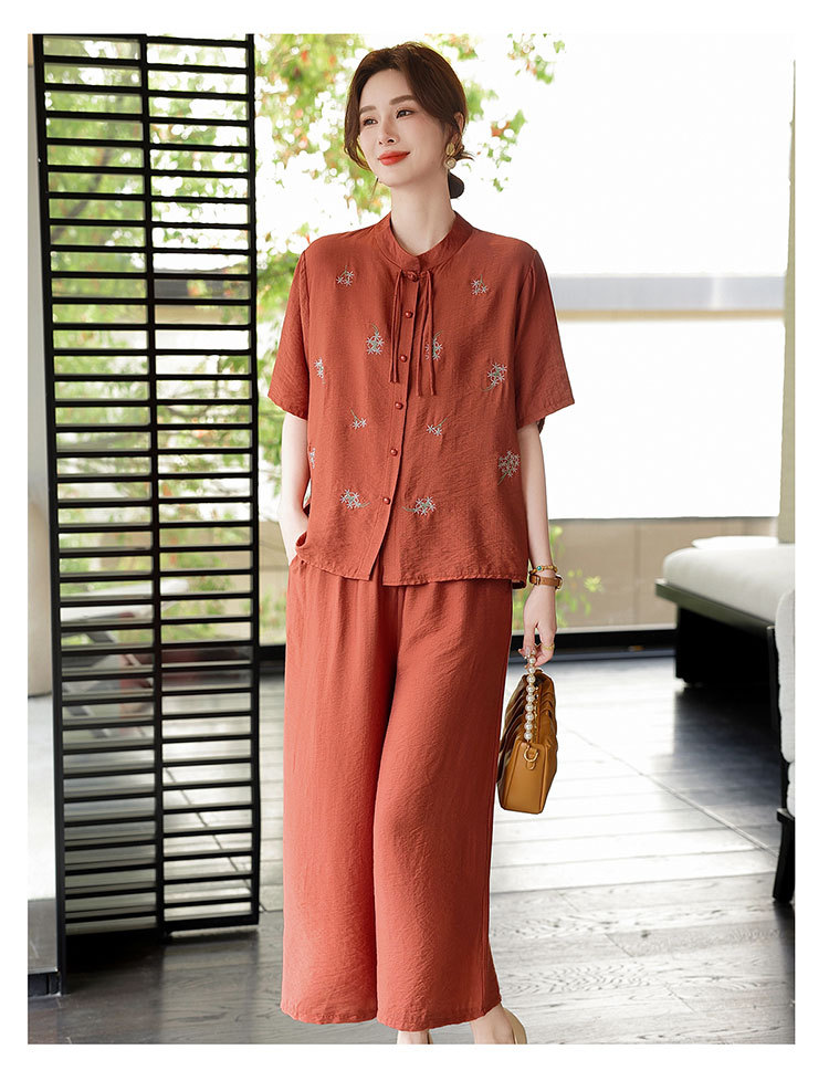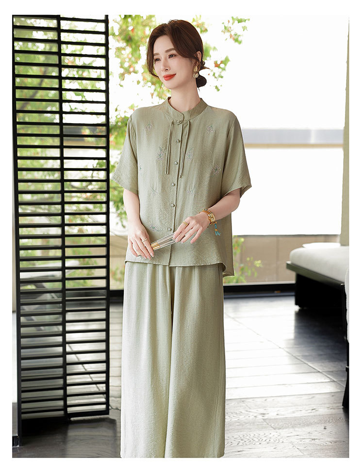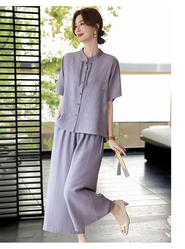 어머니 여름 국가 스타일 서양식 투피스 세트 2025 새로운 중년 및 노인 여성 면 린넨 느슨한 슬리밍 플러스 사이즈 세트