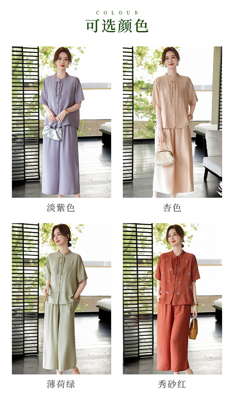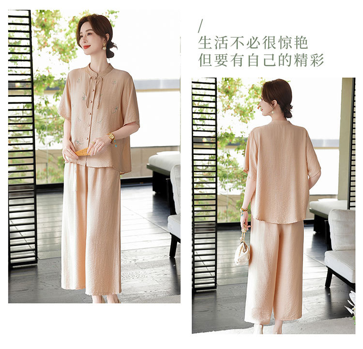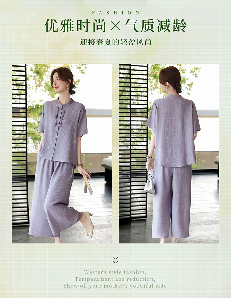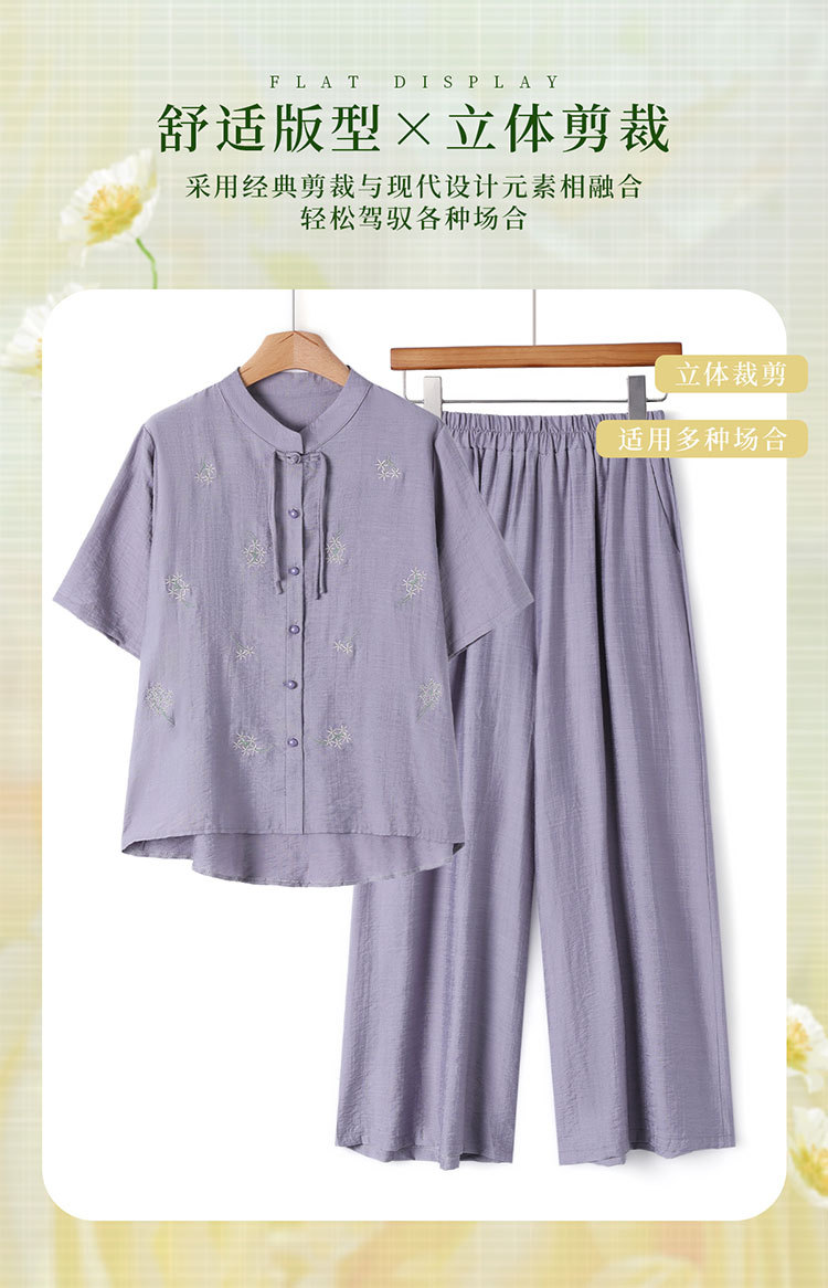 어머니 여름 국가 스타일 서양식 투피스 세트 2025 새로운 중년 및 노인 여성 면 린넨 느슨한 슬리밍 플러스 사이즈 세트스토어 가기