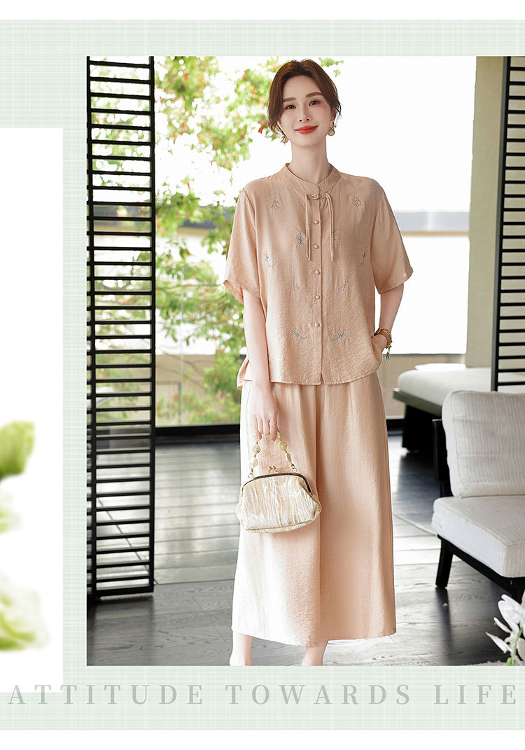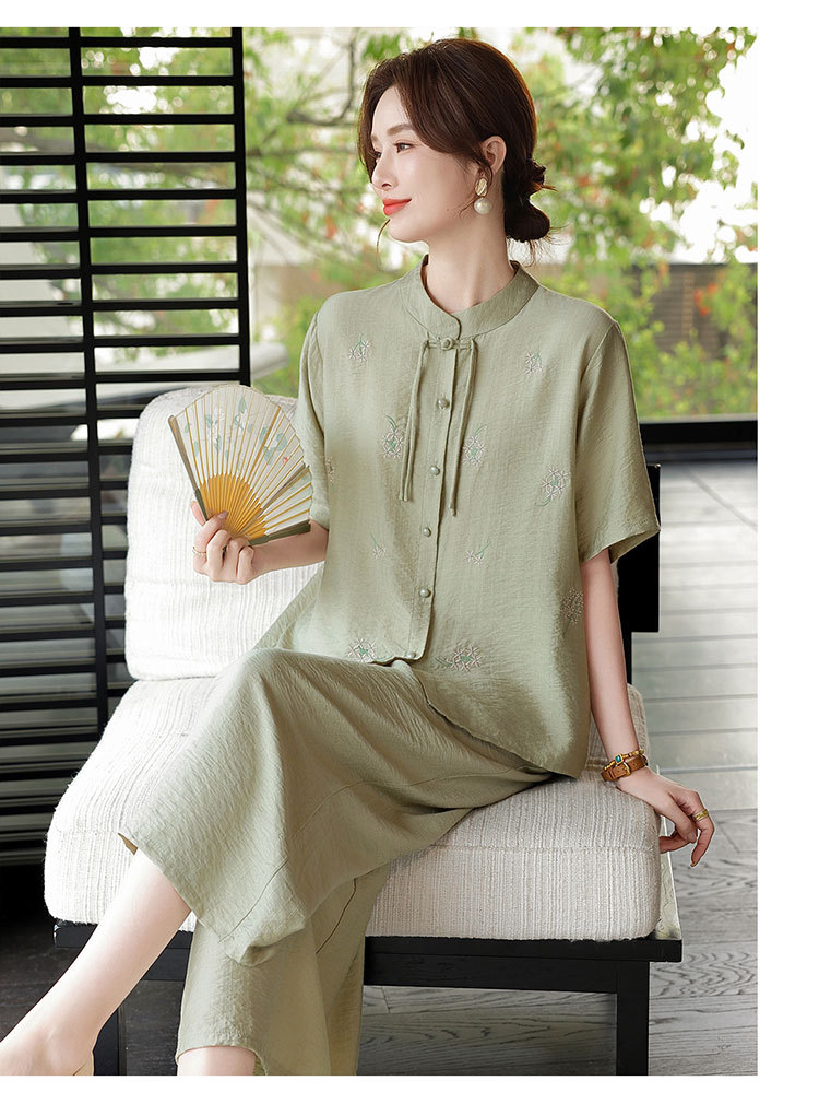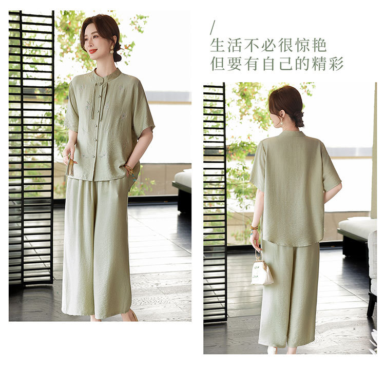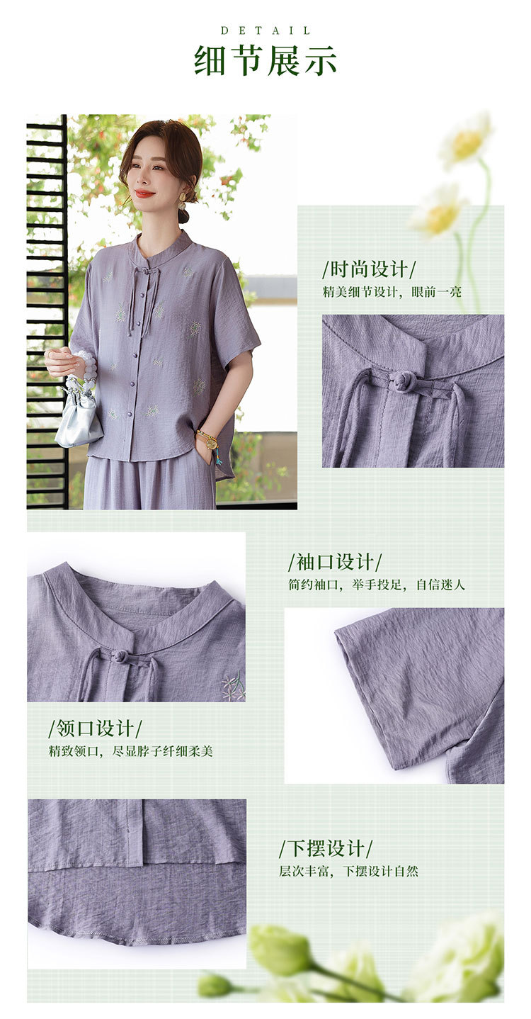 어머니 여름 국가 스타일 서양식 투피스 세트 2025 새로운 중년 및 노인 여성 면 린넨 느슨한 슬리밍 플러스 사이즈 세트스토어 가기