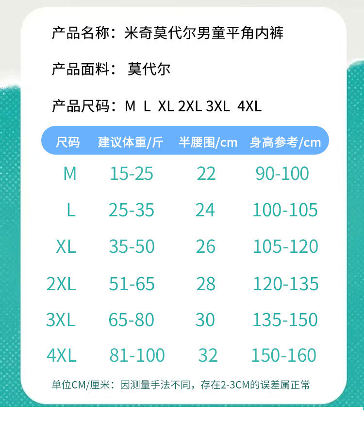 아동 속옷 소년 모달 항균 미키 만화 반바지 사각형 초등학교 소년 아기 복서 팬티스토어 가기