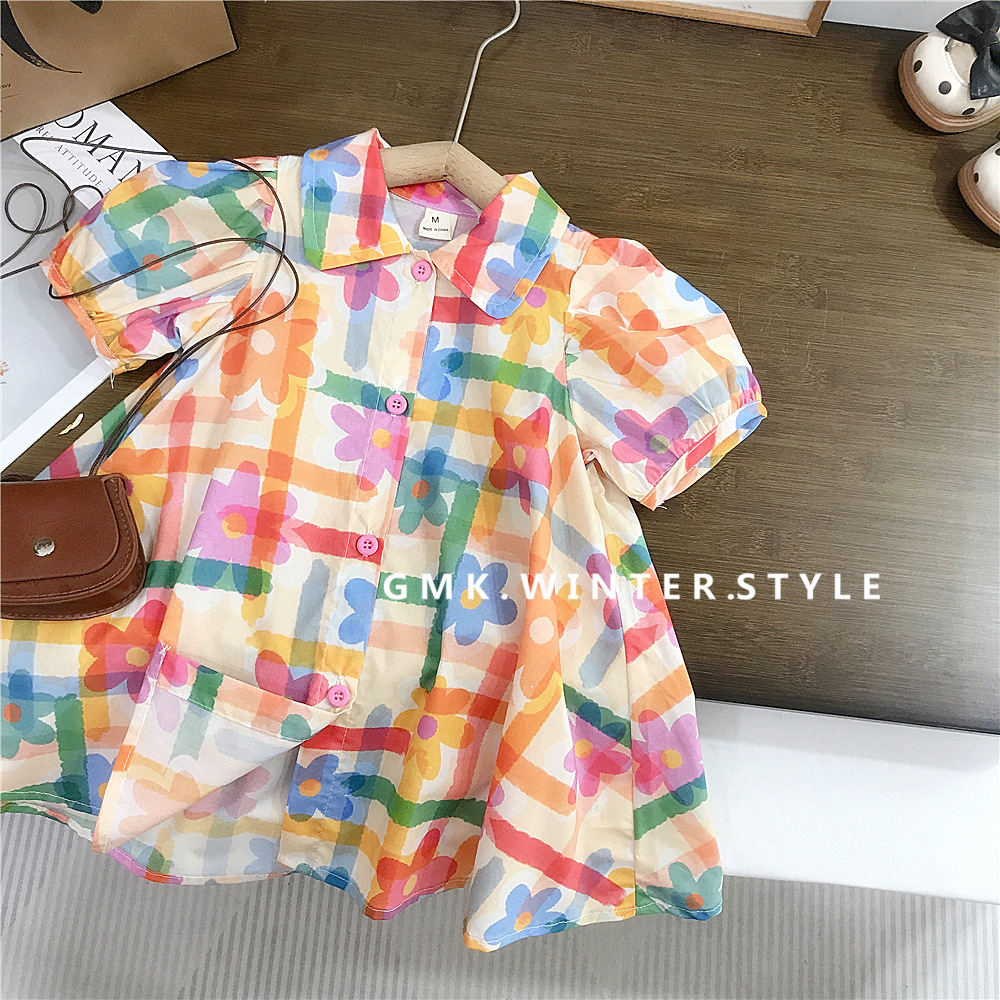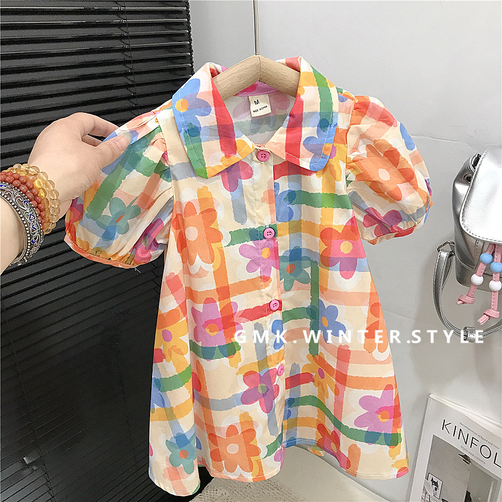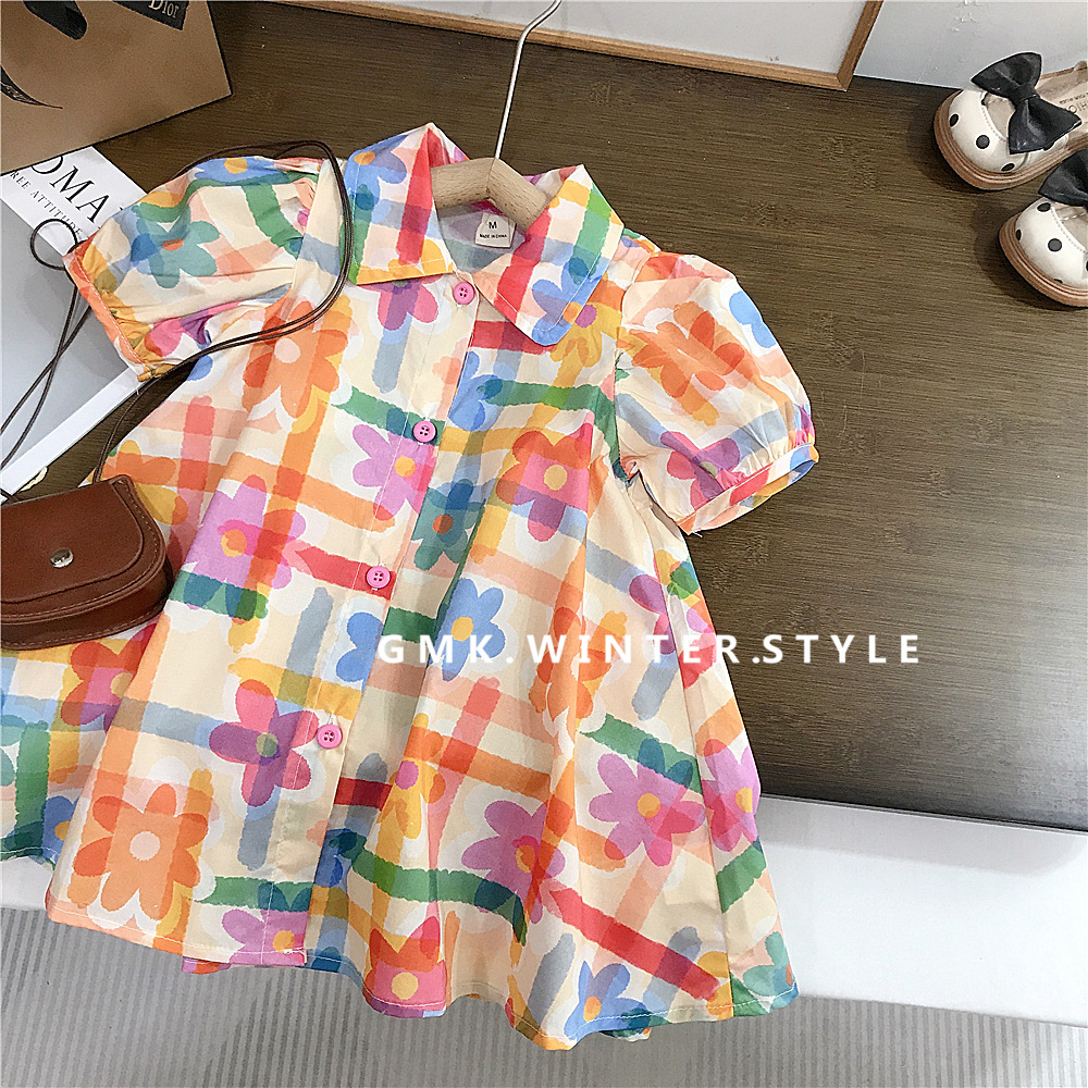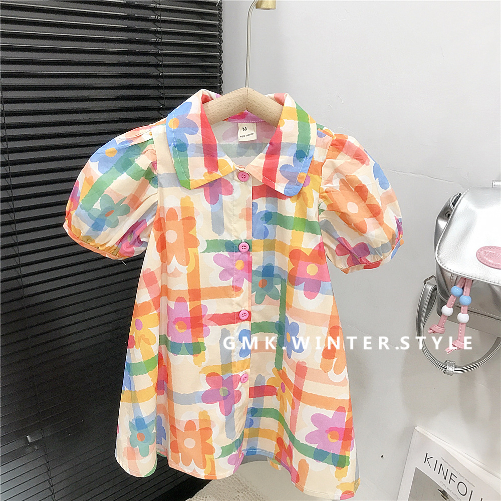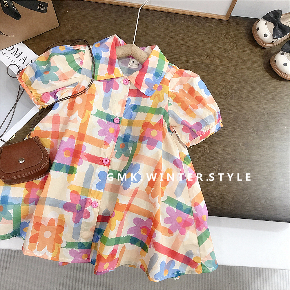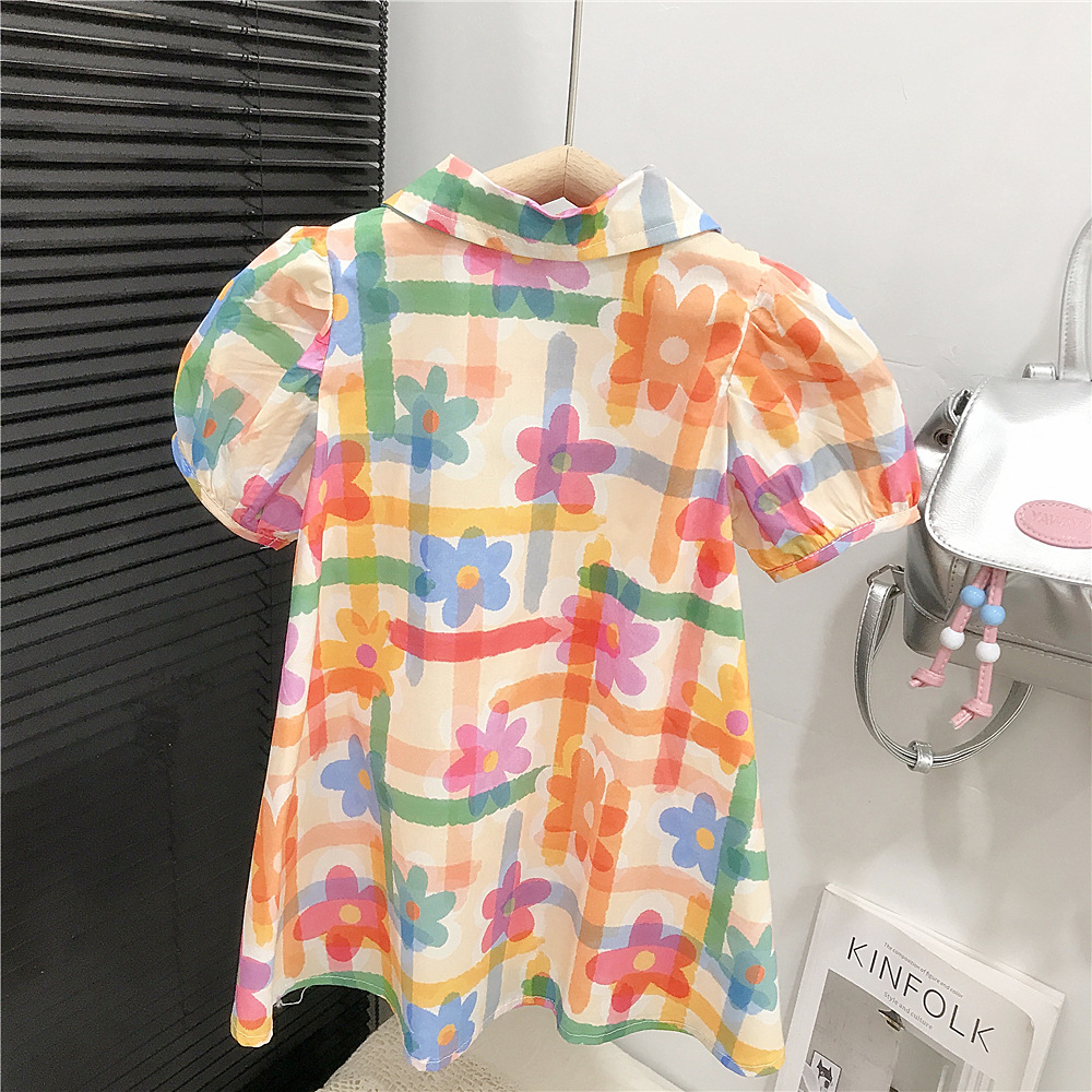 여자 여름 원피스 어린이 셔츠 치마 한국 스타일 아기 꽃 치마 달콤한 여자 짧은 소매 새로운 대외 무역