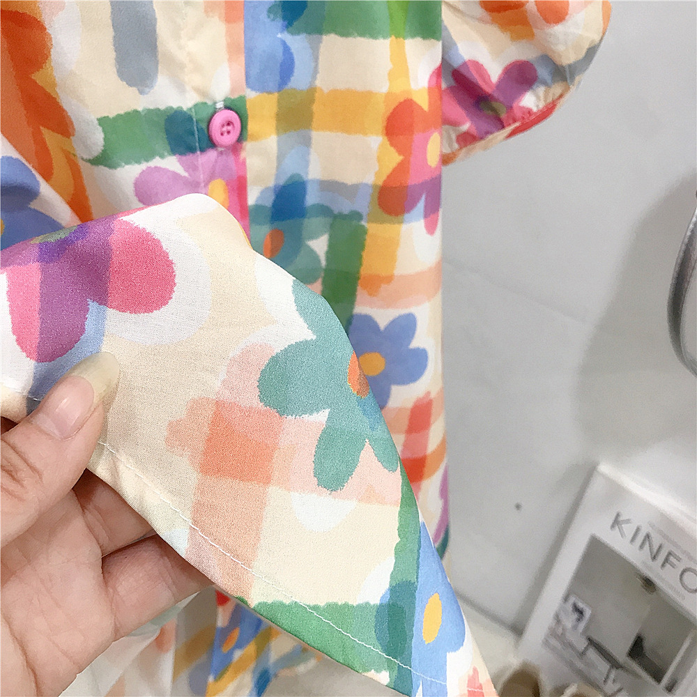 • 격자 무늬 꽃무늬 셔츠 드레스