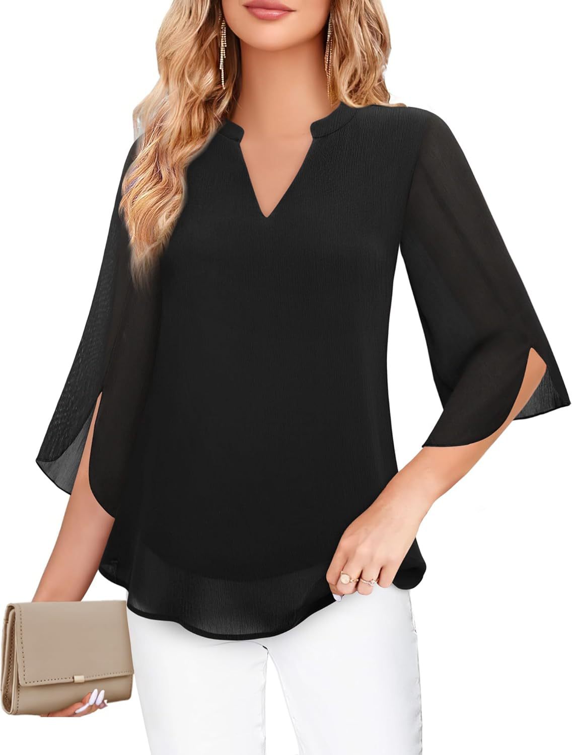 2025 국경 아마존 캐주얼 여름 새로운 유럽과 미국 여성의 꽃잎 슬리브 탑 느슨한 V 넥 쉬폰 셔츠스토어 가기