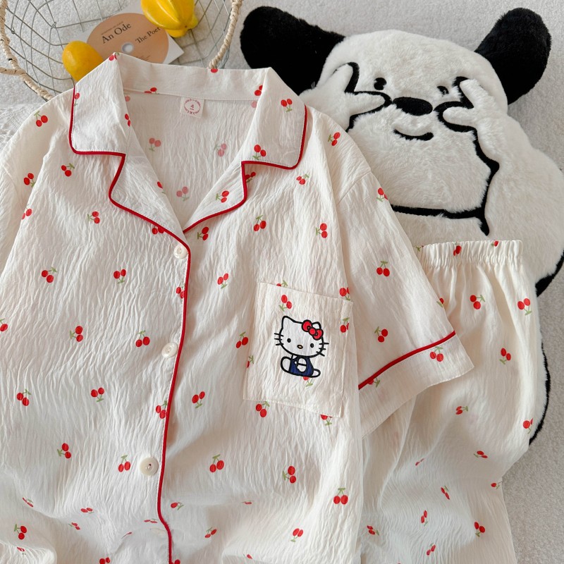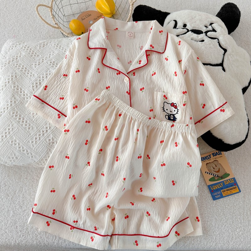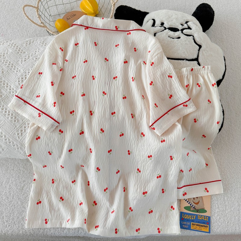 2025 여름 새로운 구름면 카디건 옷깃 달콤한 소녀 잠옷 짧은 소매 반바지 여성 홈 의류 세트