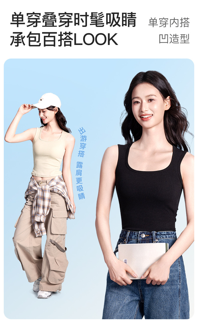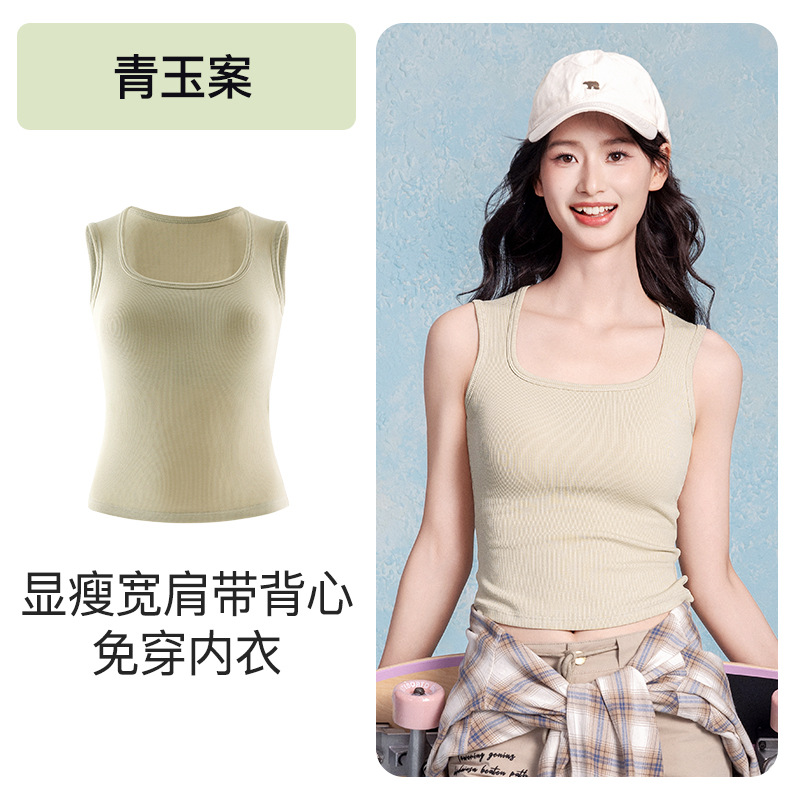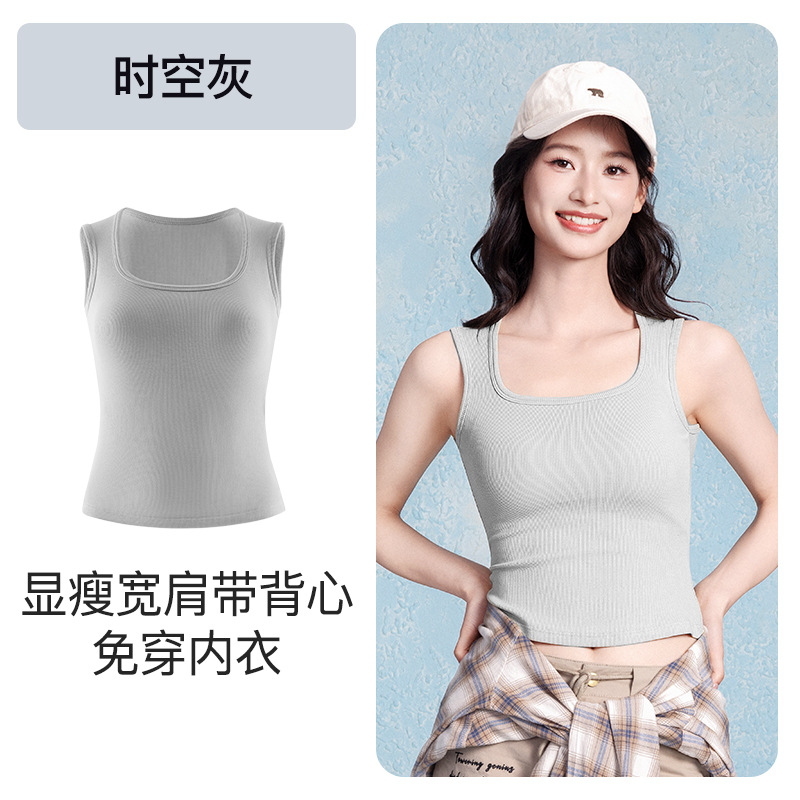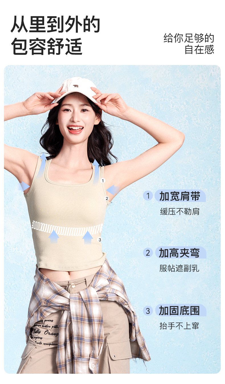 2025 새로운 와이드 숄더 스트랩 카미솔 조끼 여성용 코튼 벨트 가슴 패드 파라 유방 내복 외부 착용 스포츠 조끼 여성 탑