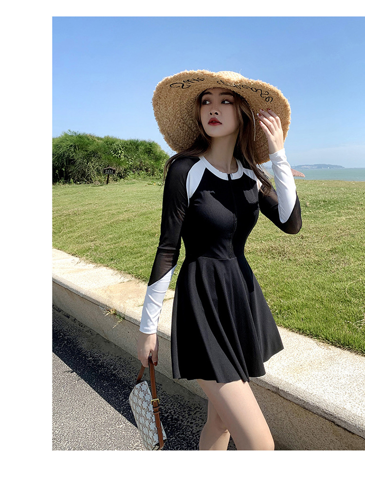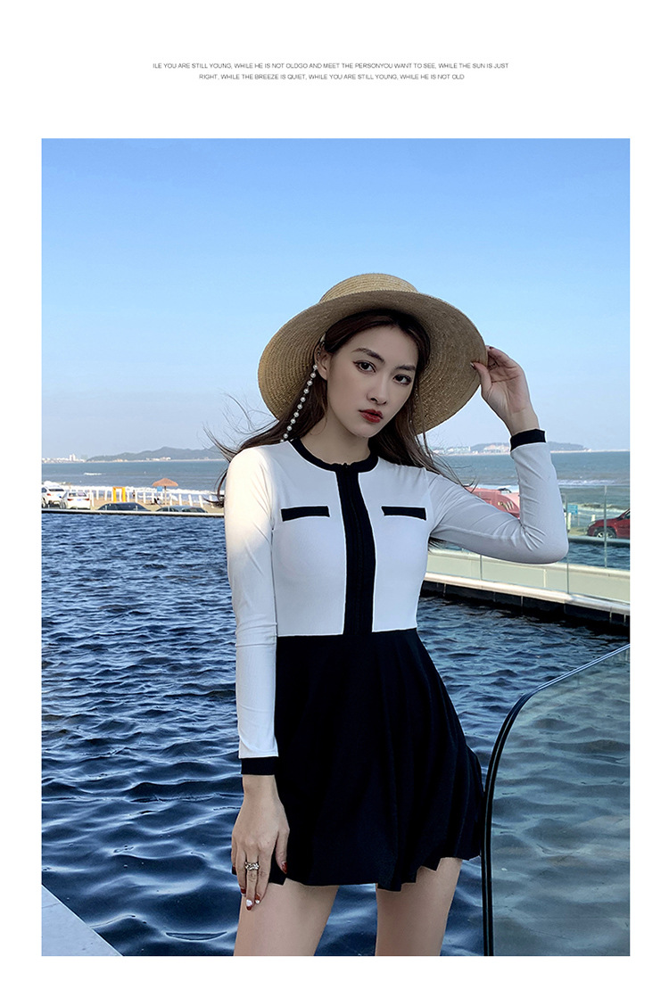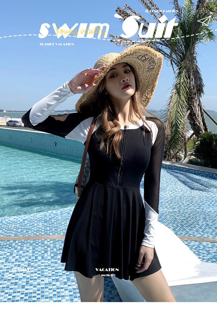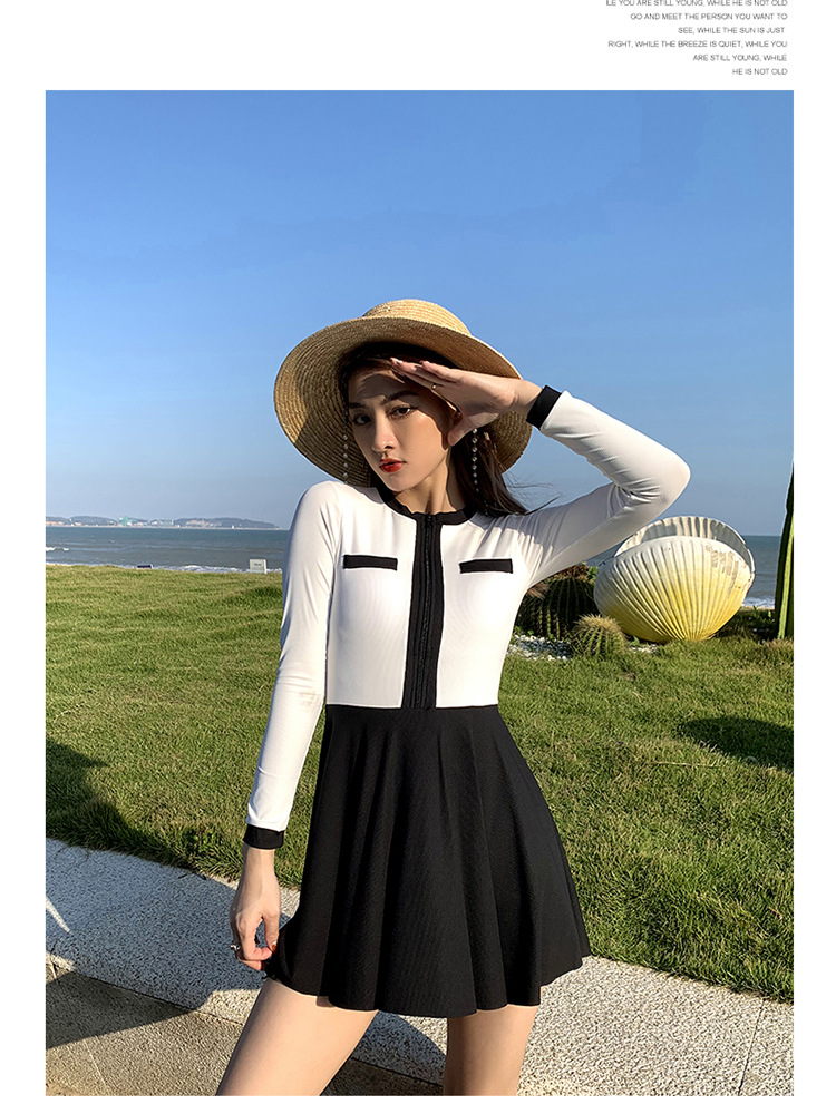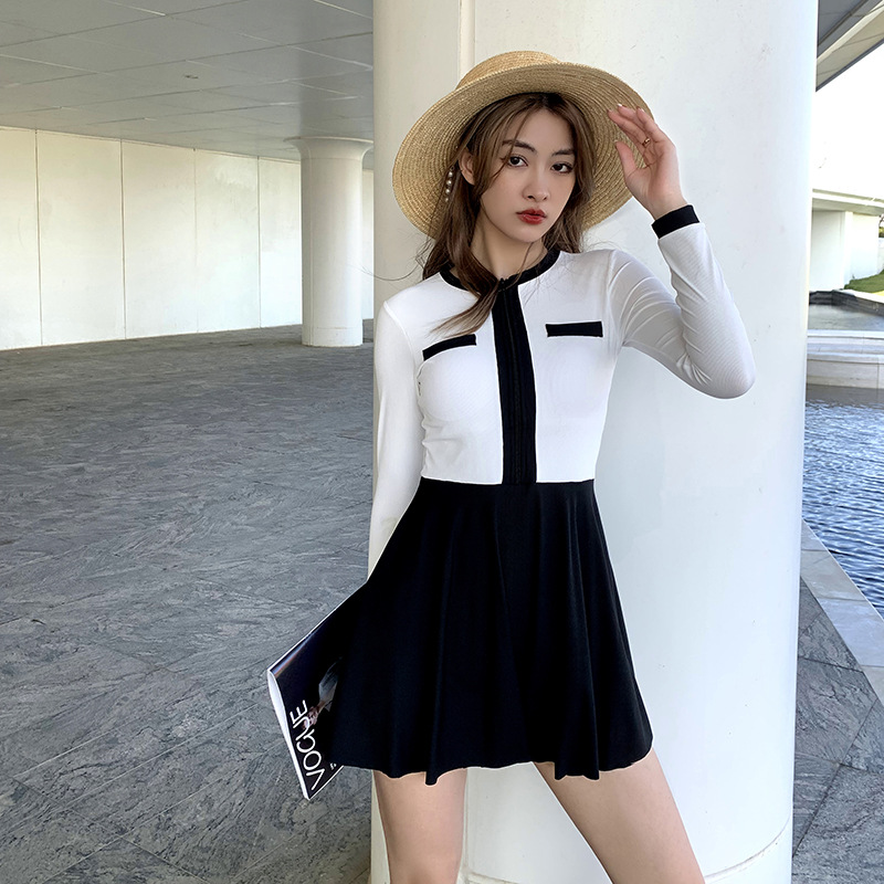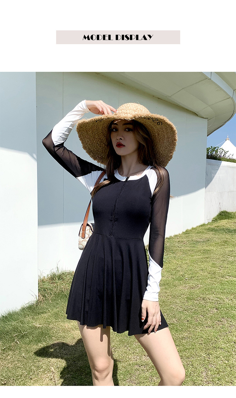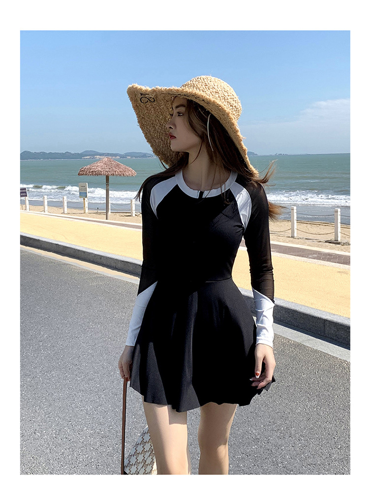 여성용 온천 해변 휴가 수영복, 슬리밍 및 배 커버, 학생 보수적 원피스 긴팔 자외선 차단 다이빙 싼야 서핑 슈트스토어 가기